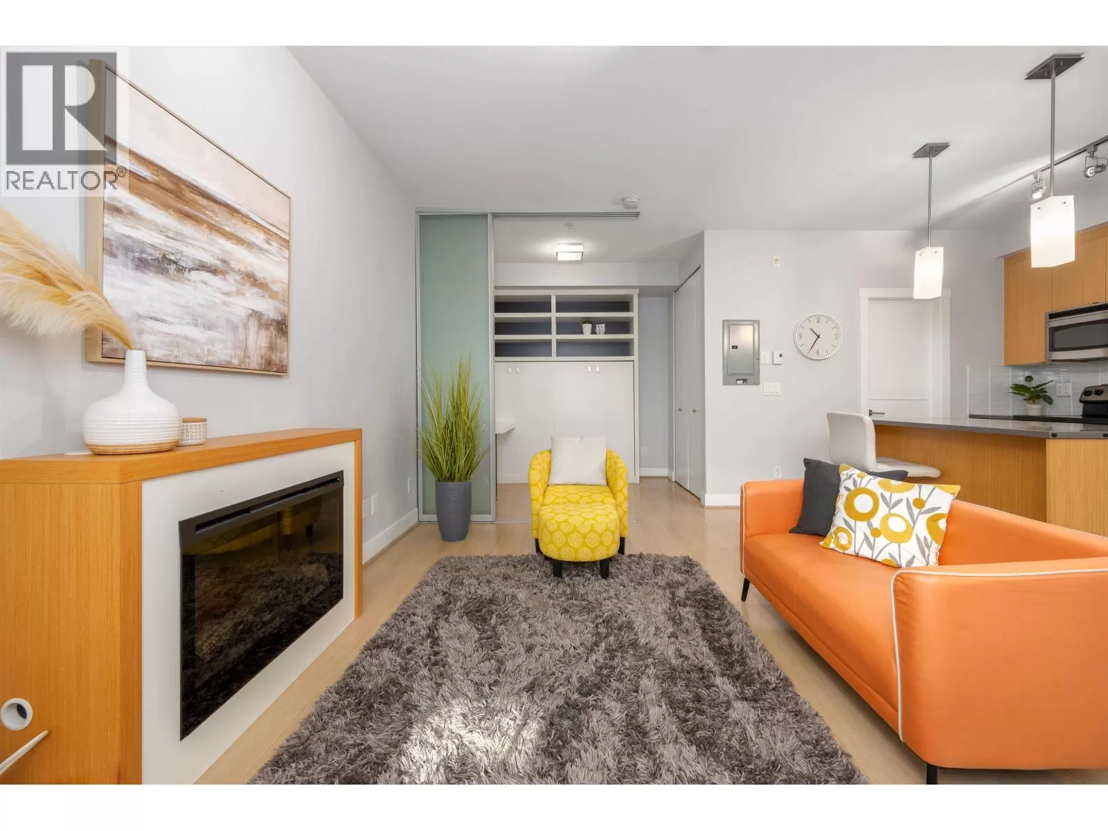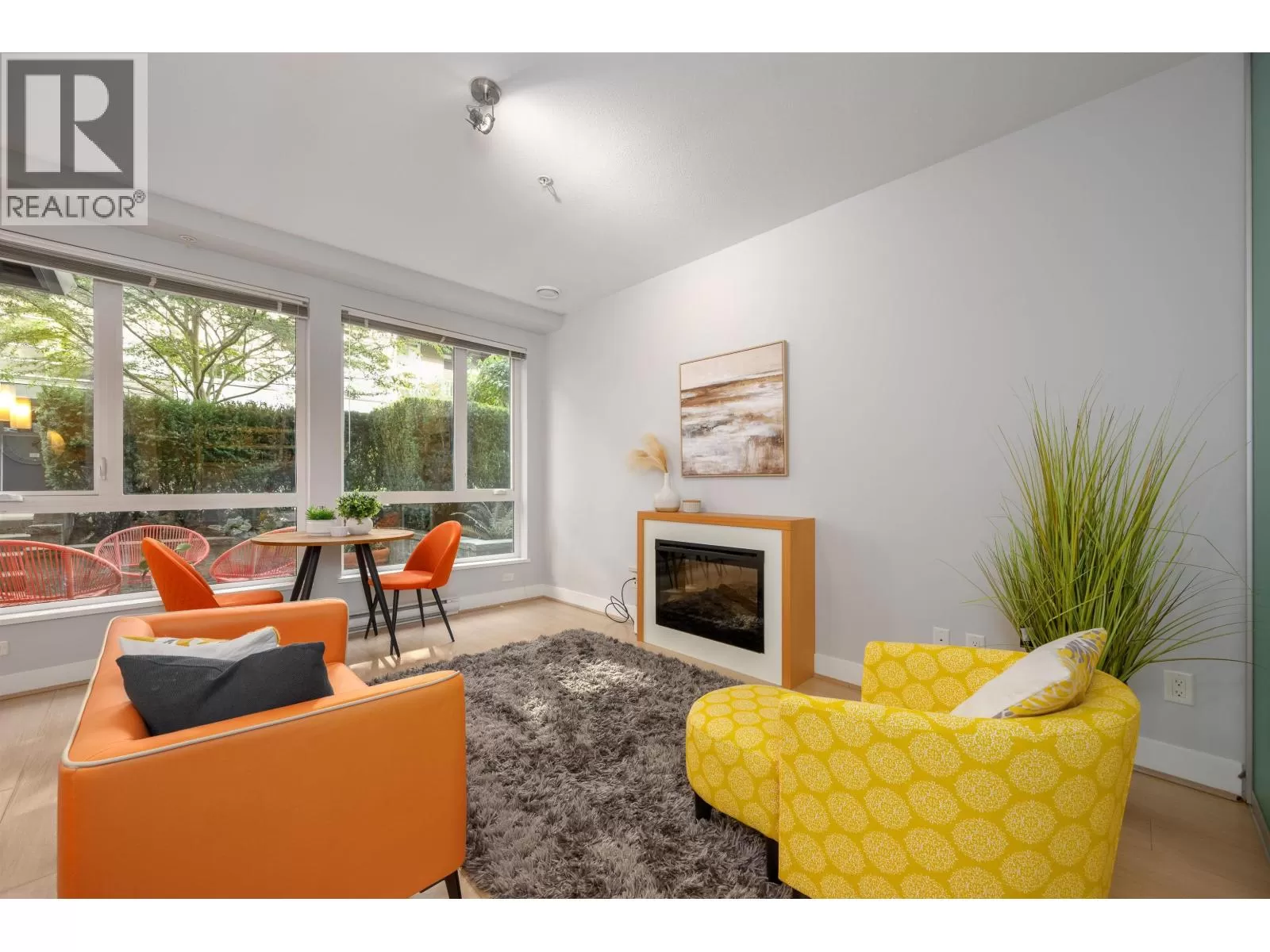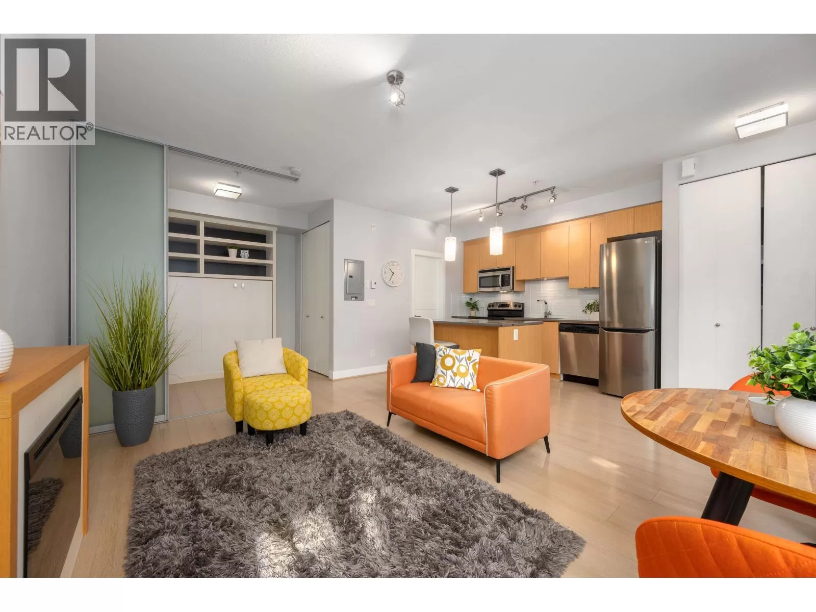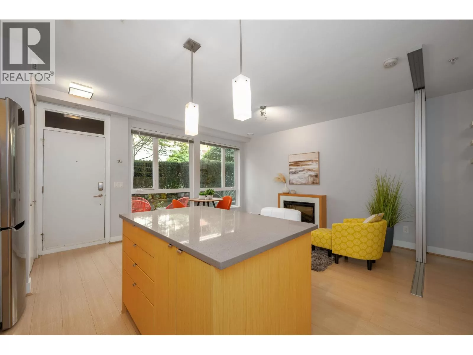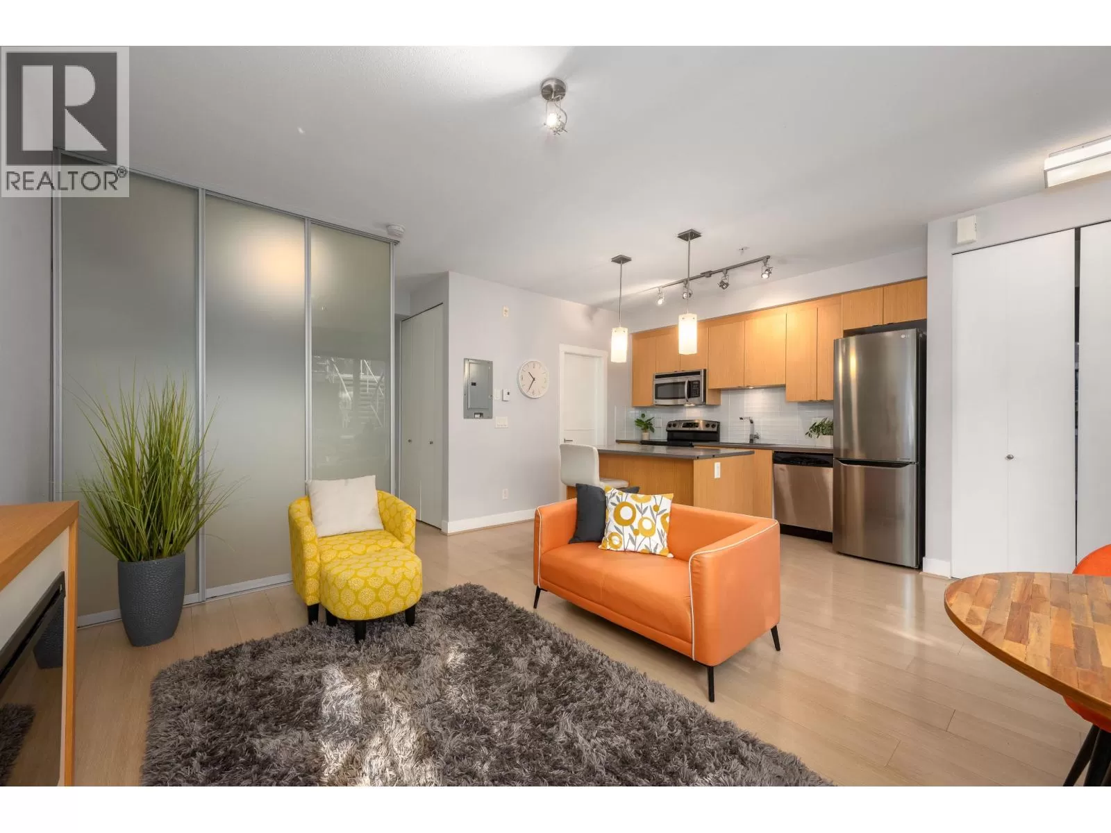 Enjoy urban living with this townhome style studio steps to everything you need by foot! Situated in the 2011 built Seven35 complex, this home provides a unique offering - a modern, well-designed studio enjoying 457 square ft of interior space, that almost doubles in size with a 180 square ft walk-out patio - perfect for hosting, bbqs, as well as ideal for dog owners & nature lovers. The home features an open-concept layout with gourmet kitchen, cozy living space with electric FP, 4 pc bath with soaker tub & bed/office with a murphy bed & flip down desk set up. The home also enjoys in-suite laundry, 1 parking with bike rack, storage locker, low maint. fee, allows 2 dogs or cats (or 1 of each), & includes bldg amenities of a gym, bike maint rm, garden, & playground. With an 88 walk-score, this home has everything you need by foot - east & west bound transit, Save-on Foods & Capilano Mall, & Mosquito Creek trails right outside - don´t miss it! (id:27476)