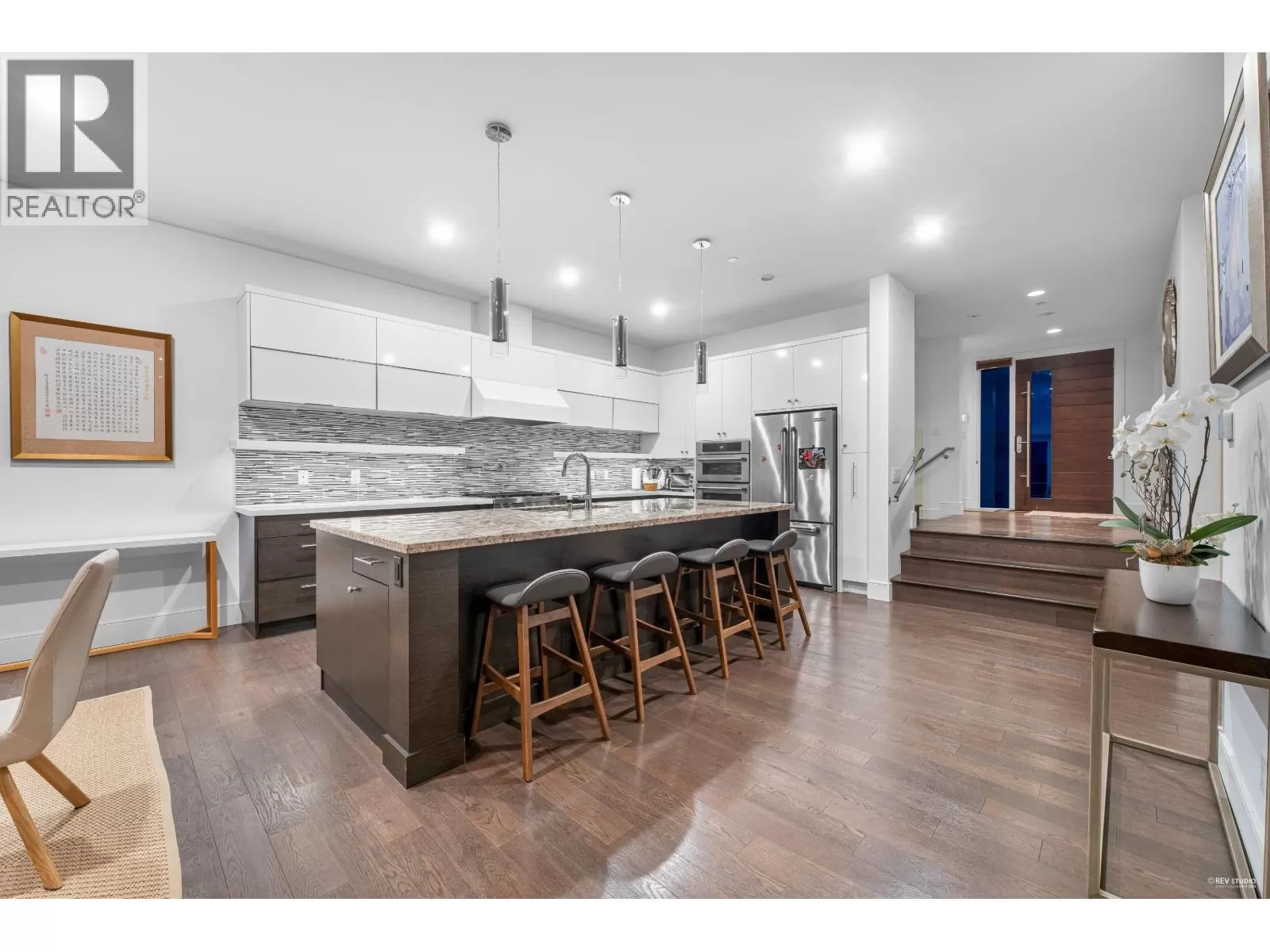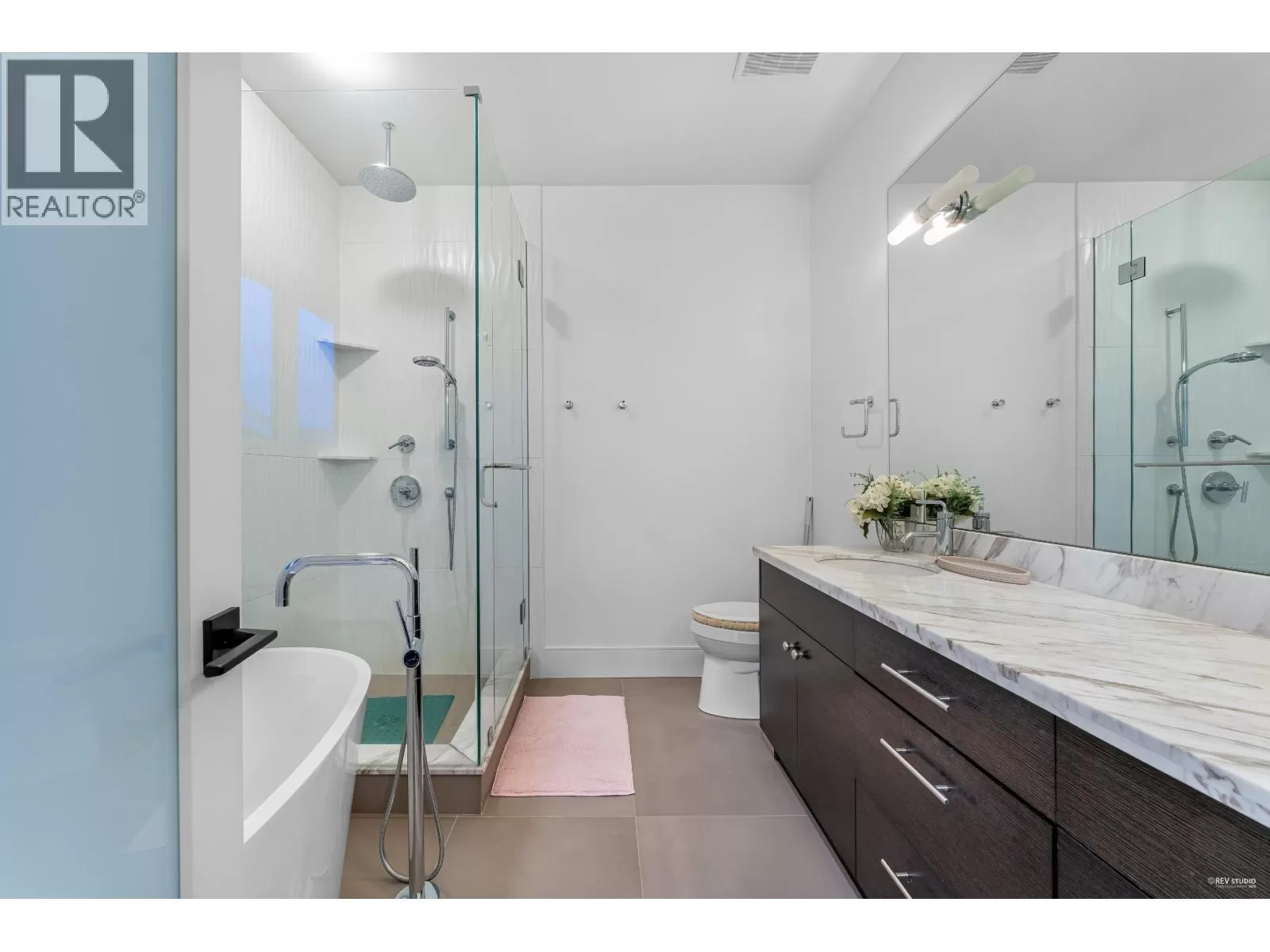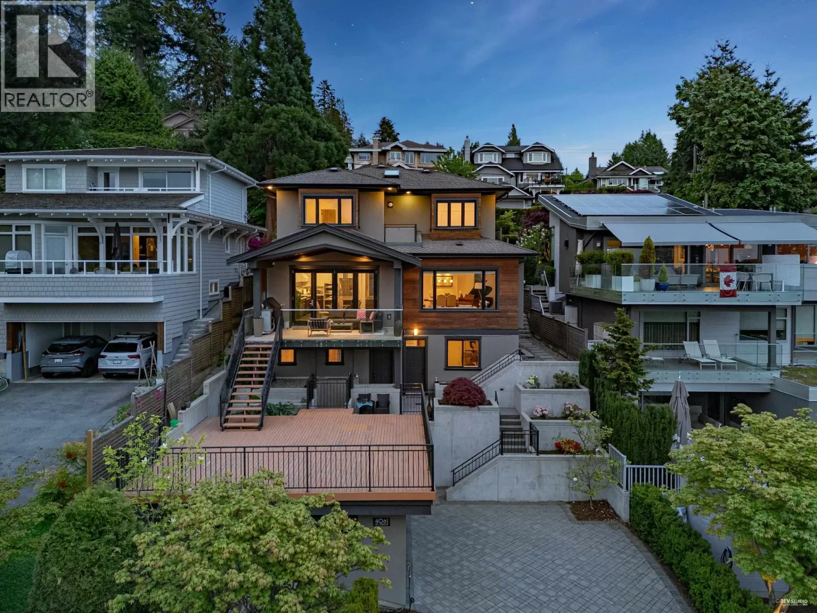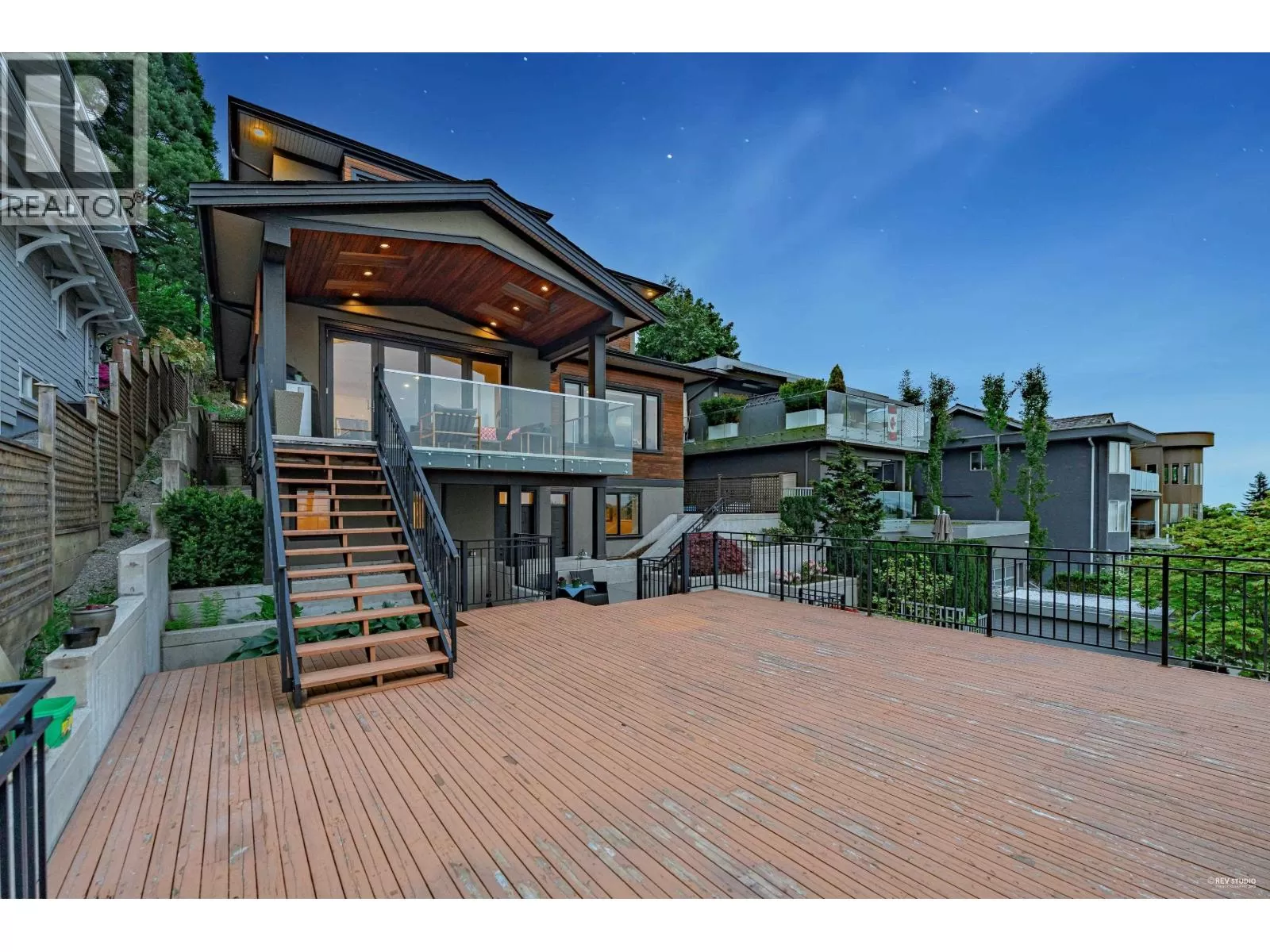 VIEW, LOCATION & QUALITY! Built in 2014, this stunning contemporary home showcases breathtaking southwest views of the ocean, Downtown Vancouver, Point Grey & Vancouver Island. The main floor features a spacious open-concept layout with 10ft ceilings, a designer kitchen with high-end appliances, & Eclipse doors that open to a large sun-drenched deck with built-in BBQ-part of over 900 sqft of deck & balcony space, ideal for seamless indoor-outdoor living & entertaining. Upstairs offers 3 generous bedrooms, each with its own ensuite & beautifully appointed finishes. The lower level includes a media room, 4th bedroom, full bathroom, & laundry, plus a self-contained 1-bedroom suite with full kitchen-perfect for in-laws, guests, or added income. See it before its GONE. Open house Canceled on Sunday 2-4pm, Oct 19. (id:27476)