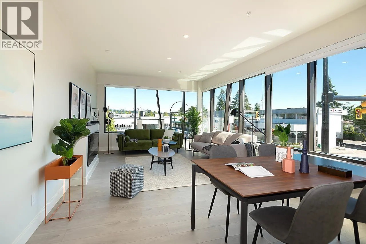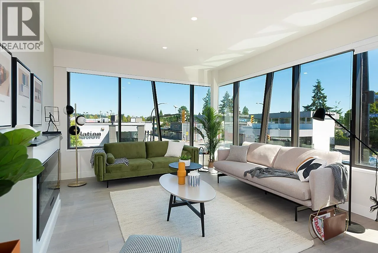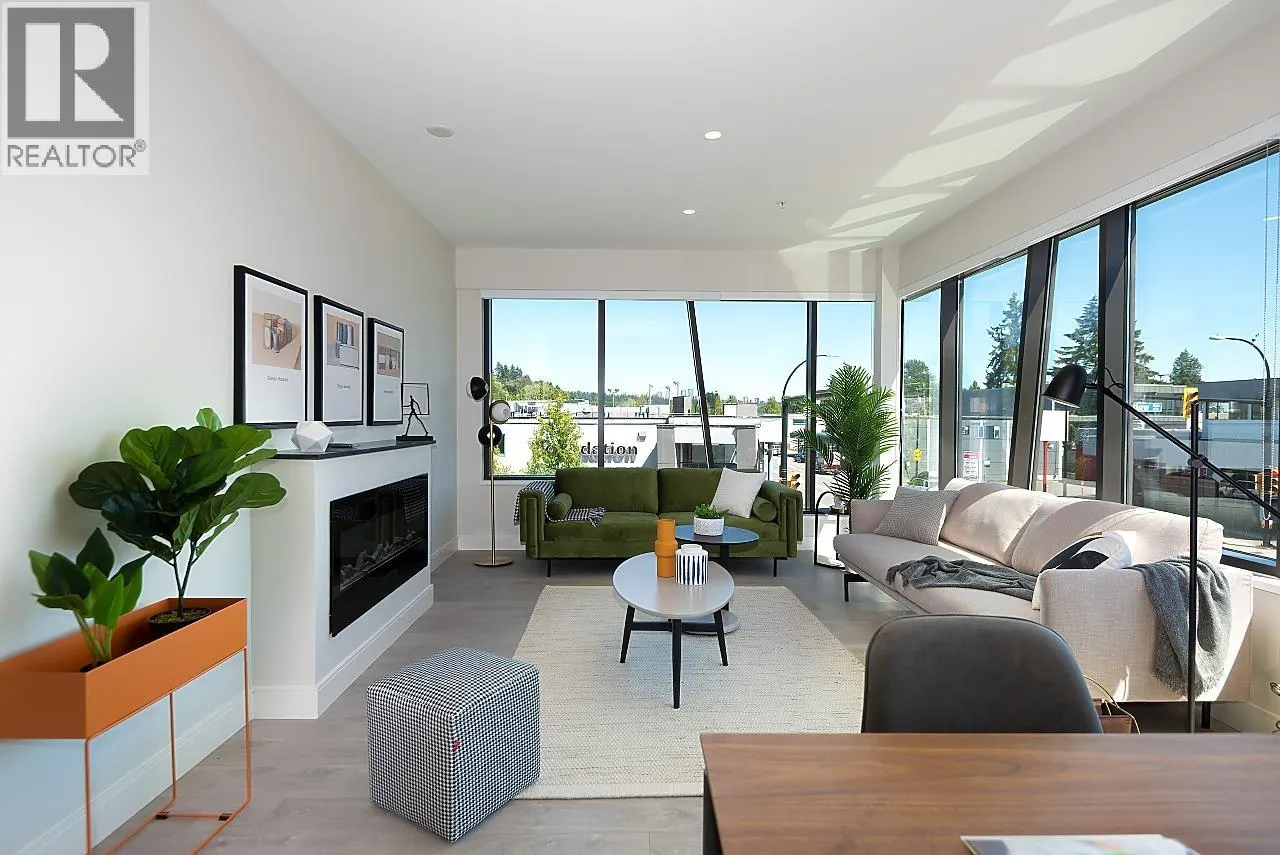 Specious newer condo situated minutes to Park Royal Shopping Centre, Lion's Gate Bridge and Downtown Vancouver. 3 bedroom + den and 2 bath unit. With over 1,424 sqft, this second storey home boasts high ceilings, wood laminate floor living areas, a cozy electric fireplace and 2 secure underground parking spaces. Enjoy the southern views of the Downtown Vancouver Skyline from one of the two spacious balconies or the six-foot high bay windows. (id:27476)