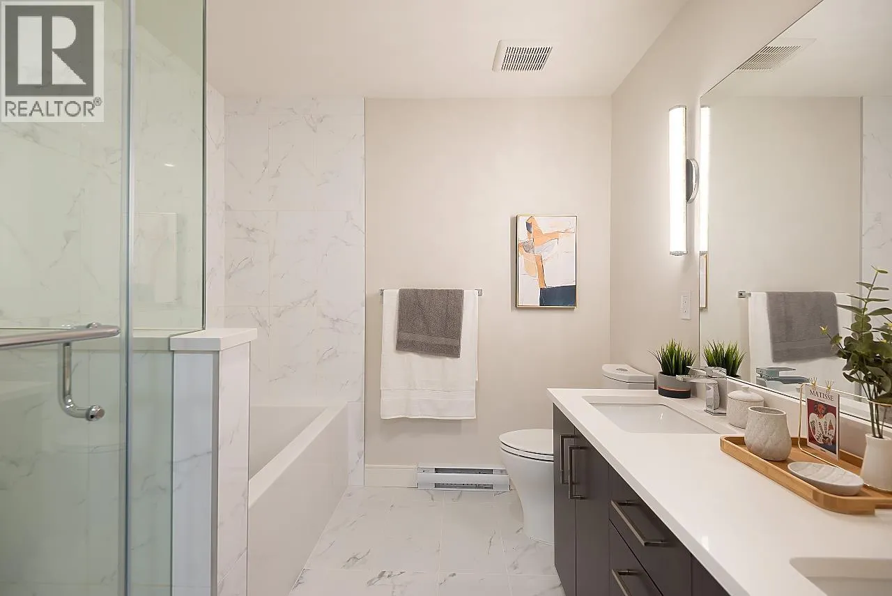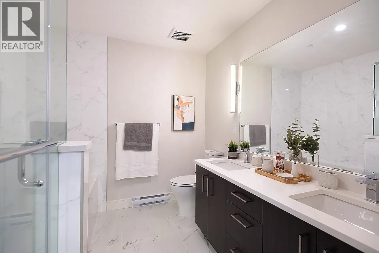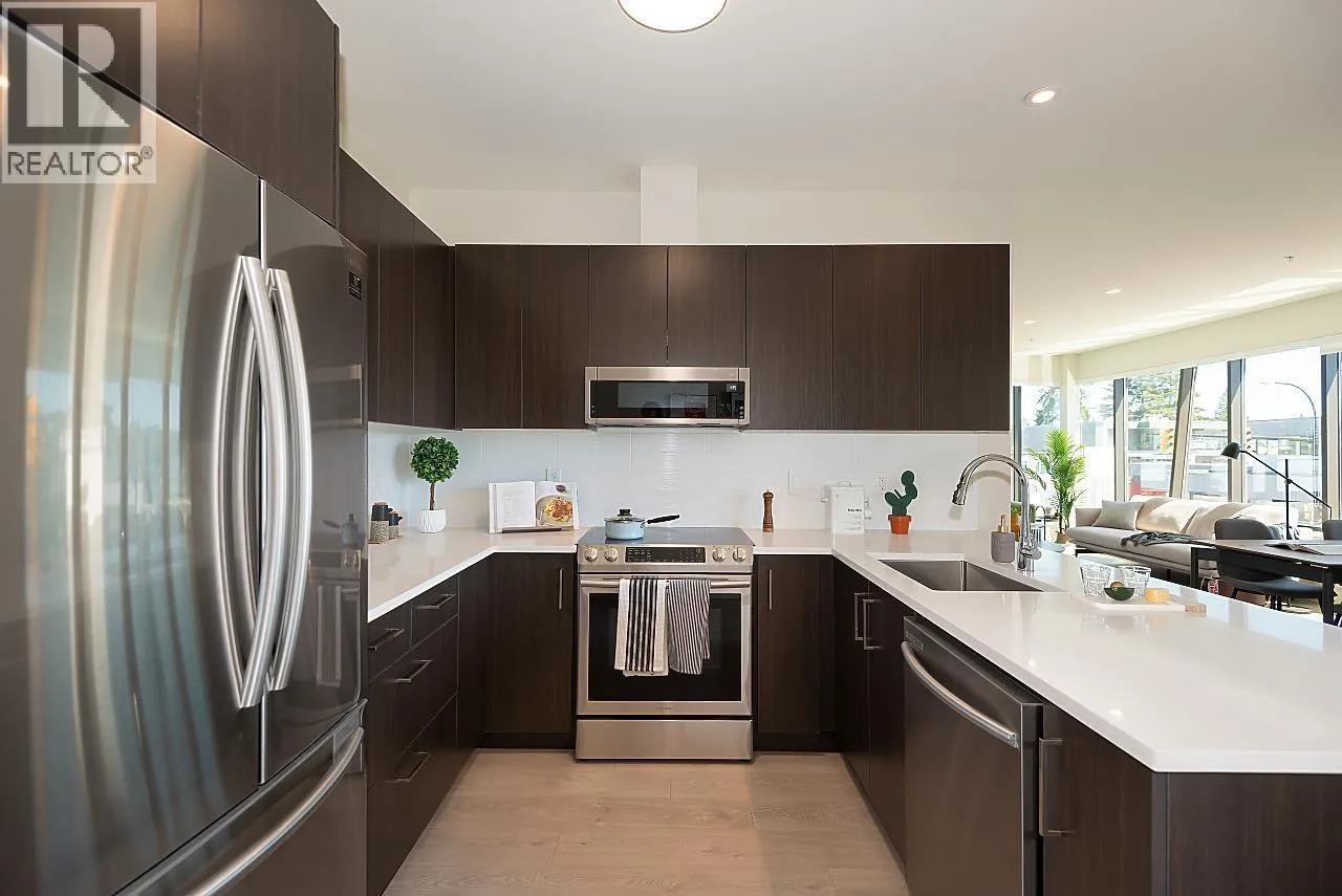 Specious newer condo situated minutes to Park Royal Shopping Centre, Lion's Gate Bridge and Downtown Vancouver. 3 bedroom + den and 2 bath unit. With over 1,424 sqft, this second storey home boasts high ceilings, wood laminate floor living areas, a cozy electric fireplace and 2 secure underground parking spaces. Enjoy the southern views of the Downtown Vancouver Skyline from one of the two spacious balconies or the six-foot high bay windows. (id:27476)