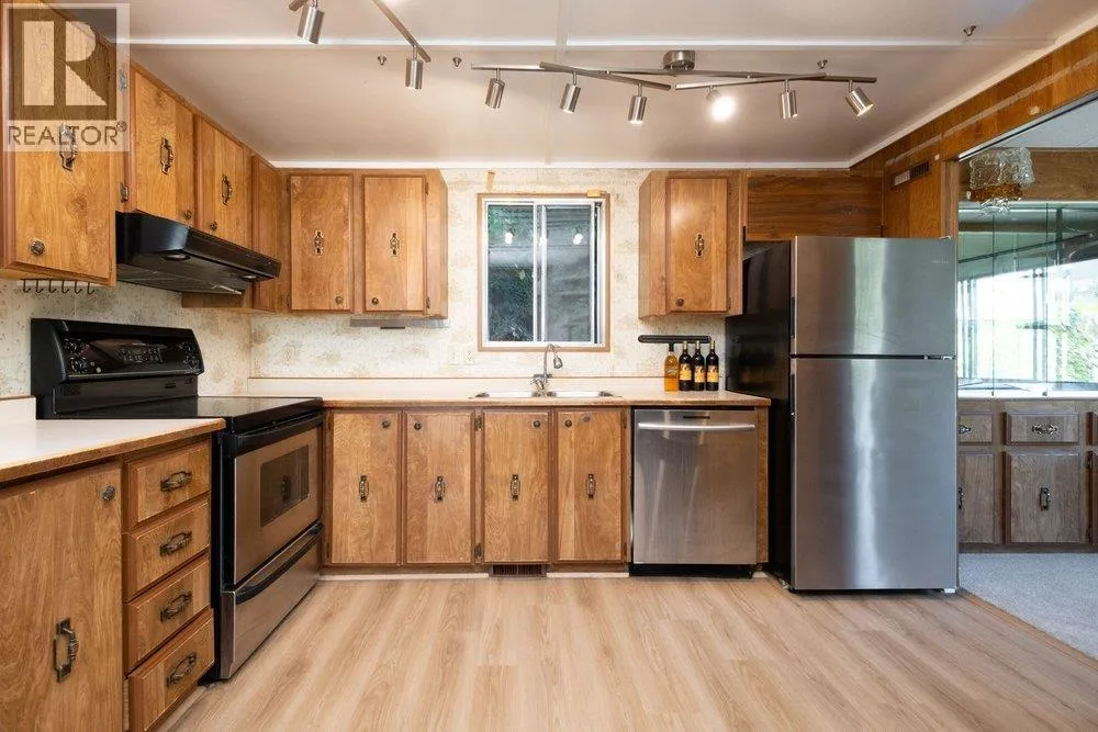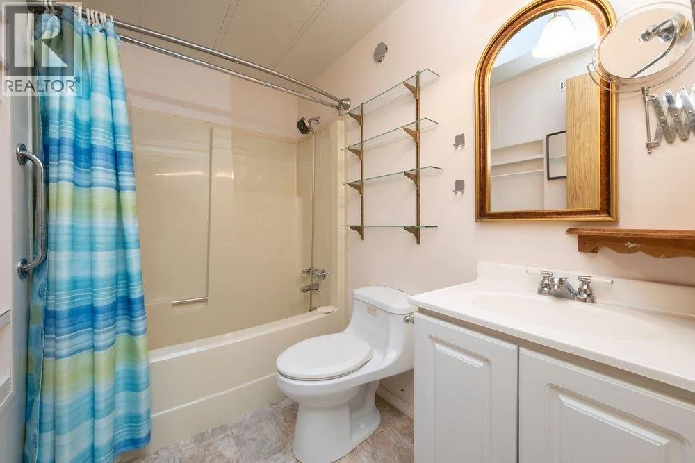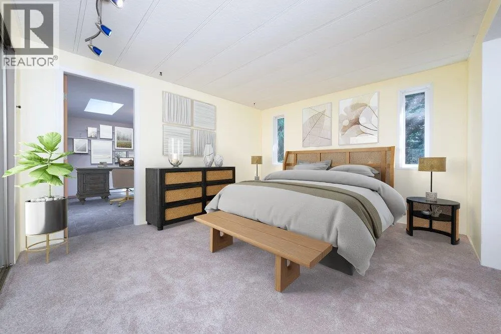 Outstanding privacy in this wonderful culdesac location. One of the the largest homes at 1352 Sq ft, 2 bedrooms plus large office/3rd Bedroom and 2 baths. Enjoy views to Sentinal Hill or snow-capped views to Holyburn as you relax in your living room. The bright kitchen opens to the dining and large family room. Master Bedroom is large and has a spacious ensuite with walk in shower and plenty of storage. Just off the master bedroom is a large office/ 3rd bedroom w/skylights that opens with sliders onto the fully covered 13´ x 11´ deck space. A private low maintenance garden w/shed. are all around this home. One of the few on a full concrete pad. Roof new in 2013. Park is 55+ only with no rentals allowed. Pets okay. Call for further Park Details including rules and regulations. (id:27476)