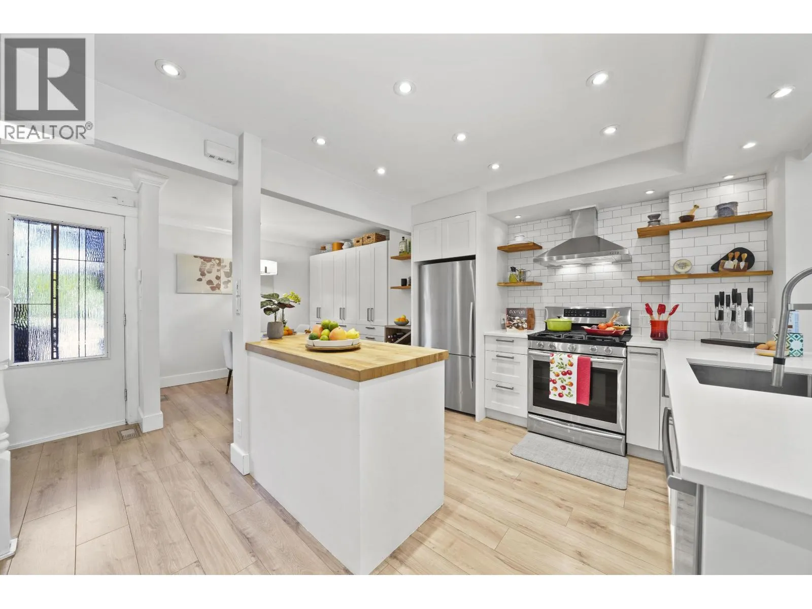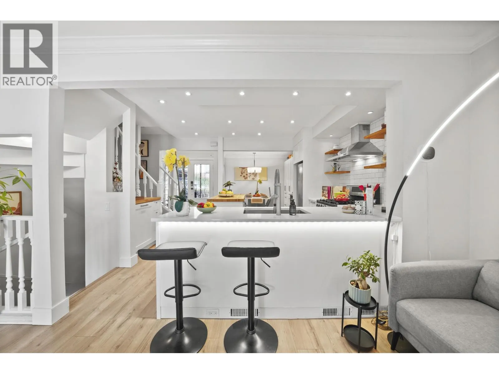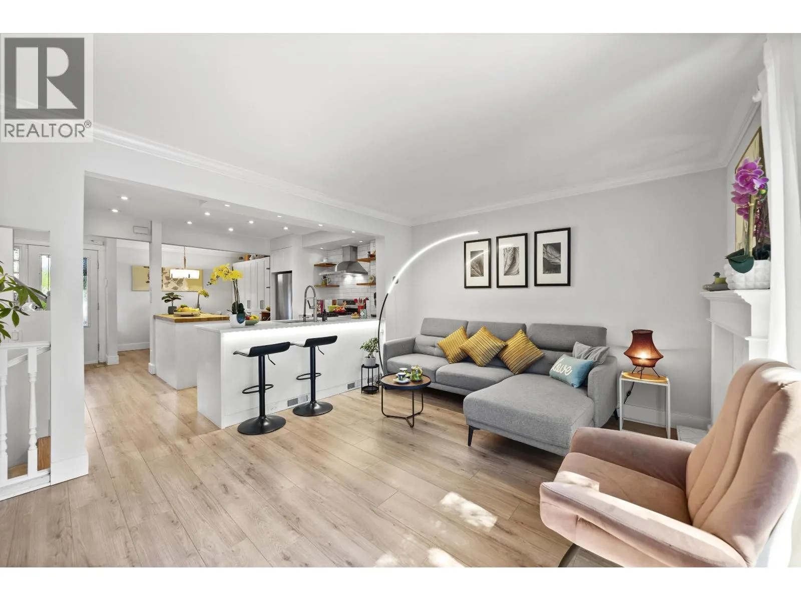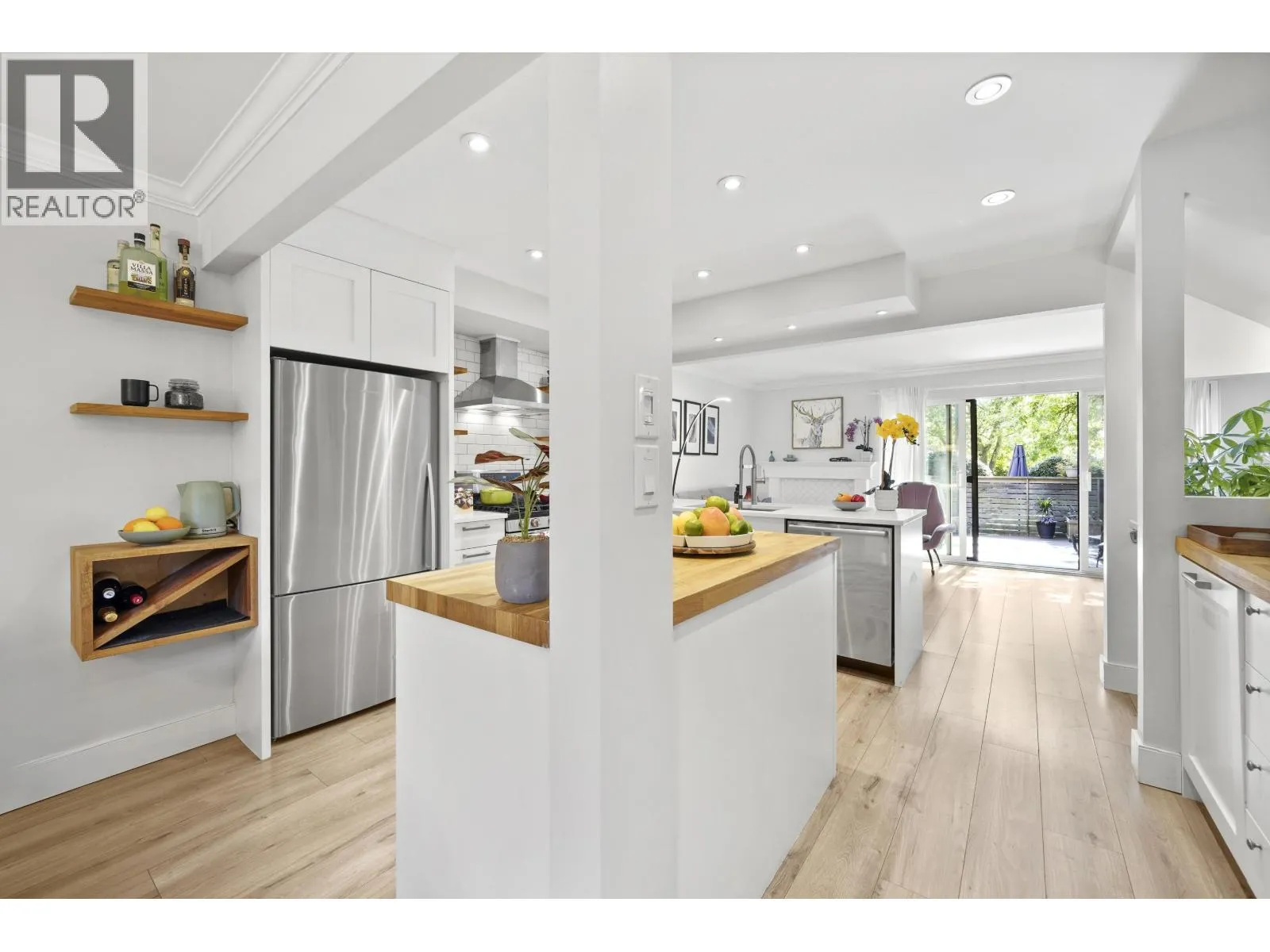 Welcome to your new home - where the comfort of a detached house meets low maintenance townhome with modern finishing! Nestled in a quiet, tree-lined community, this SE-facing home offers privacy, space & a seamless indoor-outdoor lifestyle with newly painted 325sqft patio. Enter from your front porch by the carport with overhead storage, or through your private gate. The open-concept chef´s kitchen features Caesarstone quartz counters, s/s appliances, gas stove, & a centre island perfect for entertaining or a growing family. Upstairs boasts 3 beds incl a spacious primary with custom closets & renovated bath. The lower level offers a family room, den/4th bedroom, laundry, & extra storage. Close to parks, schools, shops, rec centre, transit, & trails-this home is West Coast living at its best! (id:27476)