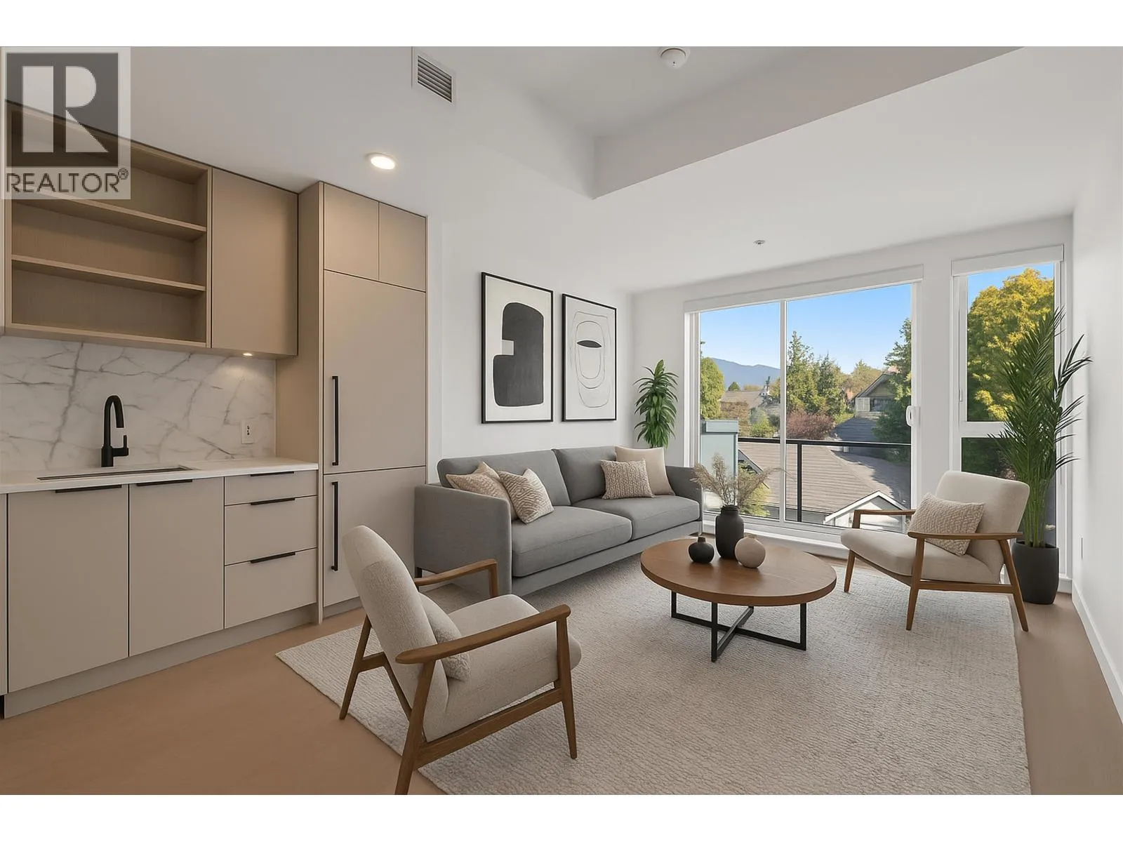 Available Now! Experience elevated living in this sleek, FULLY FURNISHED 1-bedroom, 1-bathroom suite located in the newly built INNOVA building-perfectly situated in the heart of Lower Lonsdale. Designed for comfort and style, this bright and airy unit offers a smart open layout, premium finishes & views of the North Shore Mountains. Underground parking & storage are also included for your convenience. Features include expansive floor-to-ceiling windows for abundant natural light, modern hardwood flooring throughout, a gourmet kitchen with Fisher & Paykel appliances & quartz countertops & in-suite laundry. Enjoy top-notch amenities including a rooftop terrace with panoramic views, outdoor lounge, community garden & access to The Blok-a walkable lane with shops and cafes steps away. (id:27476)