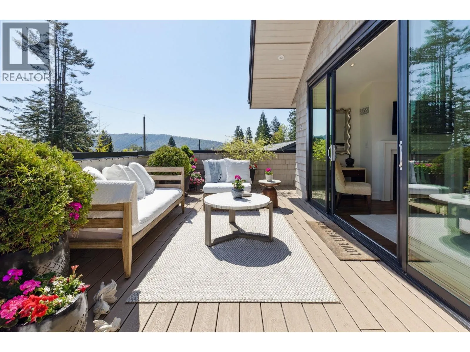 Perched above Deep Cove´s picturesque coastline, this custom residence is tucked amid private, manicured gardens. The main level offers over 2,300 sq.ft. of open-concept living, featuring a chef´s kitchen with quartz counters, s/s appliances, double wall ovens, generous island, plus two tranquil bdrms, versatile family room & laundry room for added convenience. Seamless indoor-outdoor living flows through expansive sliding doors out to a sun-soaked terrace-ideal for entertaining. Upstairs, a luxurious primary retreat boasts ocean + mountain views, gas fireplace, spa-like ensuite, dual walk-in closets & private terrace. A 4th bdrm completes this level. Every element of this residence has been thoughtfully curated for those who appreciate uncompromising quality-book your private showing today. (id:27476)