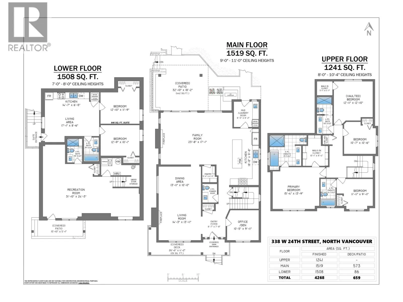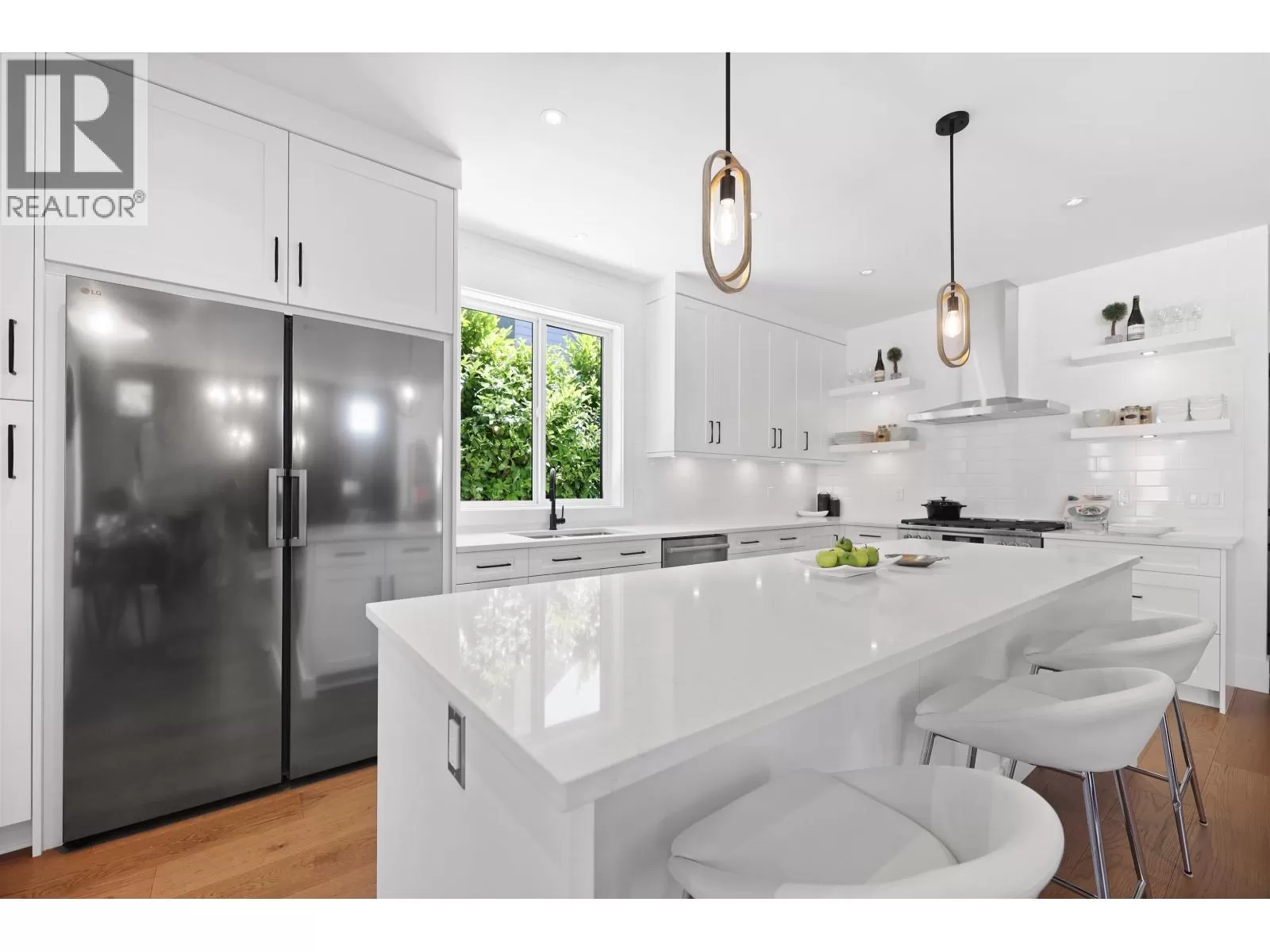 Presenting a stunning brand new residence by Noort Homes-experience the perfect blend of elegance, comfort, and functionality. This thoughtfully designed 4,268 sq.ft. home features a total of 6 beds and 6 baths, including a self contained legal 2-bed suite-ideal for multi-generational living or rental income. The main floor welcomes you with an open-concept layout that includes a gourmet kitchen with great appliance package and a spacious island, a bright dining area, and a family room with an elegant feature wall and cozy gas fireplace. Enjoy seamless access to covered patios and decks, perfect for outdoor entertaining in any season. Modern comfort is ensured with a heat pump & air conditioning system. The upper level offers 4 generously sized bedrooms, including a luxurious primary suite with a spa-inspired ensuite, walk-in closet, Enjoy south-westerly views from the upper level. 3 car garage off lane, storage & close proximity to shopping, Carson Graham High School (IB Program). O-H Sun Nov 16, 2-4 PM (id:27476)