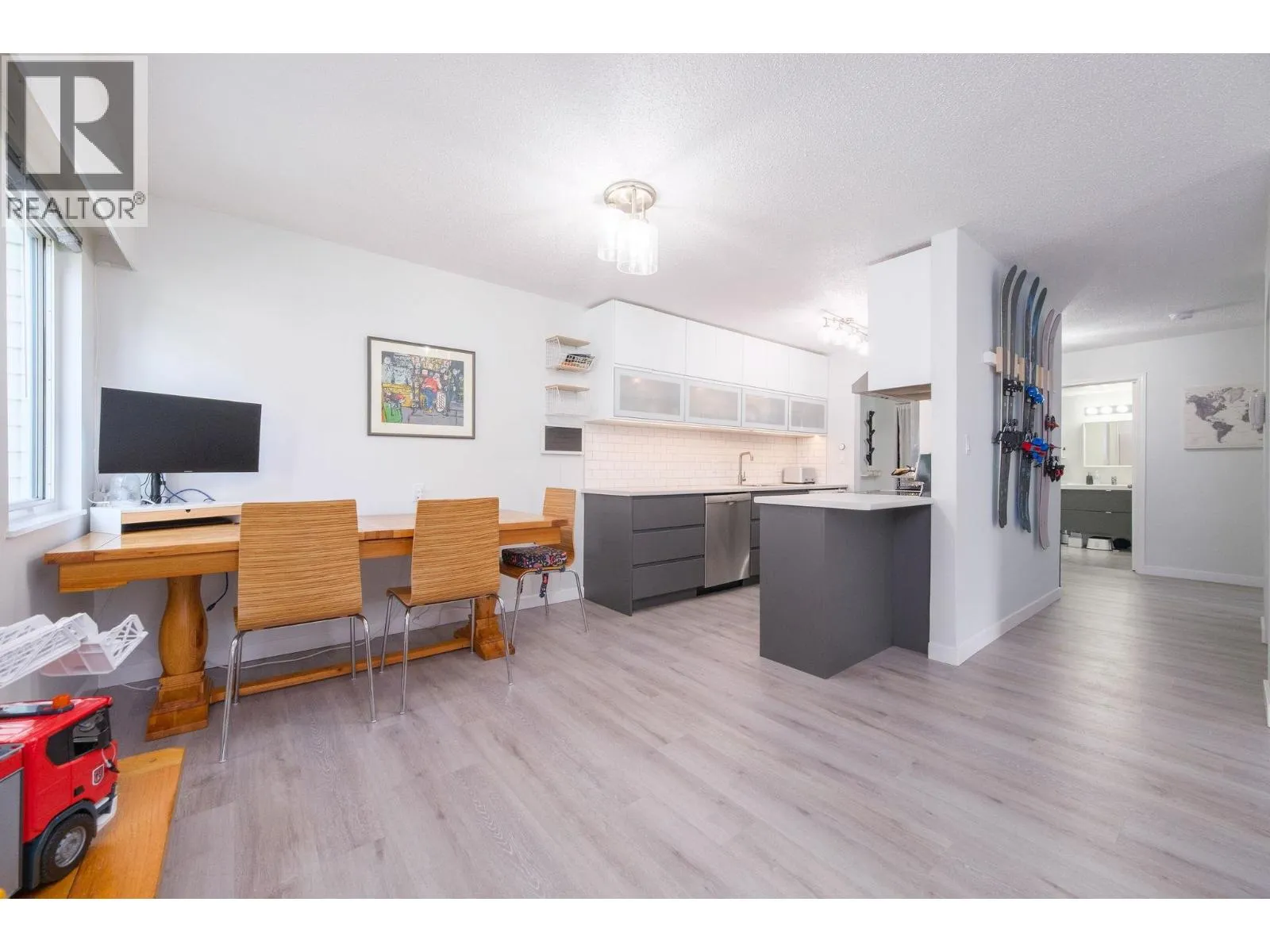 Step into over 1,040 sq.ft. of updated comfort in this 2-bedroom home designed for space and light. The open-concept layout showcases a renovated kitchen with stylish two-tone cabinetry, stainless steel appliances, and wide-plank flooring throughout. Oversized windows and a sun-soaked balcony create a warm, inviting atmosphere, while the flexible floor plan offers plenty of room to work, relax, or entertain. With generous in-suite storage and a location just steps to trails, parks, Capilano University, and quick Highway 1 access, this home is a smart choice for first-time buyers or anyone needing more space at an exceptional value. (id:27476)