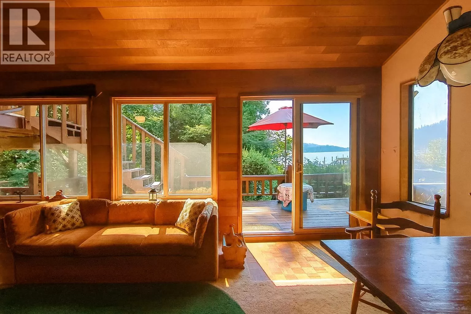 Water and Woods. This is a rustic four level 3 1/2 bedroom, 1 1/2 bath home with private forest and vegetable garden space. There is a meadow, direct views of and access to the beach which is a stones throw away. Neighbours share the meadow and wharf in this safe private community of Brighton Beach. You can fish for salmon and drop a crab trap within easy reach. Boat access only provides privacy and security for those on vacation as well as those who live there year round. This is a great place for kids and dogs. The cozy house, with all of its cedar and three levels of decks provides for lots of private space for guests and families alike. This is a great place to relax or celebrate after a full day. There are Easy to moderate hiking and running trails that traverse through the pristine wilderness. They are accessible from the backyard and will gently lead you to a cathedral like forest area. For the more adventurous there are rougher trails to the bluff, Shone Creek, the top of Silver Falls, and more. (id:27476)