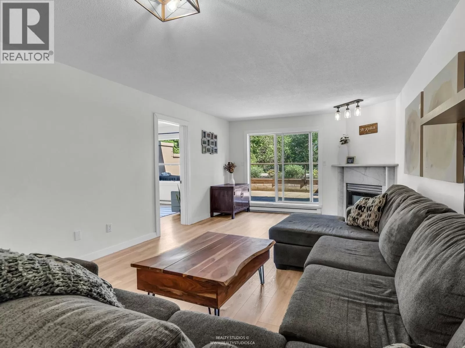 Welcome to your dream retreat in the heart of Indian River-this stunningly renovated, oversized 1-bedroom and den offers 1,050 sqft of luxurious living space, plus a massive 250 sqft sundeck that opens to breathtaking forest views and unmatched serenity. Nestled in a solid concrete building, this home blends peace and privacy with modern elegance. Step inside to discover a bright open-plan kitchen, brand-new wide plank flooring and a cozy gas fireplace that anchors the living space. The versatile den is perfect as a nursery, home office, or creative studio. With two side-by-side parking stalls, a private storage locker, and pet- and rental-friendly policies, this home checks every box. Located just minutes from Parkgate Village, Dorothy Lynas Elementary, and walking trails. (id:27476)