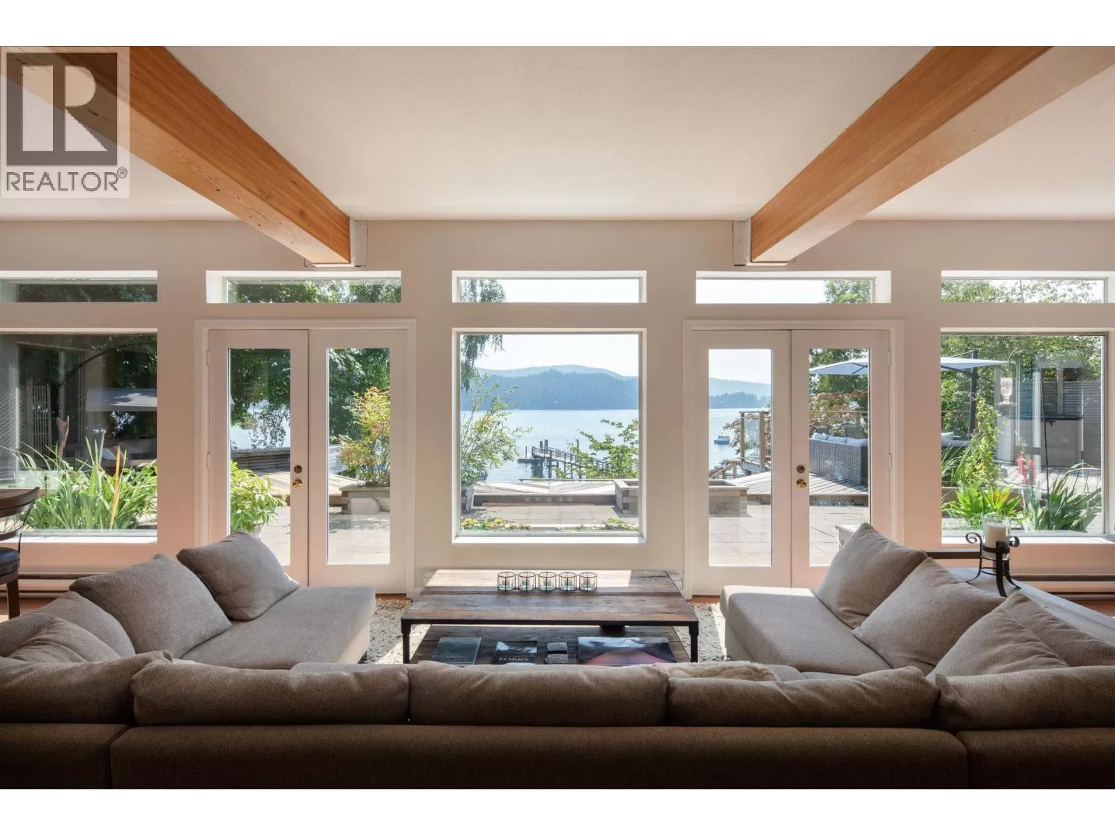 Presenting Beach Cove House. A cascading waterfall greets you at the forest entrance to this extraordinary three-quarter acre waterfront sanctuary on Indian Arm. Here, where 90 feet of gentle sandy beach meets deep water moorage, the intimate scale of a private cove unfolds against sweeping southern views toward Belcarra. Walls of windows frame an ever-changing seascape from both living spaces and the primary suite, while five sets of double doors dissolve boundaries between indoor refuge and waterfront paradise. Spanish tile and timber beams anchor spaces designed for creativity-where grand pianos overlook the ocean and quilts spread beneath natural light. A rare harmony of privacy, accessibility, and profound natural beauty where waterfront living reaches its most sublime expression. (id:27476)