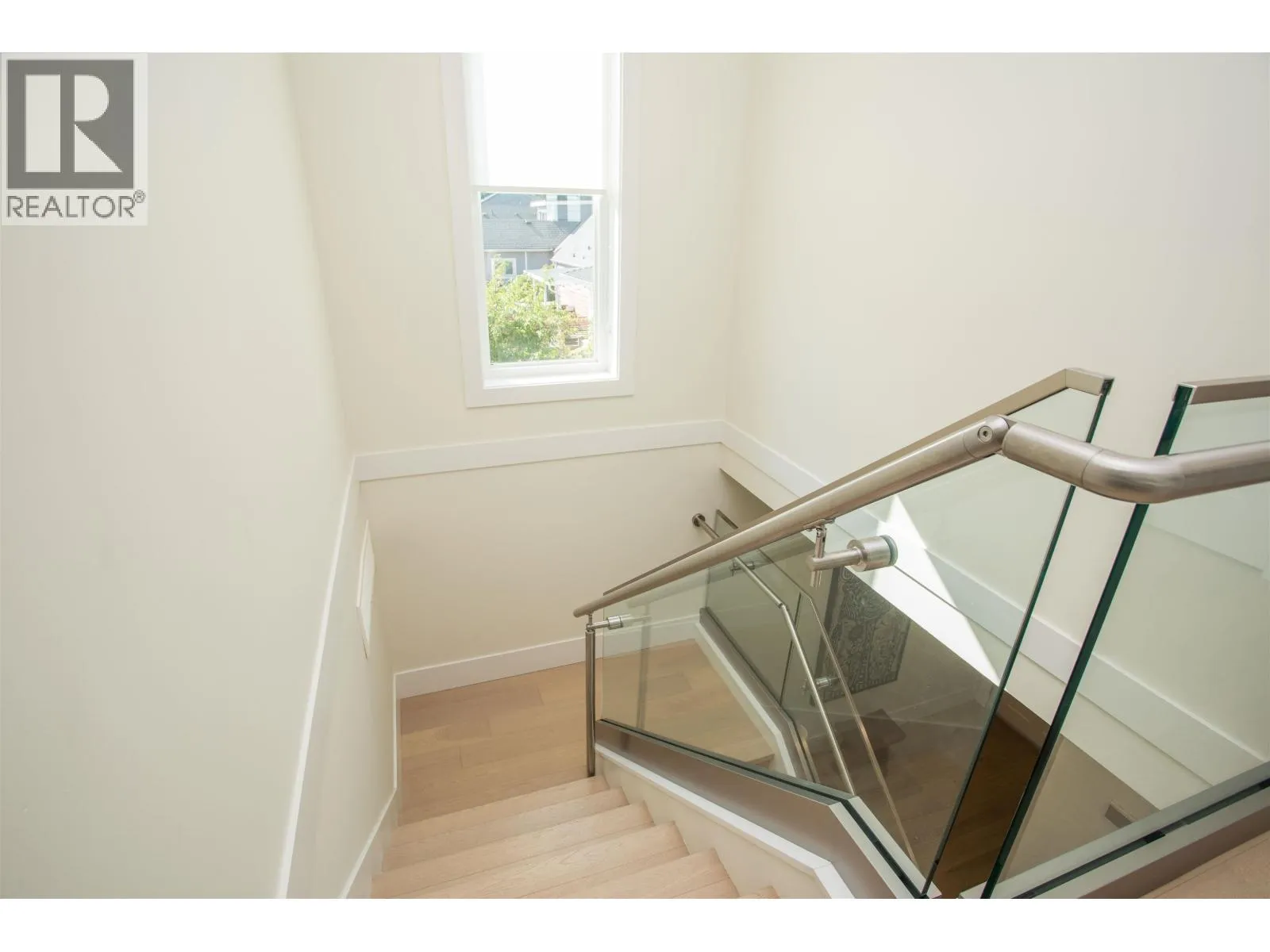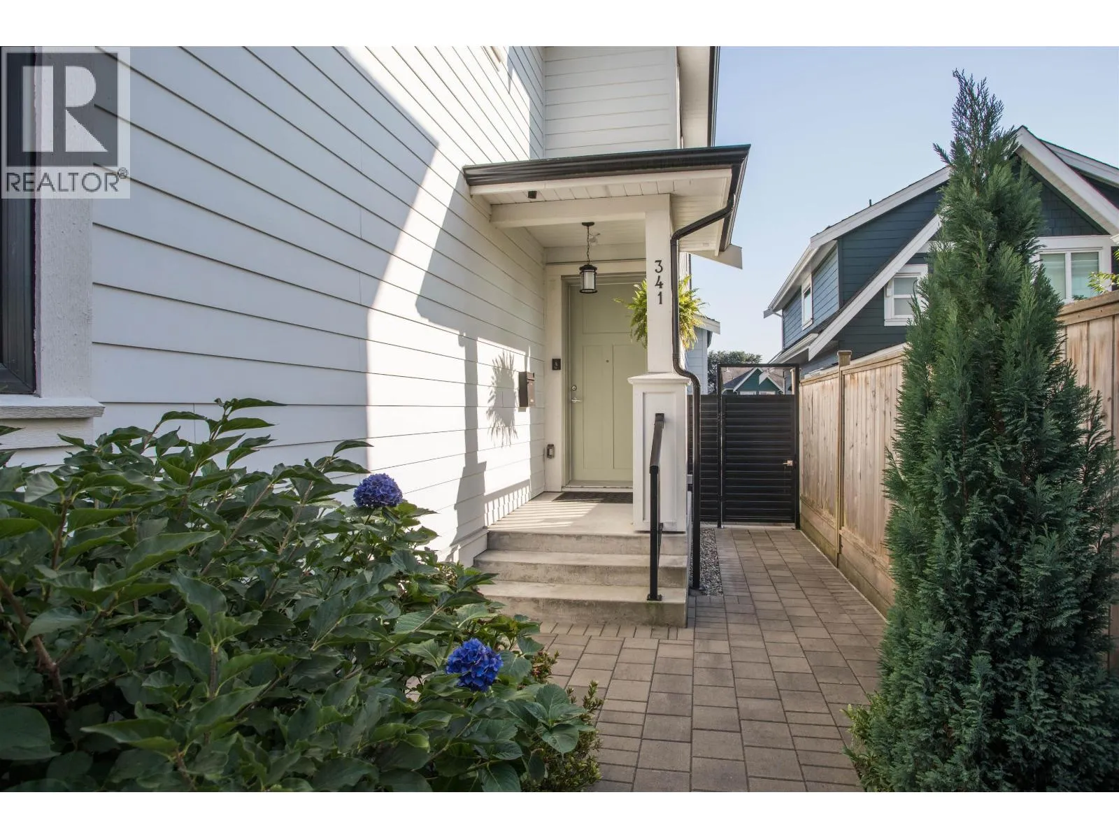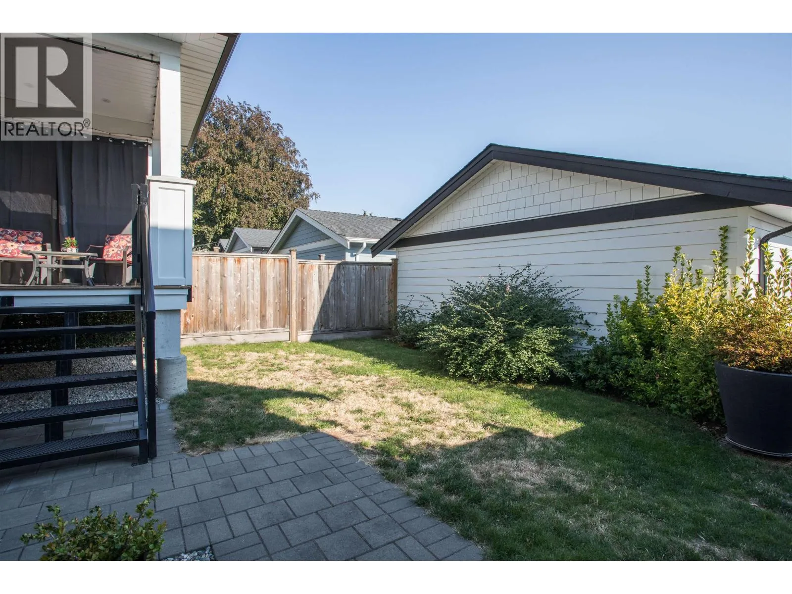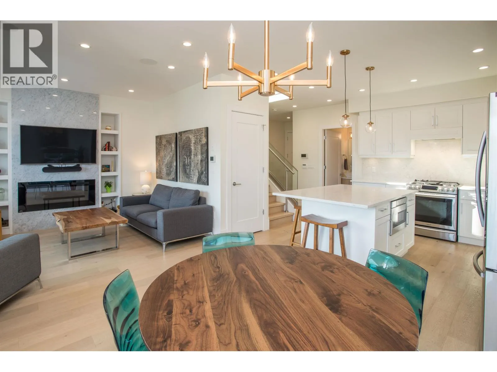 Nestled between the urban conveniences of Central Lonsdale and the serenity of Ray Perrault Park and Grand Boulevard, this custom-built half duplex offers the best of both worlds. Spanning two levels, it features soaring ceilings, hardwood floors, A/C, a cozy fireplace, and an expansive crawl space. The bright kitchen with large island, stone counters, and high-end appliances flows seamlessly into the sunlit dining and living areas. Upstairs, the private primary suite includes a partial skyline view, while two additional bedrooms complete the traditional family layout. Enjoy outdoor living on the south-facing deck or in the fully fenced yard. With lane access to a detached garage and a prime walkable location, this is the perfect family home-without strata fees or restrictions! (id:27476)