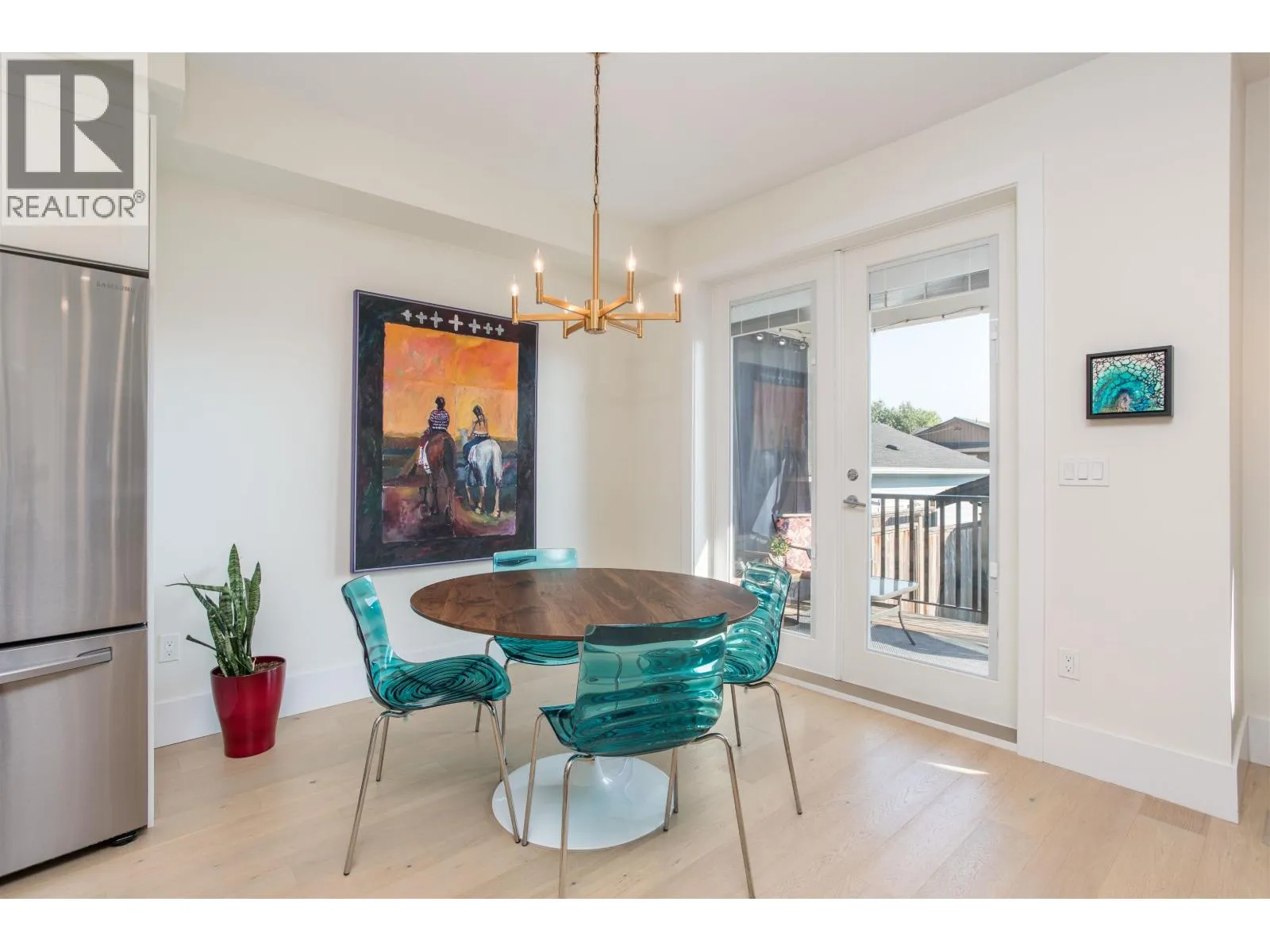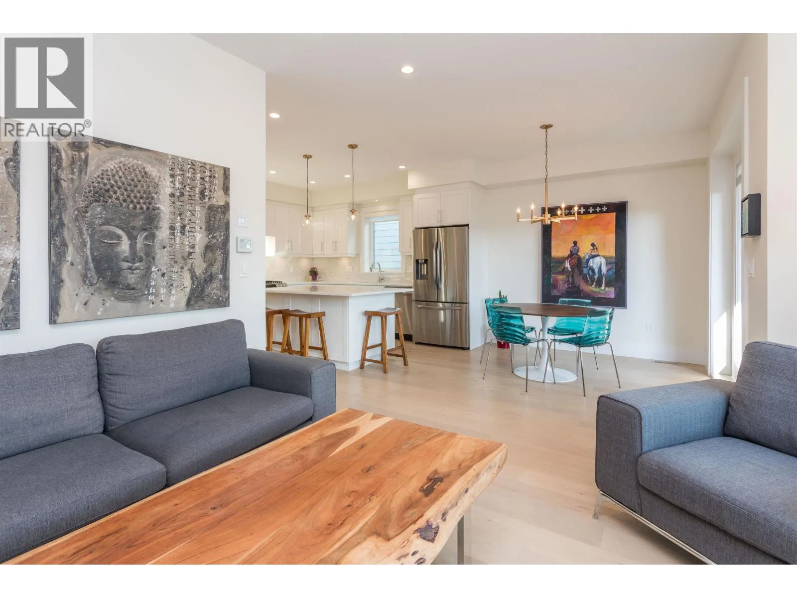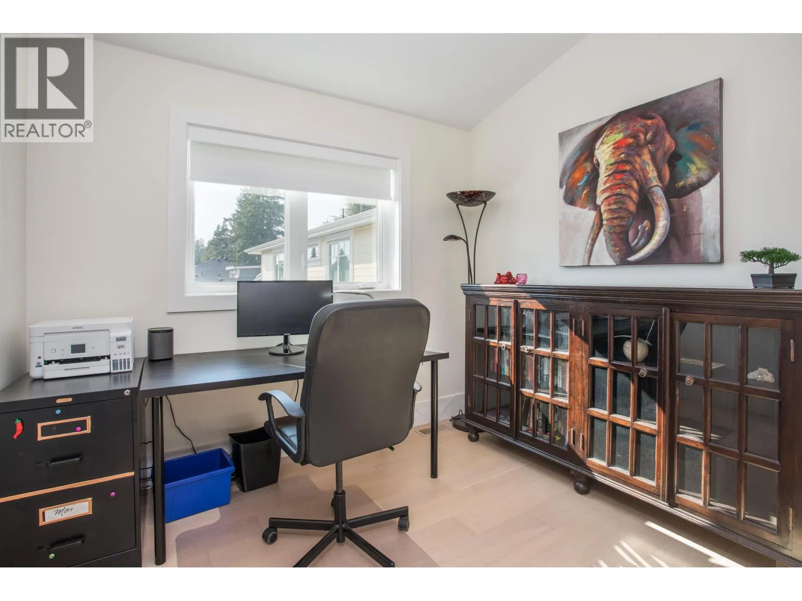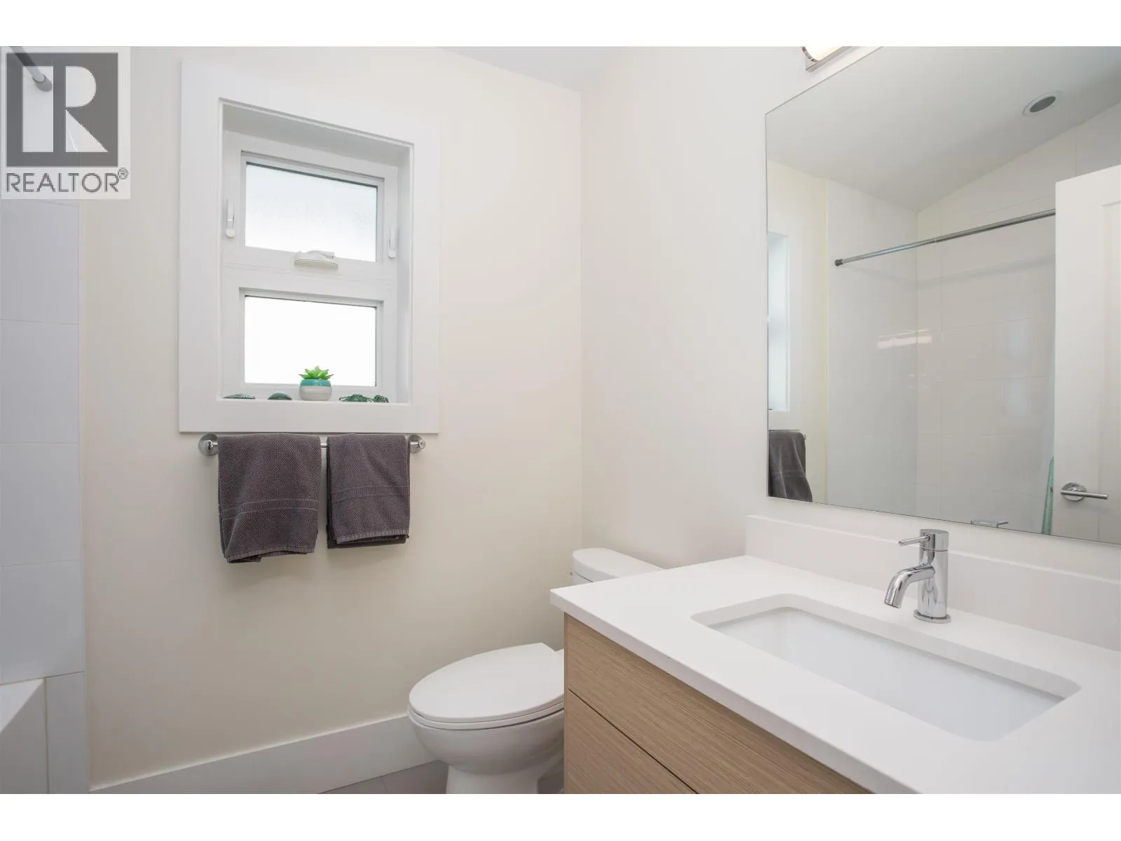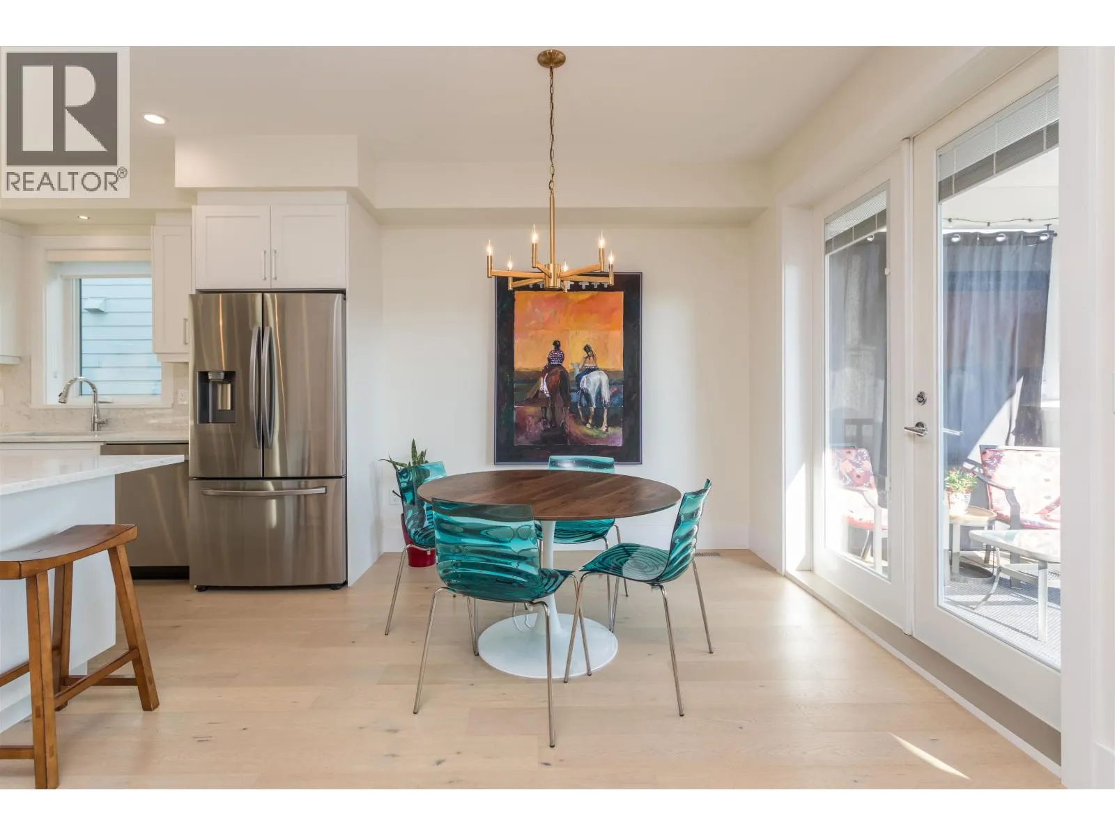 Nestled between the urban conveniences of Central Lonsdale and the serenity of Ray Perrault Park and Grand Boulevard, this custom-built half duplex offers the best of both worlds. Spanning two levels, it features soaring ceilings, hardwood floors, A/C, a cozy fireplace, and an expansive crawl space. The bright kitchen with large island, stone counters, and high-end appliances flows seamlessly into the sunlit dining and living areas. Upstairs, the private primary suite includes a partial skyline view, while two additional bedrooms complete the traditional family layout. Enjoy outdoor living on the south-facing deck or in the fully fenced yard. With lane access to a detached garage and a prime walkable location, this is the perfect family home-without strata fees or restrictions! (id:27476)