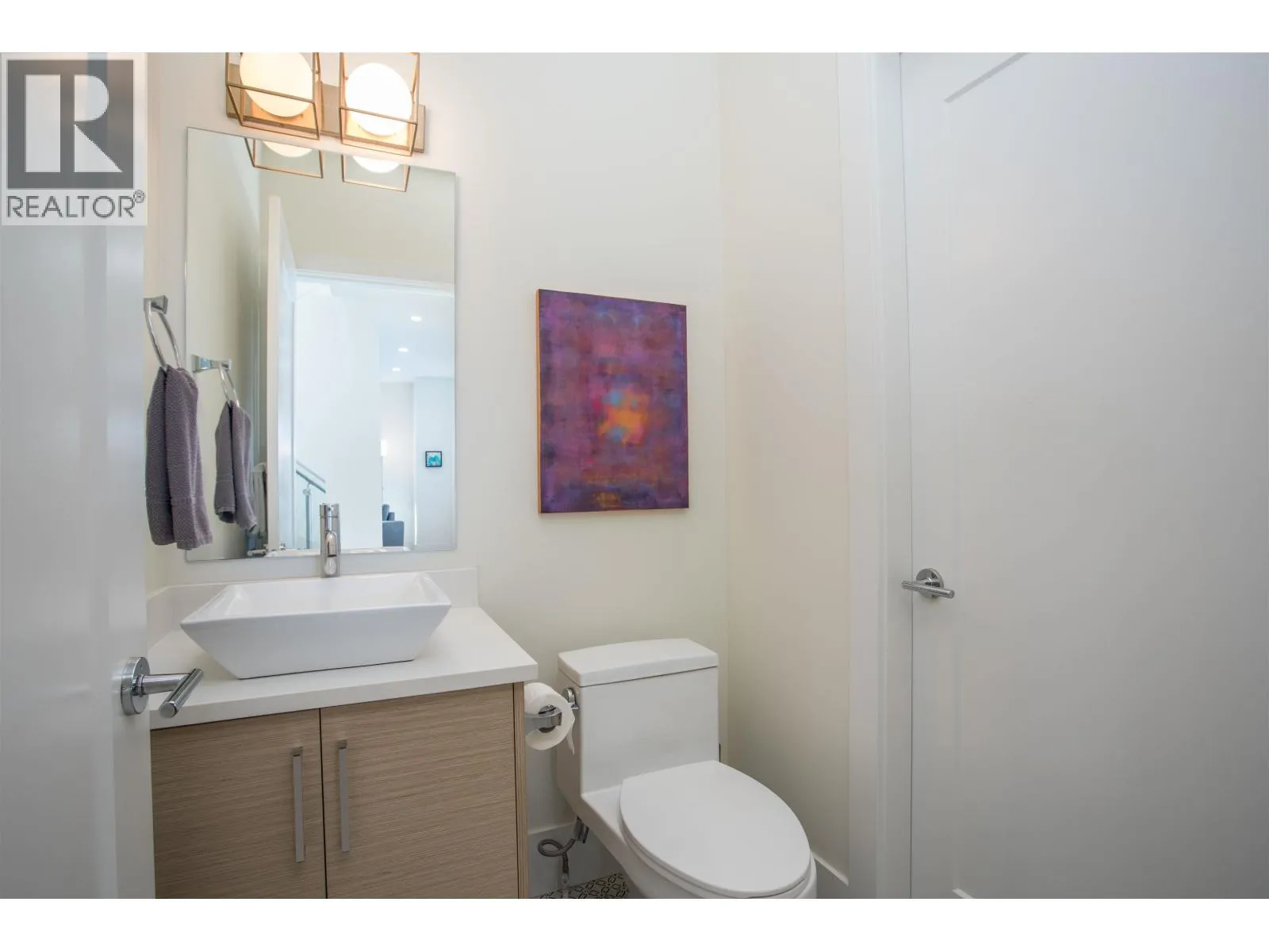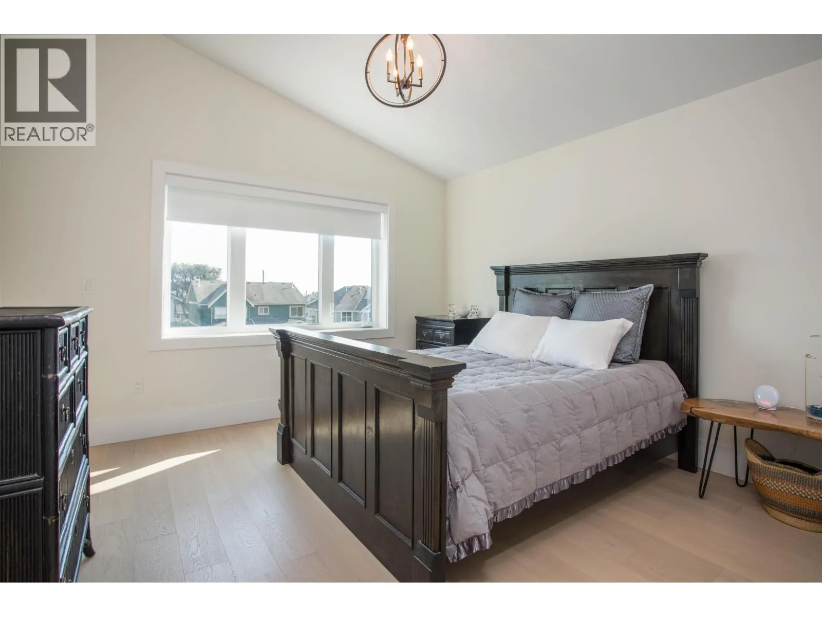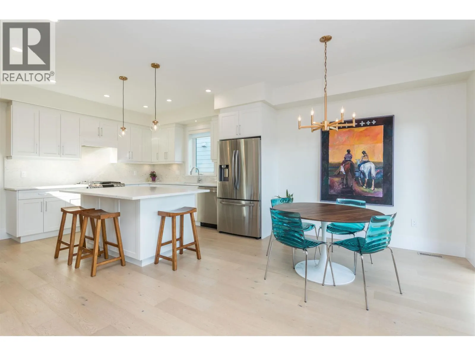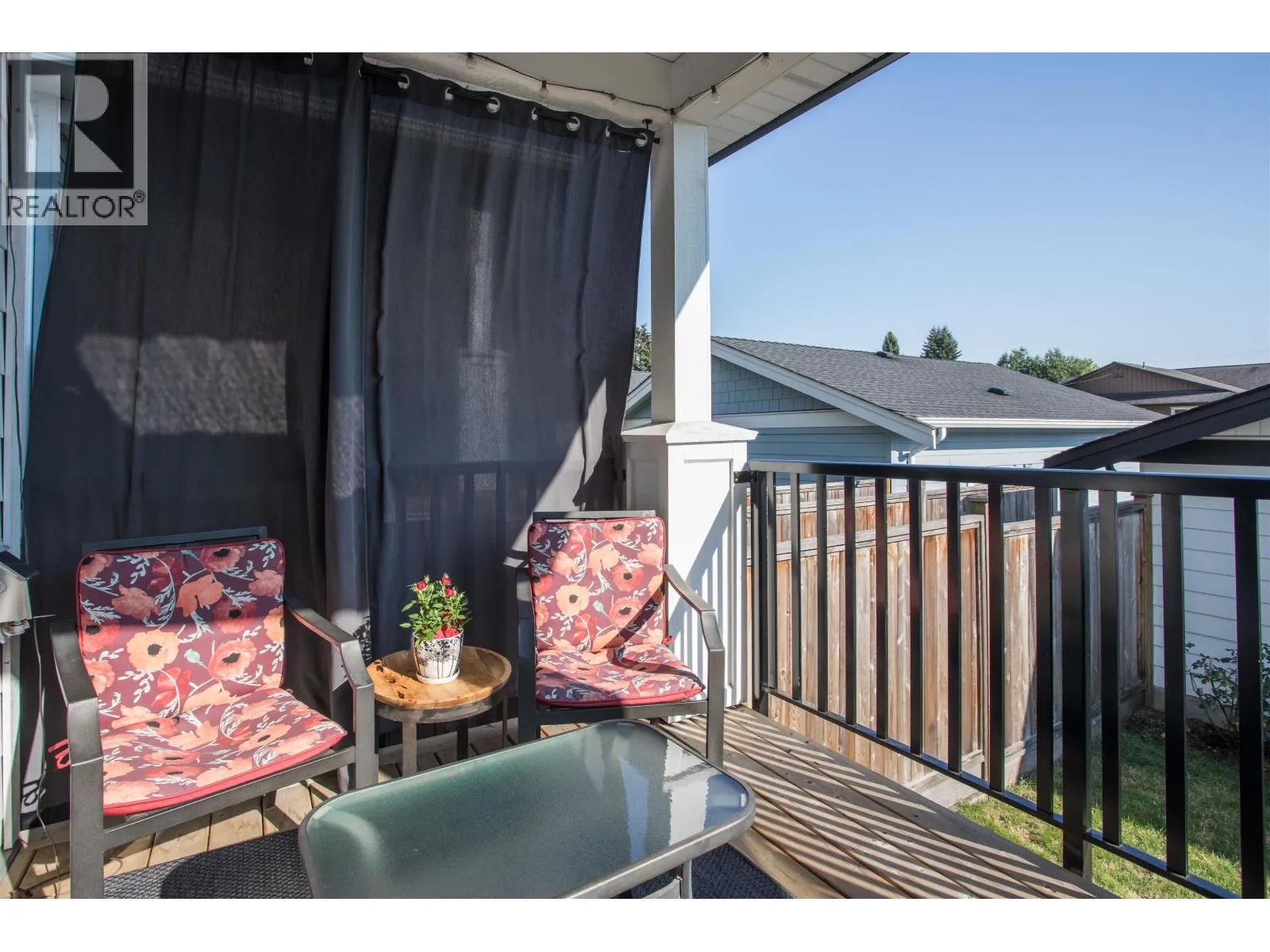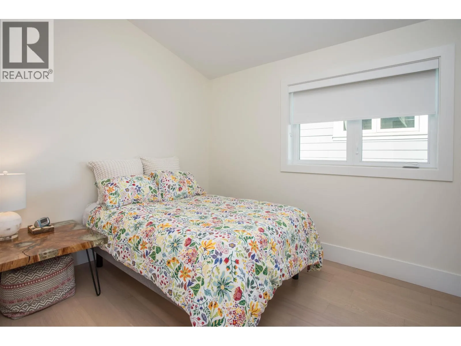 Nestled between the urban conveniences of Central Lonsdale and the serenity of Ray Perrault Park and Grand Boulevard, this custom-built half duplex offers the best of both worlds. Spanning two levels, it features soaring ceilings, hardwood floors, A/C, a cozy fireplace, and an expansive crawl space. The bright kitchen with large island, stone counters, and high-end appliances flows seamlessly into the sunlit dining and living areas. Upstairs, the private primary suite includes a partial skyline view, while two additional bedrooms complete the traditional family layout. Enjoy outdoor living on the south-facing deck or in the fully fenced yard. With lane access to a detached garage and a prime walkable location, this is the perfect family home-without strata fees or restrictions! (id:27476)