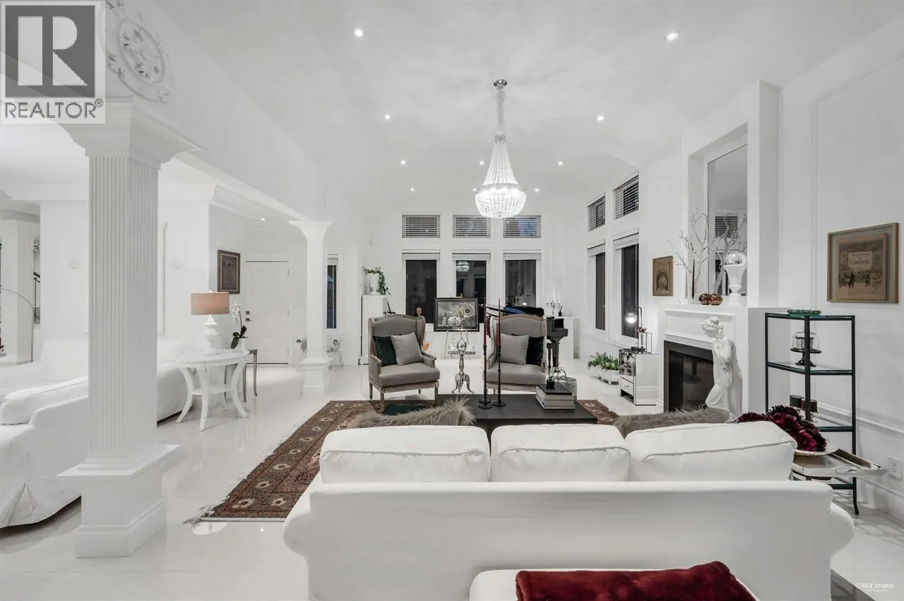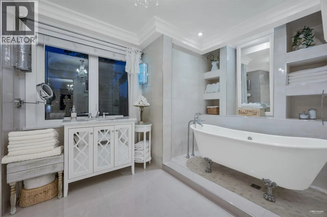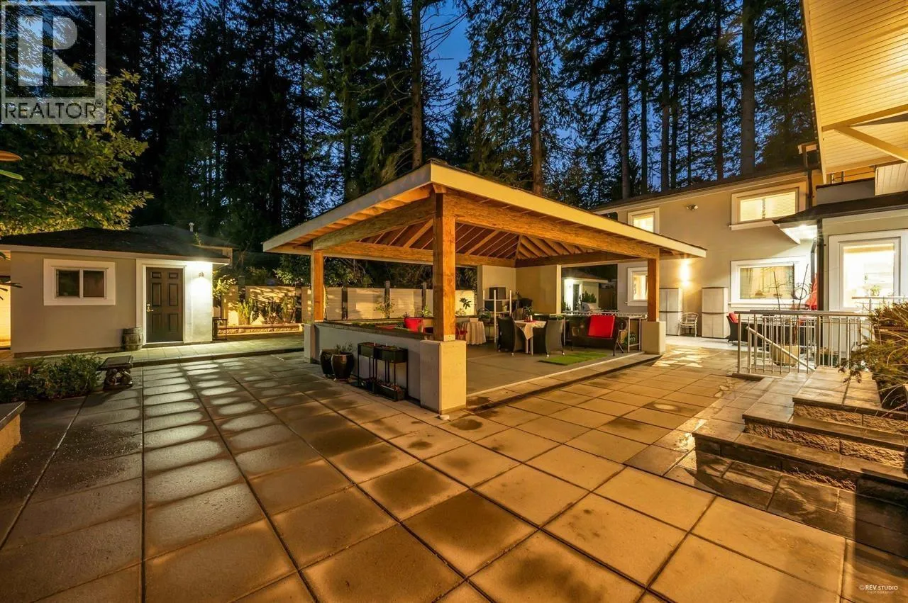 This exceptionally well-crafted residence sits on a beautifully landscaped 16,332 sq. ft. lot, within close proximity to Edgemont Village and Cleveland Park. Thoughtfully designed with 5 spacious bedrooms and 4 full bathrooms, it showcases refined finishes and a modern aesthetic across 6,158 sq. ft. of living space spread over three levels. The home offers a gourmet French-style kitchen with premium appliances, a secondary open-concept kitchen with a walk-in pantry, radiant heating, German-engineered porcelain flooring, and a high-quality roof. The lower level is tailored for entertaining, featuring a custom wet bar, recreation room, sauna, steam room, and additional walk-in closets. Conveniently located within walking distance to Handsworth Secondary and Canyon Heights Elementary. (id:27476)