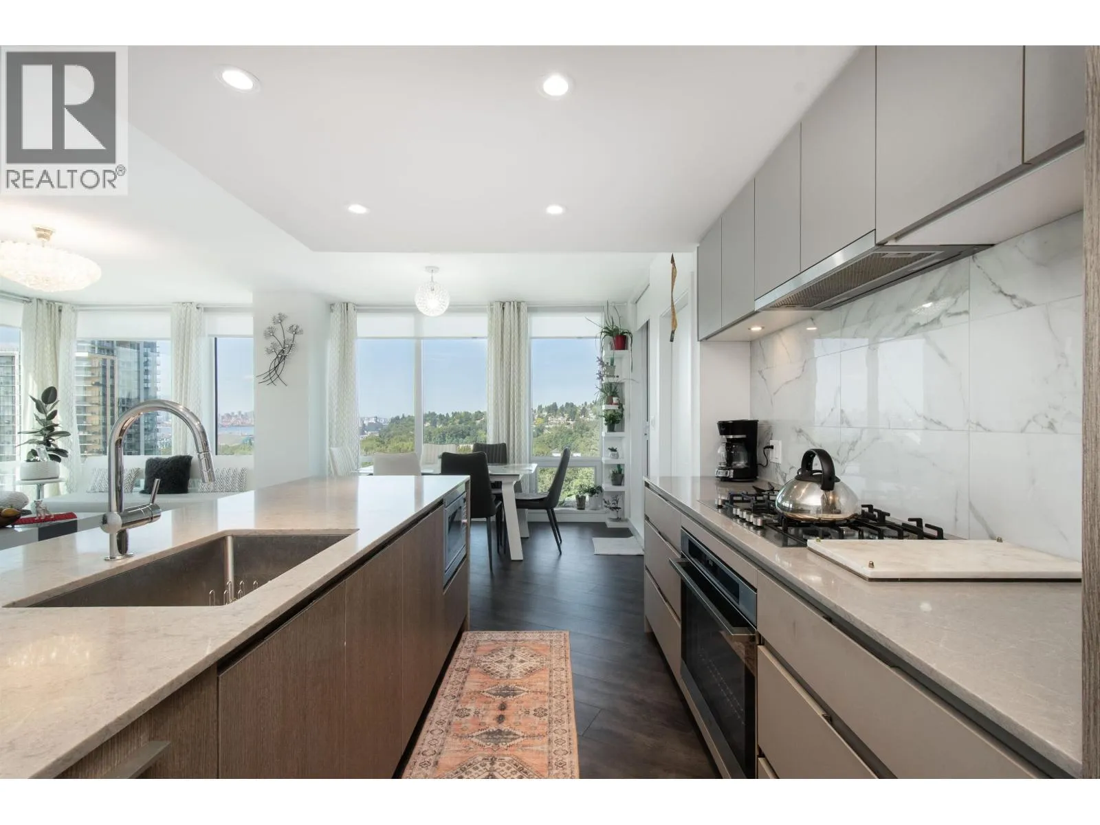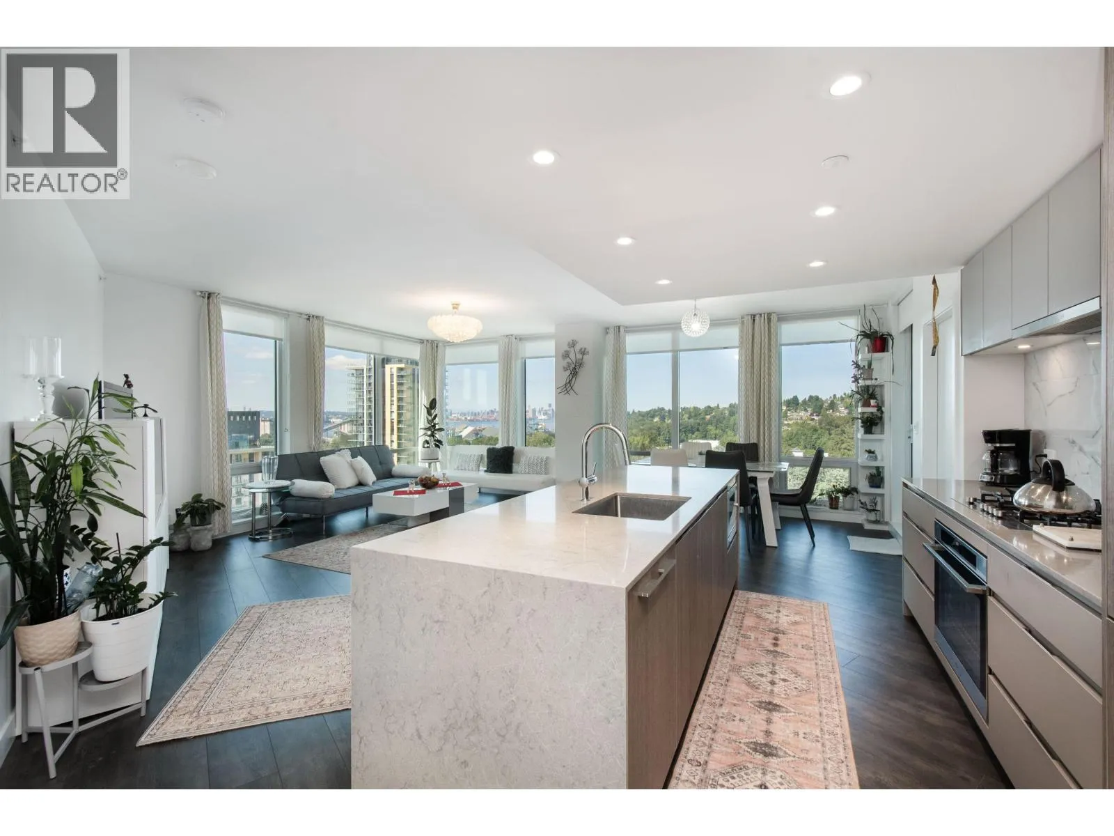 View! View! View! Discover this stunning 2-bedroom plus den, 2-bathroom corner unit, offering breathtaking South and West facing views. The thoughtful layout features an open-concept living space filled with natural light, a modern kitchen with stainless steel appliances, and a versatile den perfect for a home office/extra small bed. Building has 5 Elevators! Indulge in luxurious amenities including a fully equipped gym, amazing swimming pool, Guest suite, Bicycle rooms and all necessity for bike maintenance, and elegant party rooms for entertaining. Conveniently located near shopping, dining, transportation, and Hwy 1, this is the ultimate urban retreat. Ev parking, ample storage. The best floor plan and view in the Building! OPEN HOUSE BY APPOINTMENT. (id:27476)