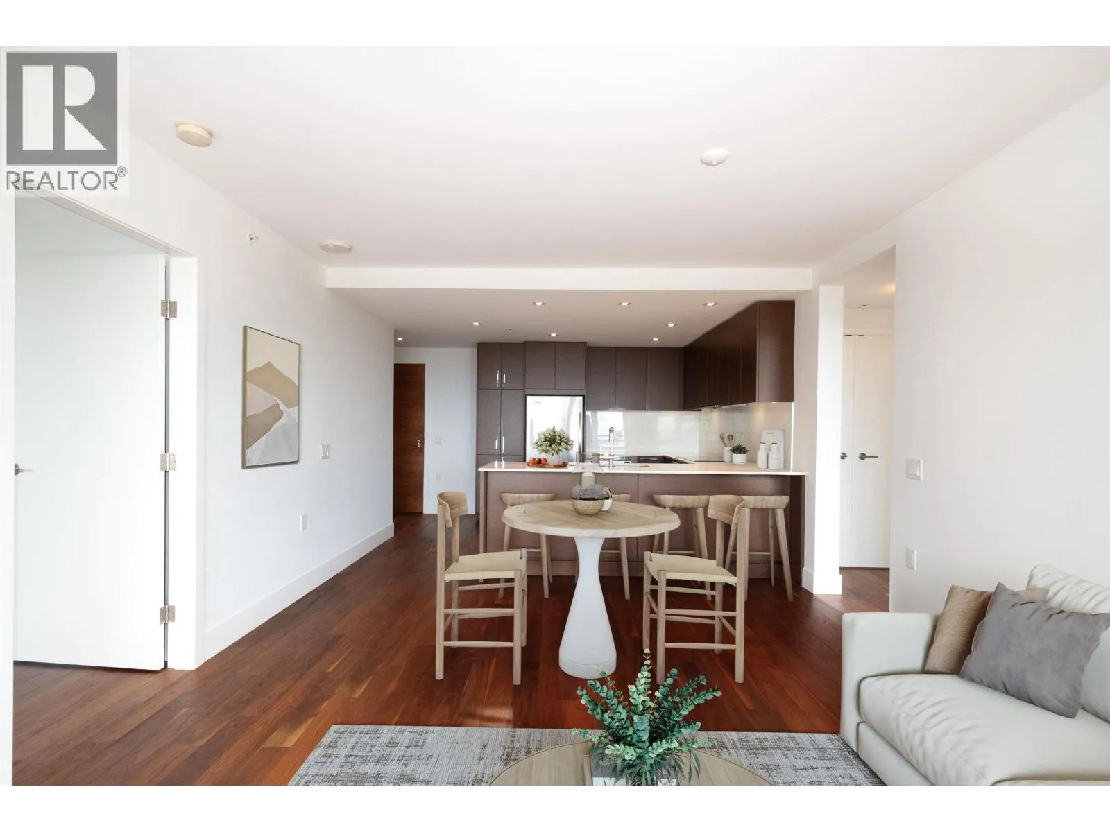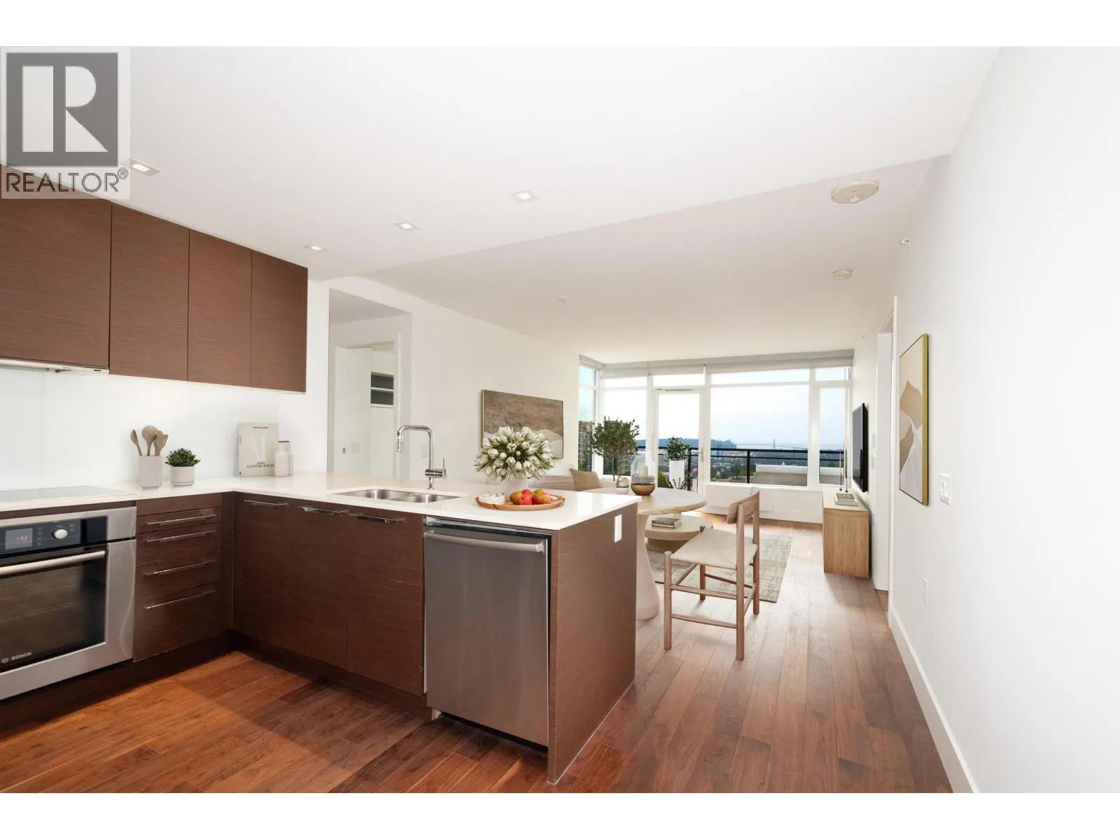 Freshly painted and elegantly appointed, this southwest-facing two-bedroom plus den, two-bath home at The Prescott offers 957 sq. ft. of bright, open living. A 140 sq. ft. covered patio extends your space outdoors, showcasing sweeping SW city, ocean, and mountain views. Only 11 years young, this sought-after Central Lonsdale building puts Whole Foods, boutique shopping, fitness studios, vibrant dining, and scenic parks at your doorstep. Enjoy the perfect blend of urban convenience and North Shore lifestyle with one secure parking stall, a storage locker, and two bike stalls included. A rare opportunity to own in one of North Vancouver´s most desirable communities! Freshly painted and very easy to show! (id:27476)