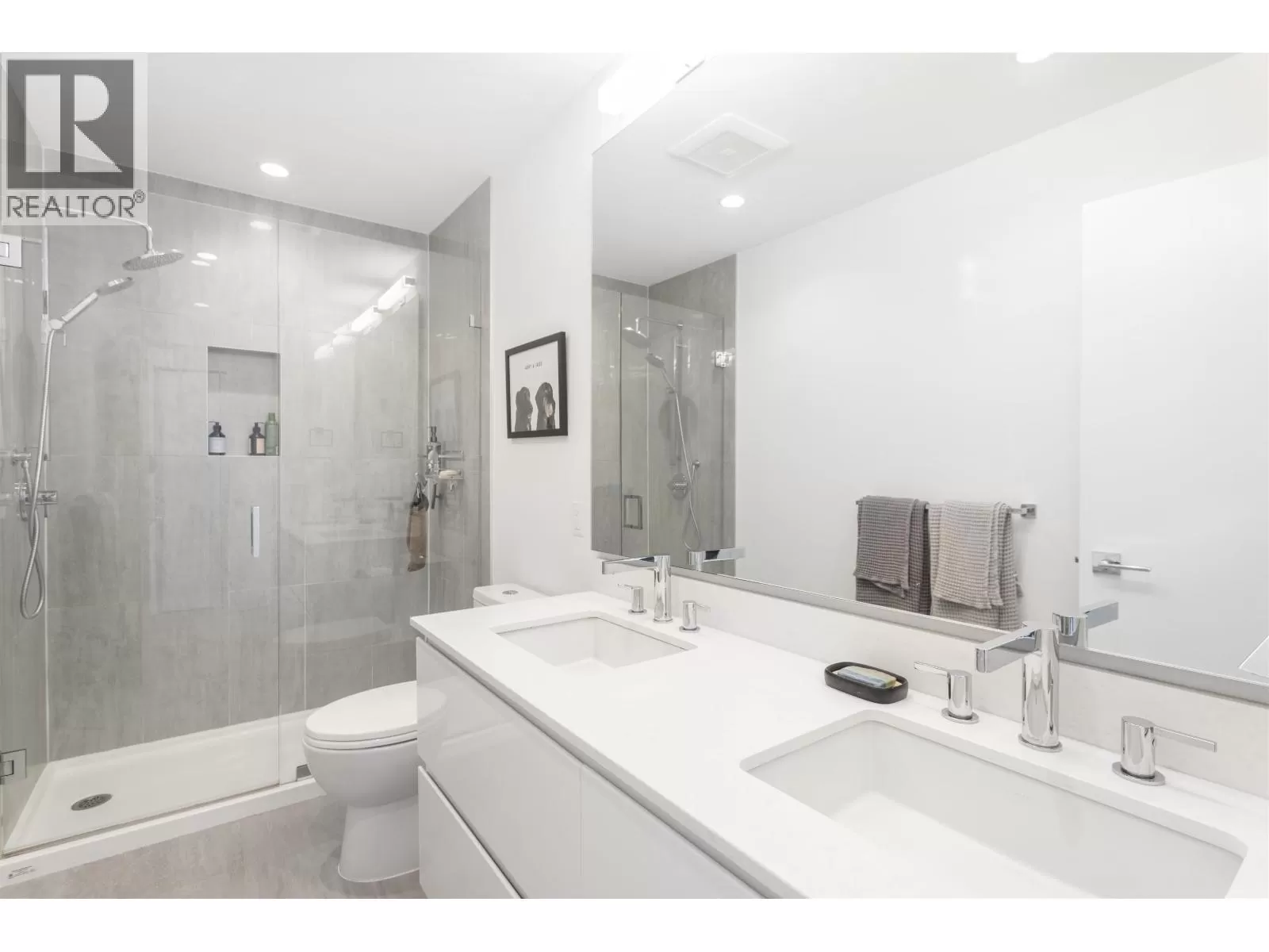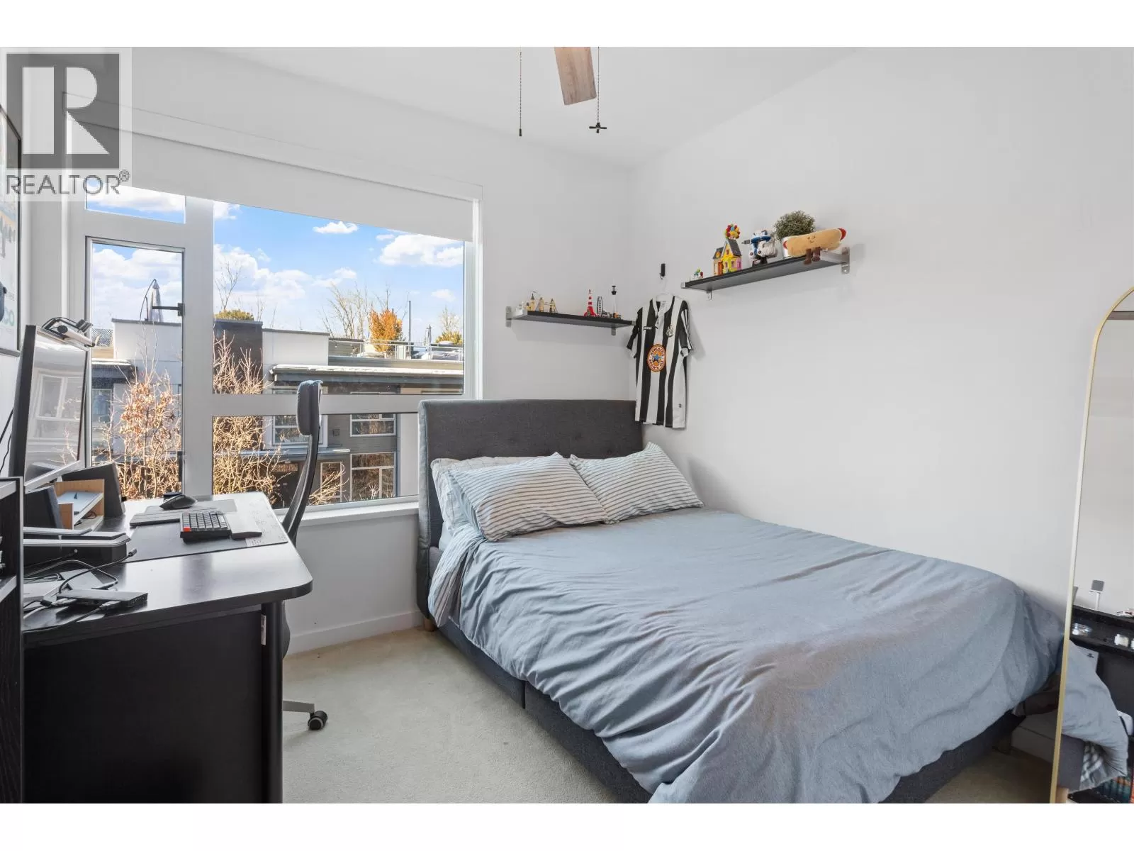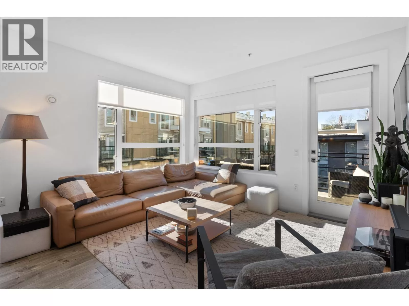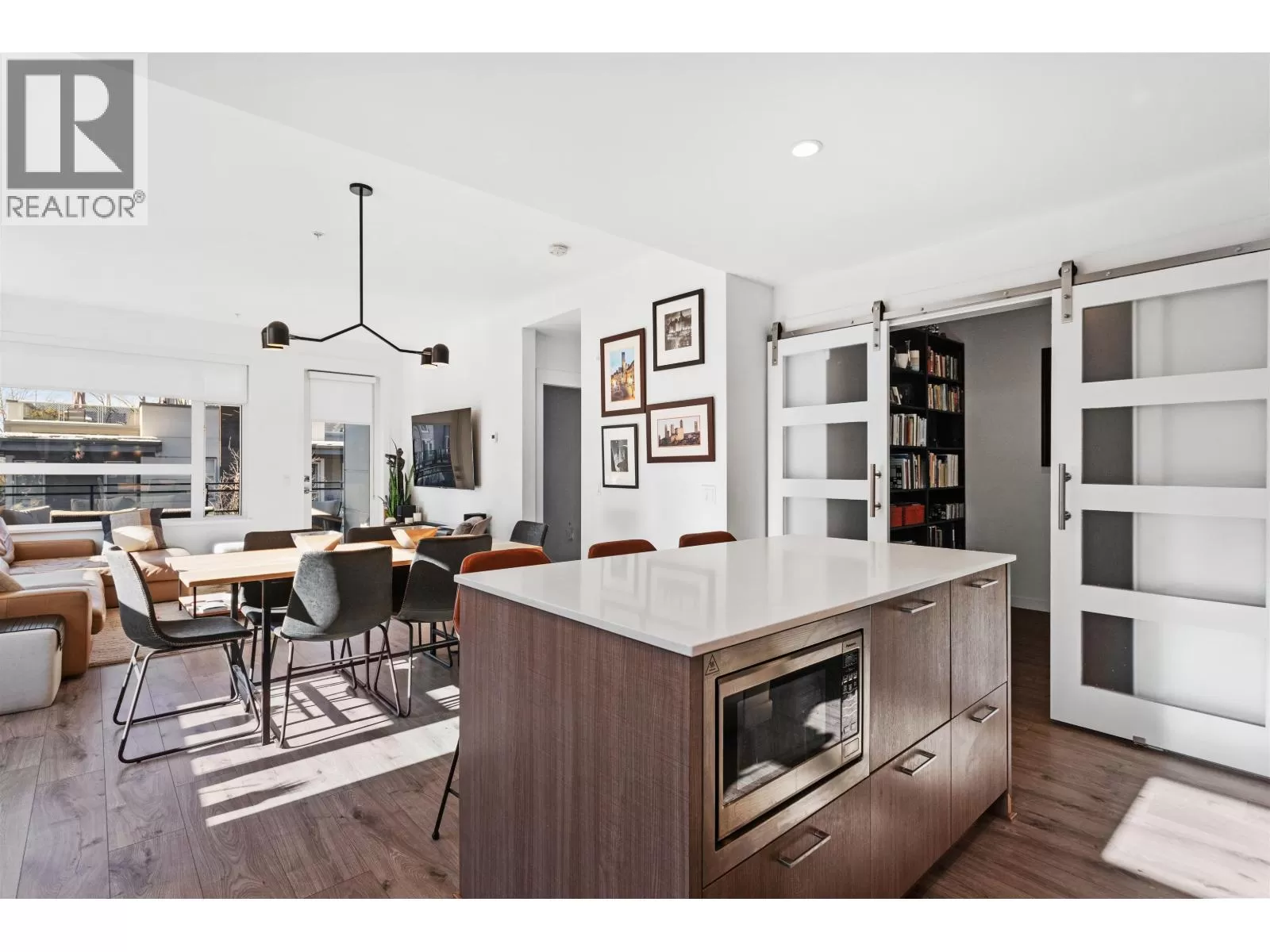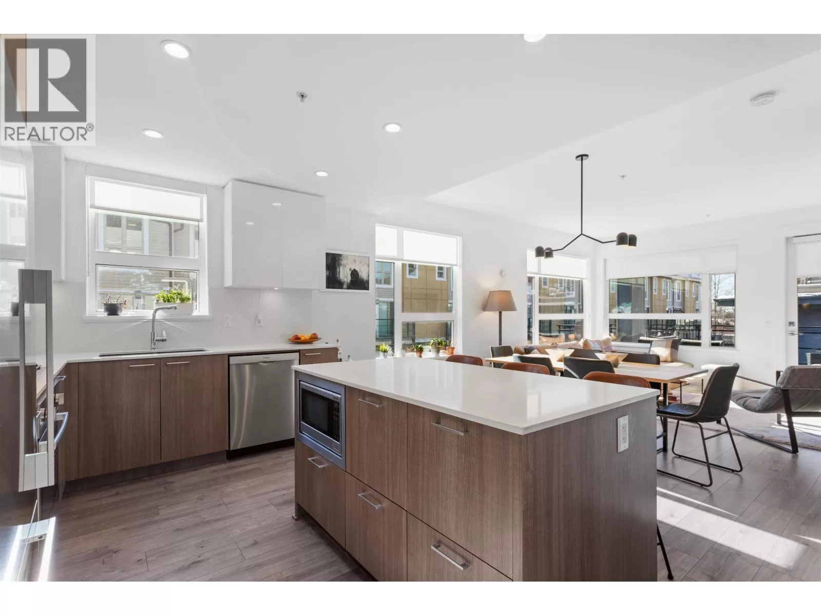 A rare 3 Bedroom, 2 Full Bath & Den corner unit at the Creston. This bright and functional East, West & South facing home offers almost 1,200 SF of living space with amazing open floor plan. Features 9' ceilings and in-floor hot water radiant heating. The sleek kitchen has loads of cupboard space, quartz counter-tops, SS appliances & a 5-burner gas cooktop. Centre island is perfect for casual dining. Spacious 140 SF patio offers plenty of opportunities for outdoor entertaining and BBQ. Centrally located on a quiet street, great walkable neighbourhood, on transit, close to schools, shopping, parks and trails! This home offers two parking, storage locker,Bike Room, Amenity Room in a pet and kid friendly building. (id:27476)