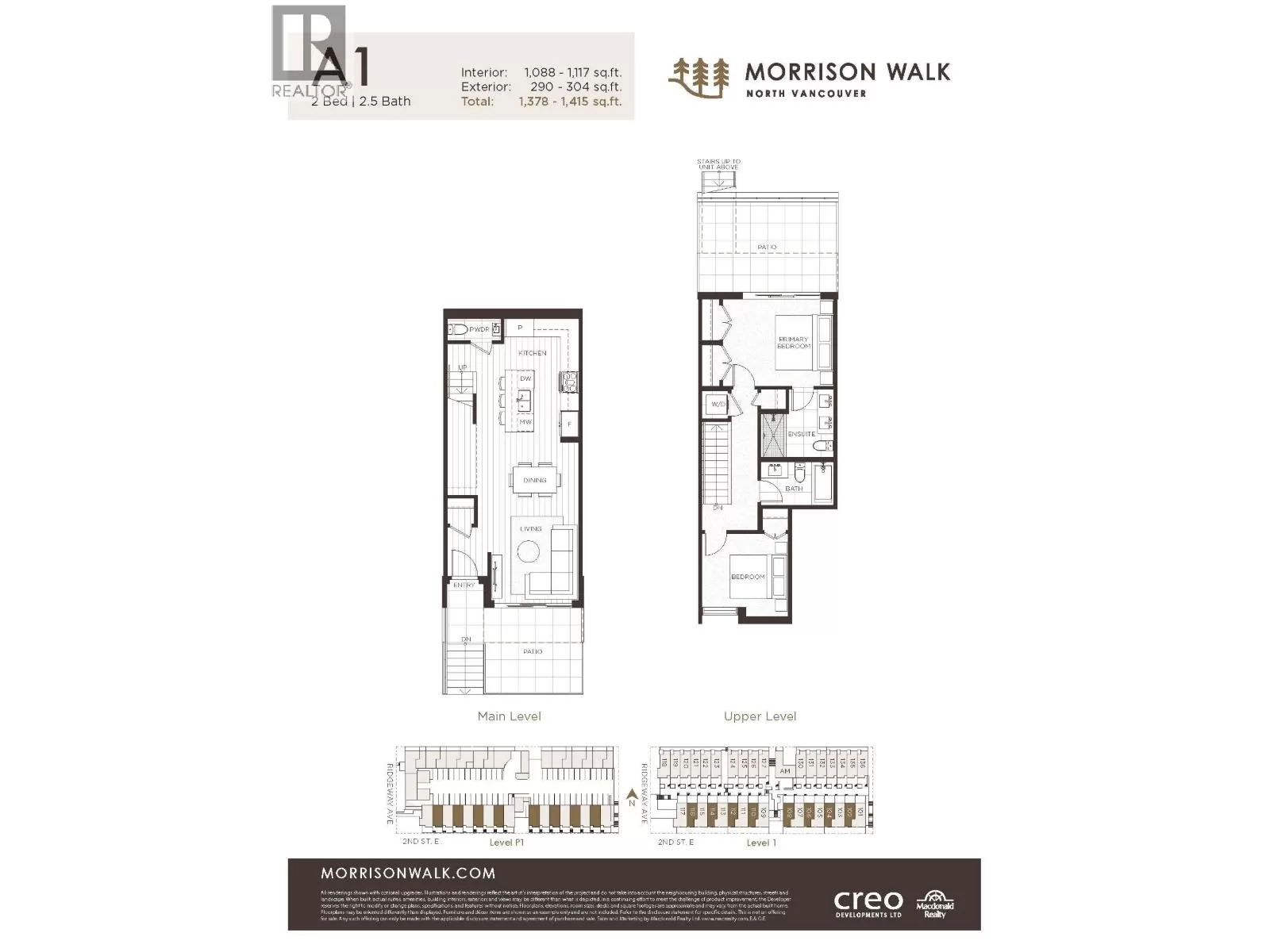 Morrison Walk | This stunning 2-bedroom, 2.5-bathroom townhome offers 1,380sq.ft. of total living space, including 1,088 sq.ft. indoors and 290 sq.ft. of private patios. The open-concept main level seamlessly connects the kitchen, dining, and living areas to a private patio, perfect for entertaining. Upstairs, the spacious primary bedroom features a luxurious ensuite complete with a double vanity, with a sun drenched second bedroom and full bath. Located in desirable Moodyville, North Vancouver, this home is steps from parks, shops, and transit. Customized parking and storage solutions available, yes we have room for all your toys! PRE-SALE OPPORTUNITY. Ask about our buyer incentive programs. Completion slated for Fall/Winter 2026. (id:27476)