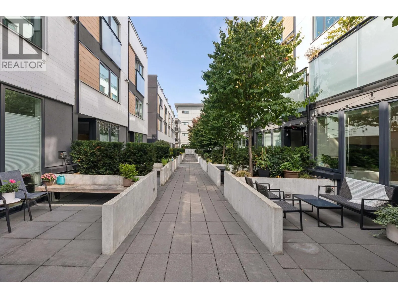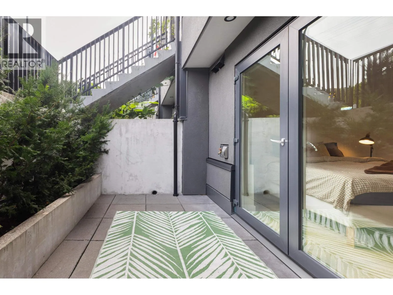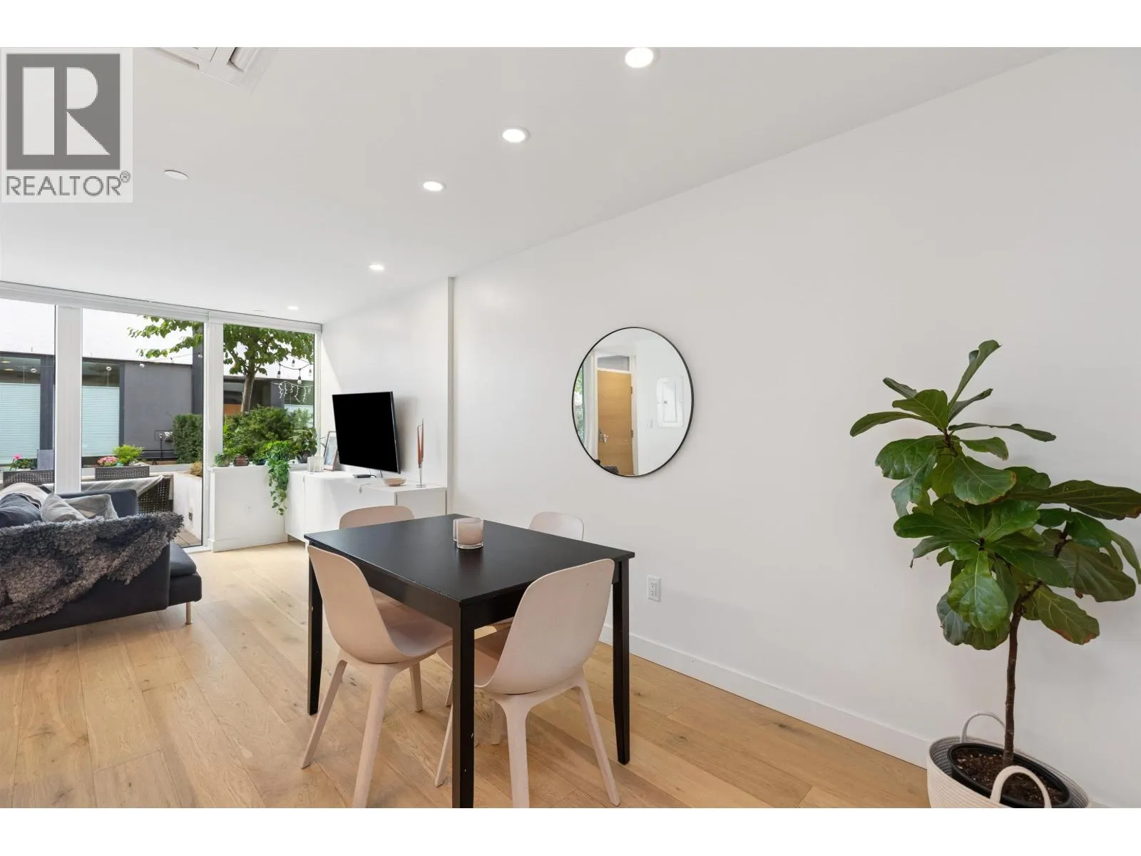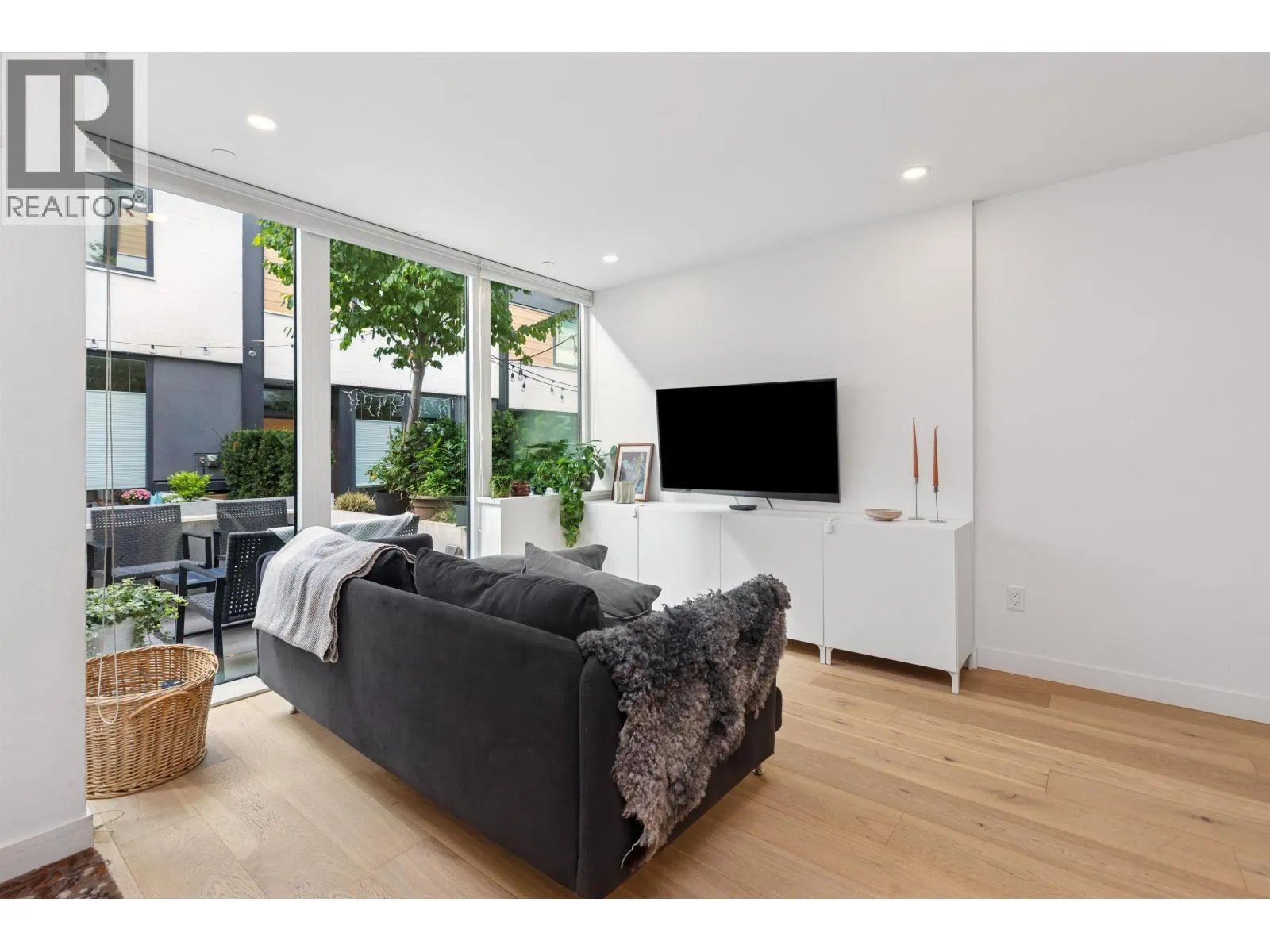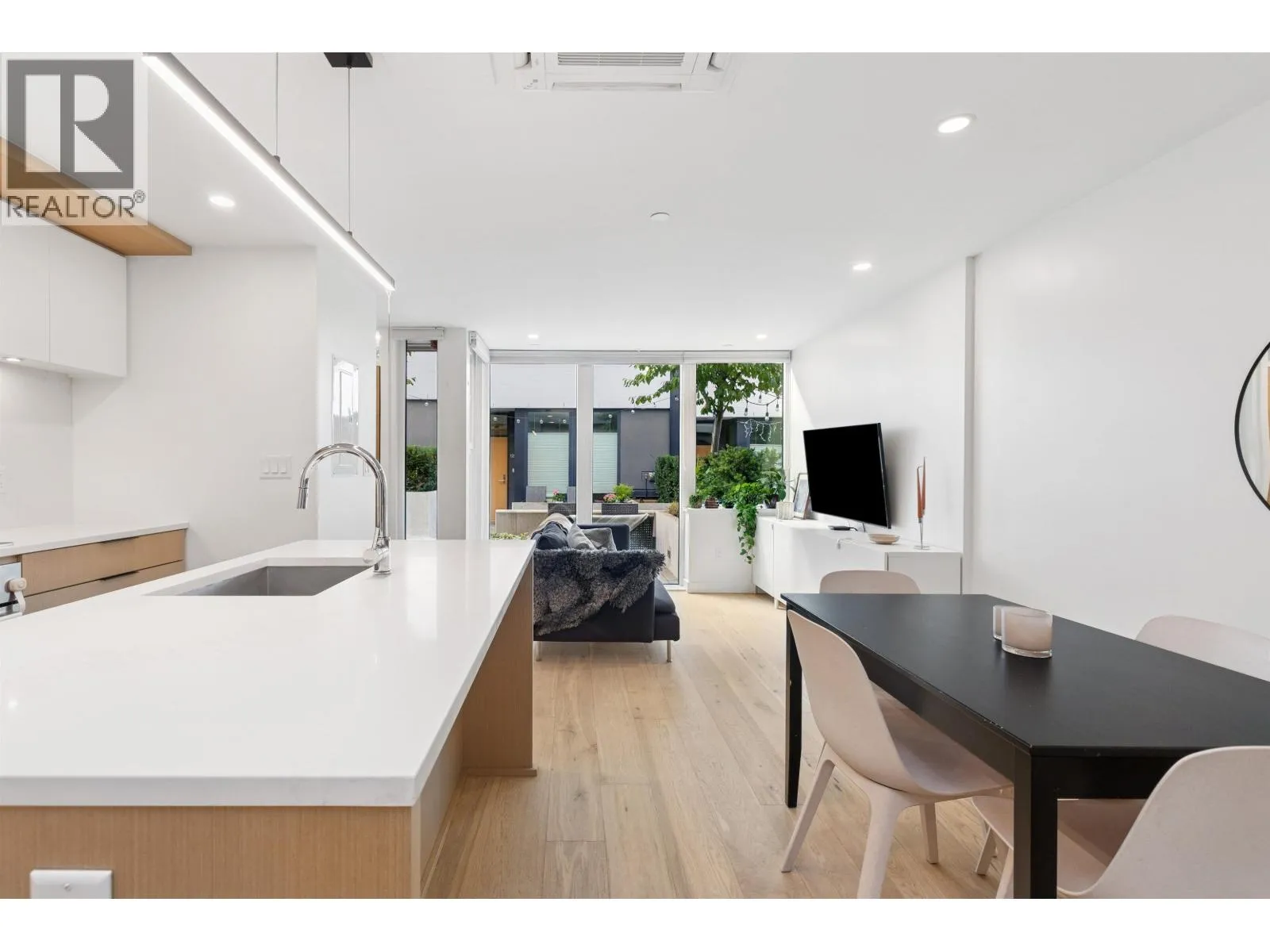 Welcome to The Morrison - boutique West Coast living at its finest! This garden-level 1 bed+ den shines with two expansive patios (230+ sq. ft.) including natural gas hookups, perfect for entertaining or relaxing outdoors. Inside, enjoy a luxury kitchen with Bosch appliances, quartz island with countertops, and custom cabinetry, all flowing into a bright open-plan living space with floor-to-ceiling windows. Wide-plank oak floors, radiant in-floor heating, upgraded dual zone Air Conditioning throughout highlight the home's high-end quality. The oversized den with sliding doors easily doubles as a 2nd bedroom or office. Steps to Moodyville Park, Spirit Trail, and all the Lower Lonsdale amenities. Don't miss this incredible garden level property! (id:27476)
