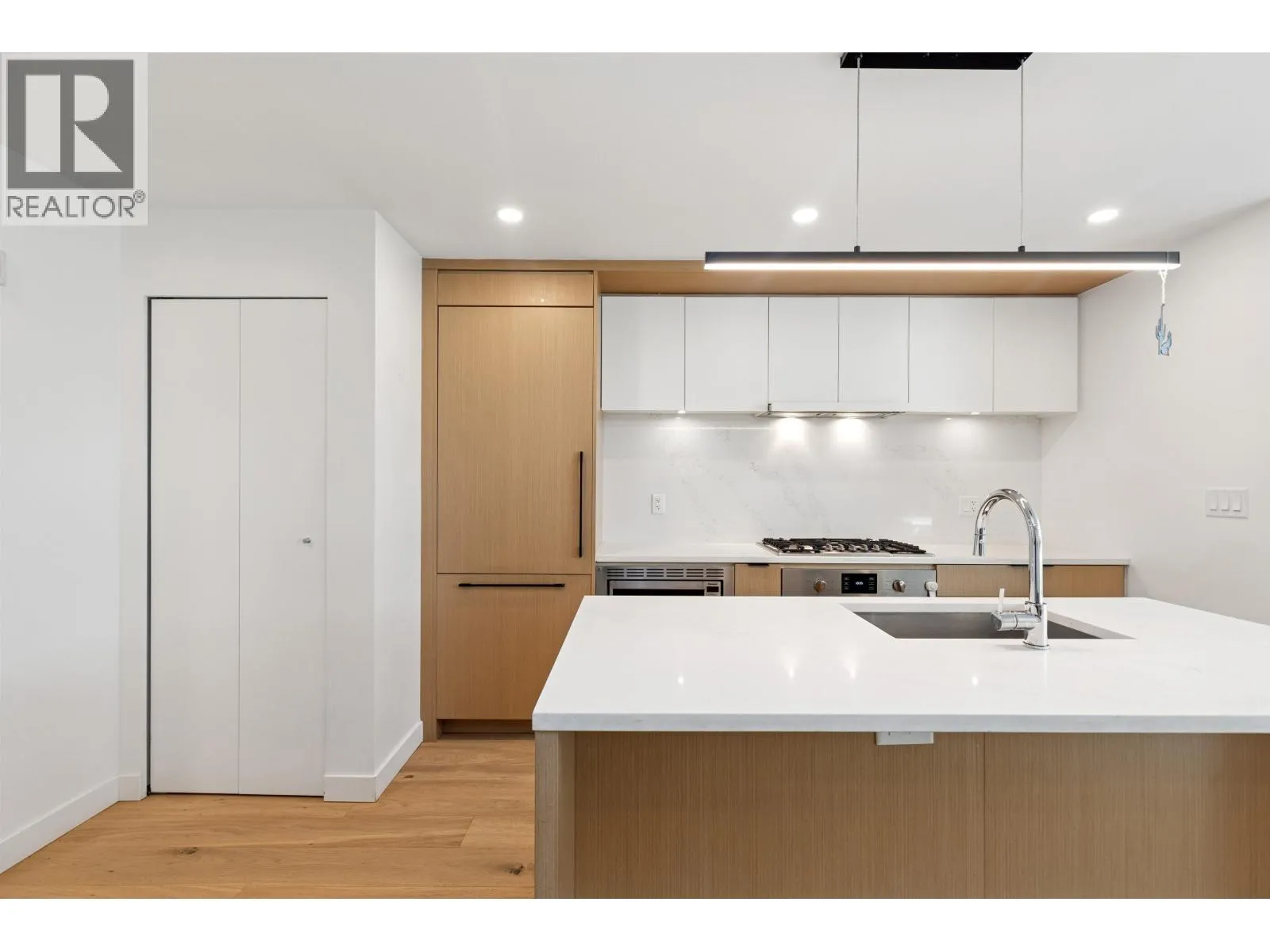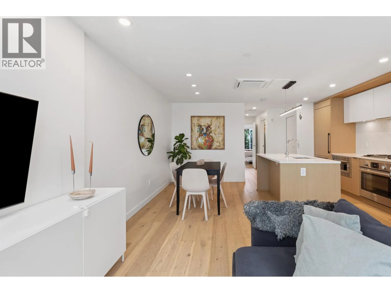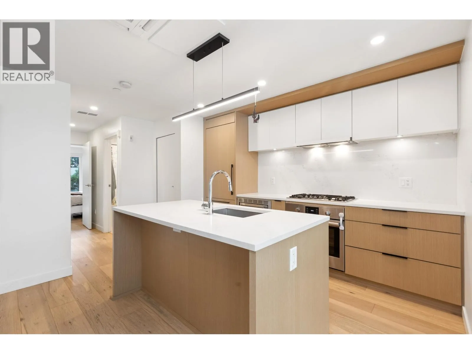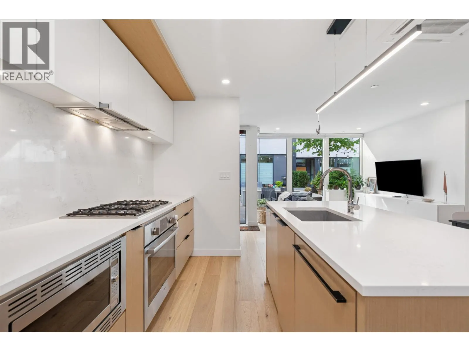 Welcome to The Morrison - boutique West Coast living at its finest! This garden-level 1 bed+ den shines with two expansive patios (230+ sq. ft.) including natural gas hookups, perfect for entertaining or relaxing outdoors. Inside, enjoy a luxury kitchen with Bosch appliances, quartz island with countertops, and custom cabinetry, all flowing into a bright open-plan living space with floor-to-ceiling windows. Wide-plank oak floors, radiant in-floor heating, upgraded dual zone Air Conditioning throughout highlight the home's high-end quality. The oversized den with sliding doors easily doubles as a 2nd bedroom or office. Steps to Moodyville Park, Spirit Trail, and all the Lower Lonsdale amenities. Don't miss this incredible garden level property! (id:27476)