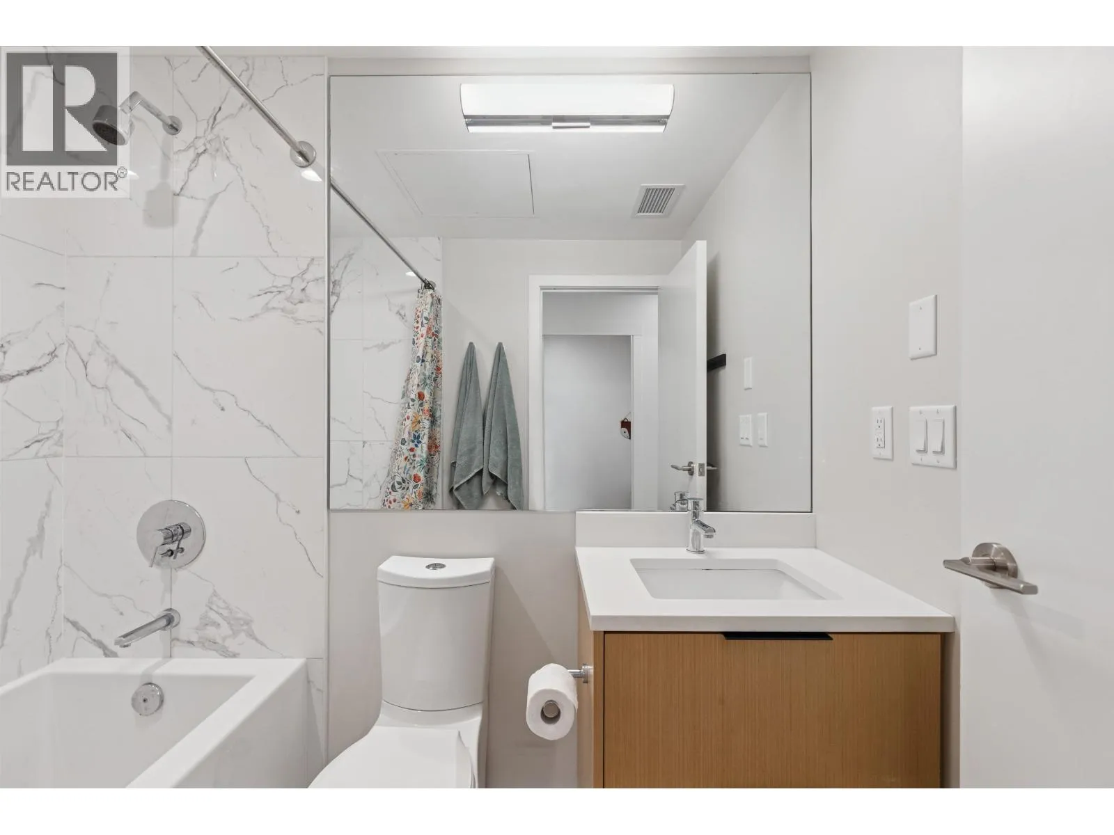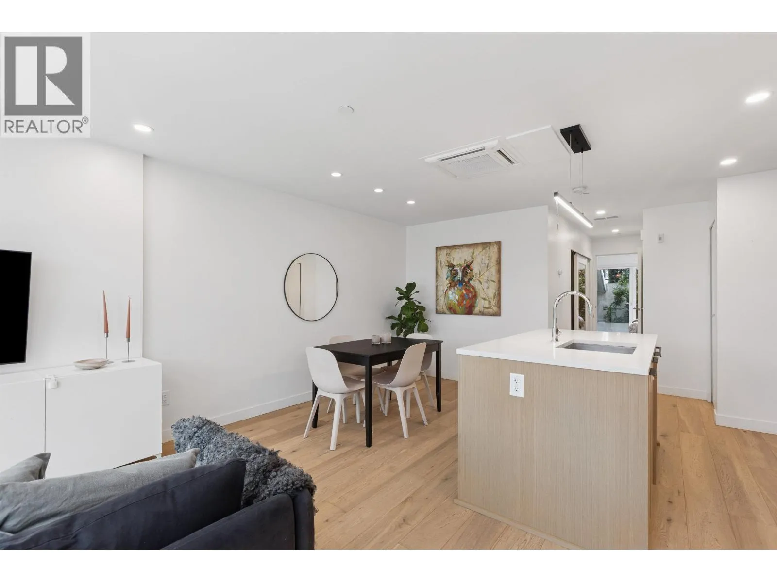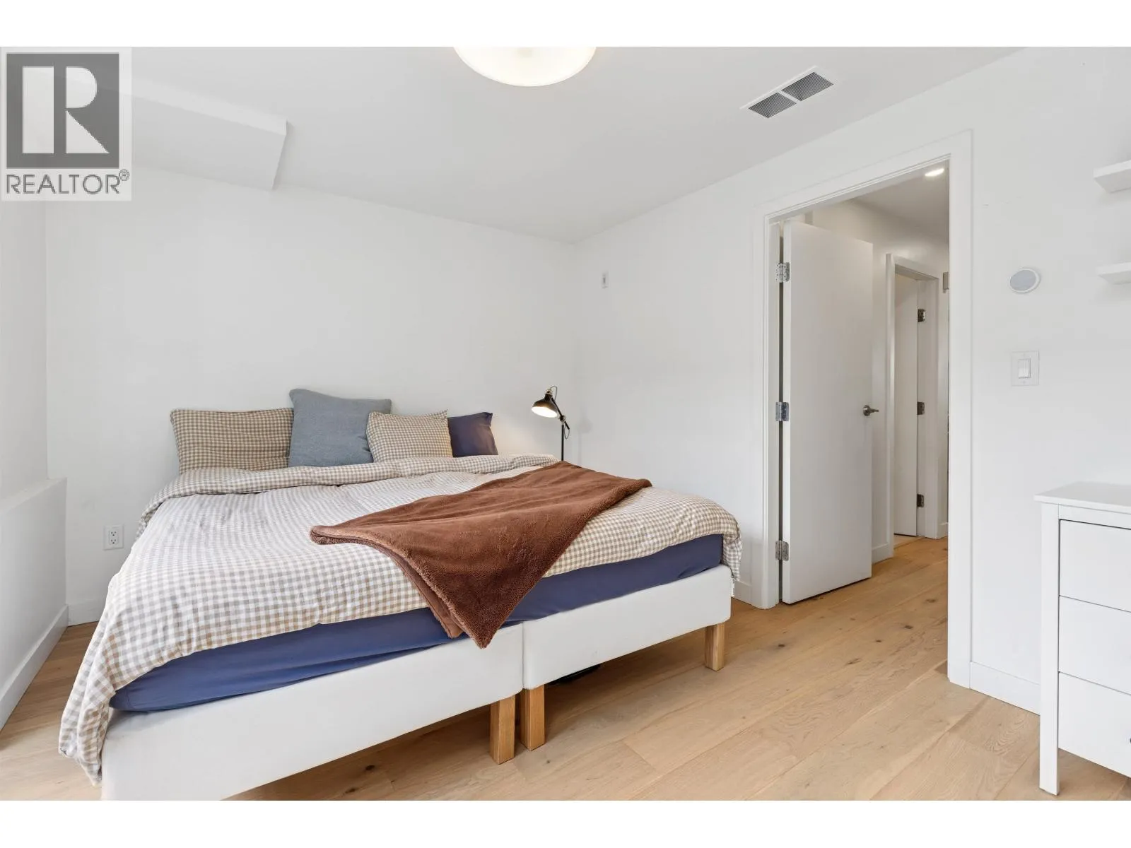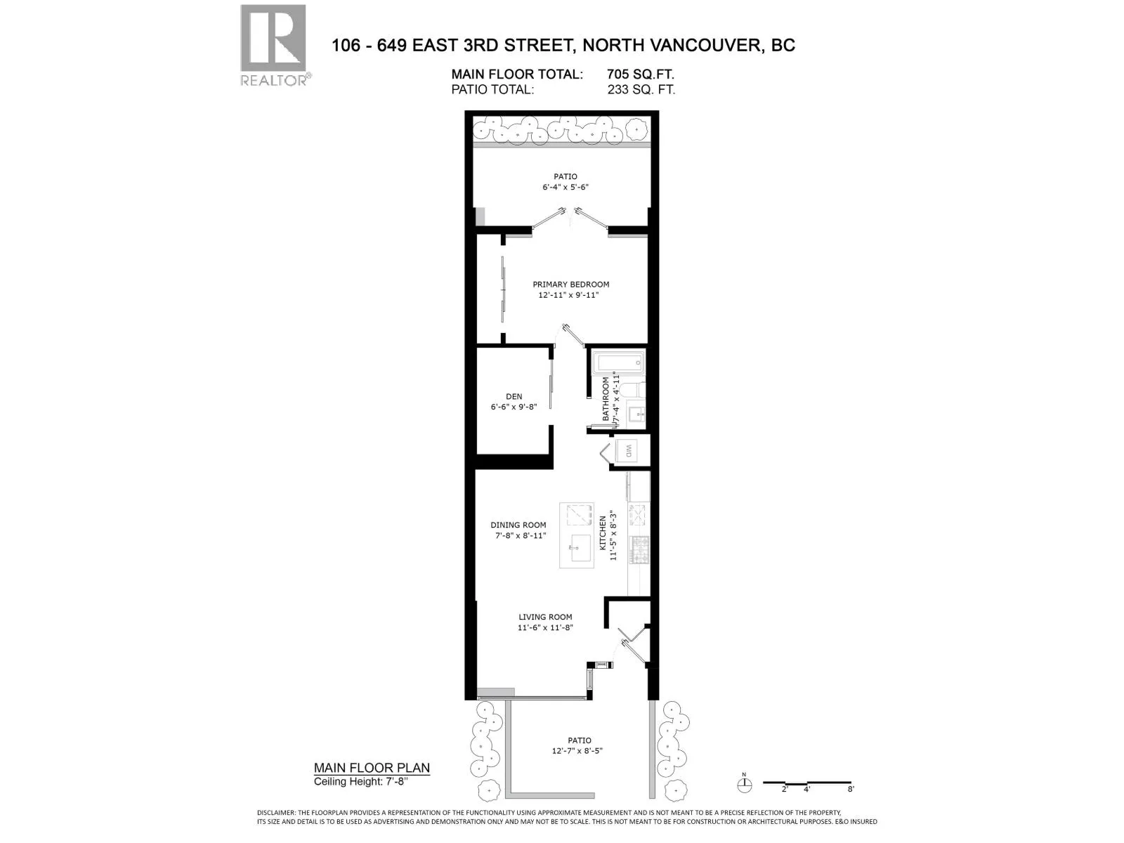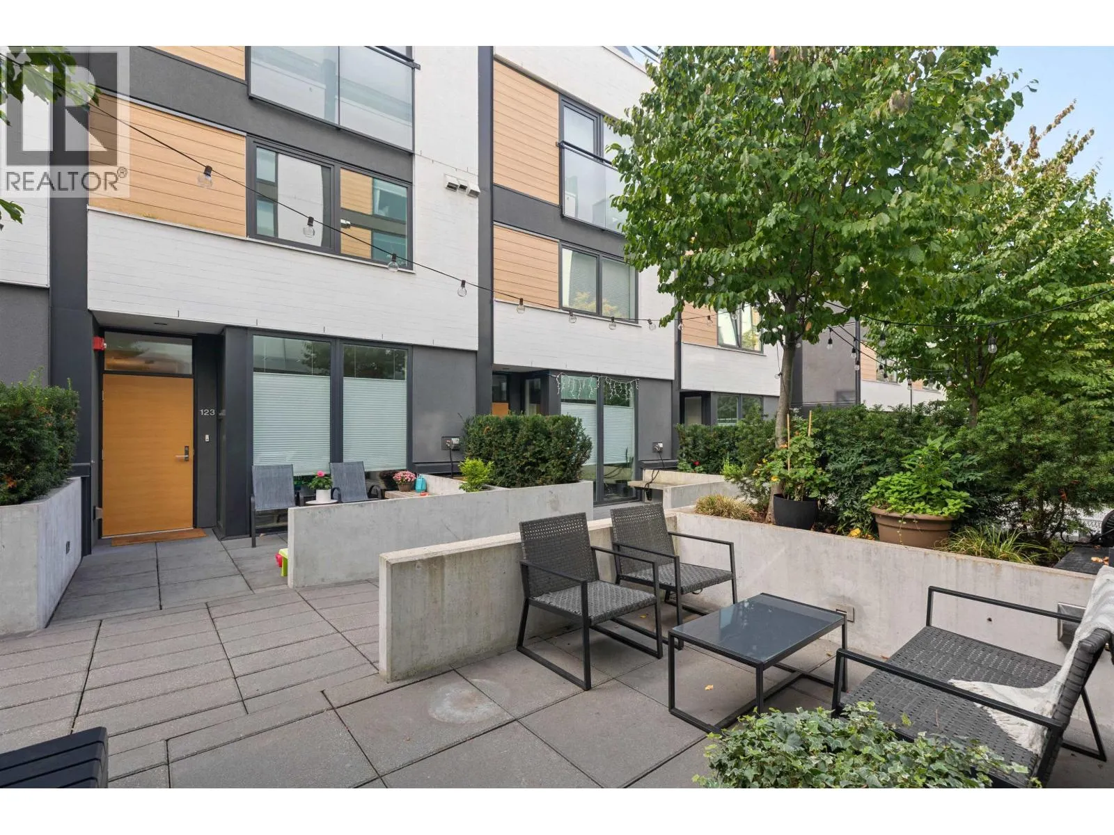 Welcome to The Morrison - boutique West Coast living at its finest! This garden-level 1 bed+ den shines with two expansive patios (230+ sq. ft.) including natural gas hookups, perfect for entertaining or relaxing outdoors. Inside, enjoy a luxury kitchen with Bosch appliances, quartz island with countertops, and custom cabinetry, all flowing into a bright open-plan living space with floor-to-ceiling windows. Wide-plank oak floors, radiant in-floor heating, upgraded dual zone Air Conditioning throughout highlight the home's high-end quality. The oversized den with sliding doors easily doubles as a 2nd bedroom or office. Steps to Moodyville Park, Spirit Trail, and all the Lower Lonsdale amenities. Don't miss this incredible garden level property! (id:27476)
