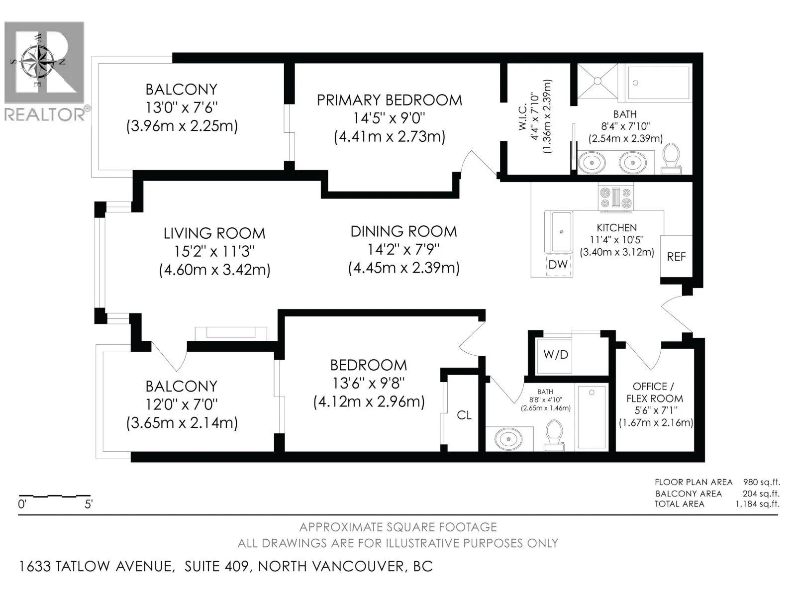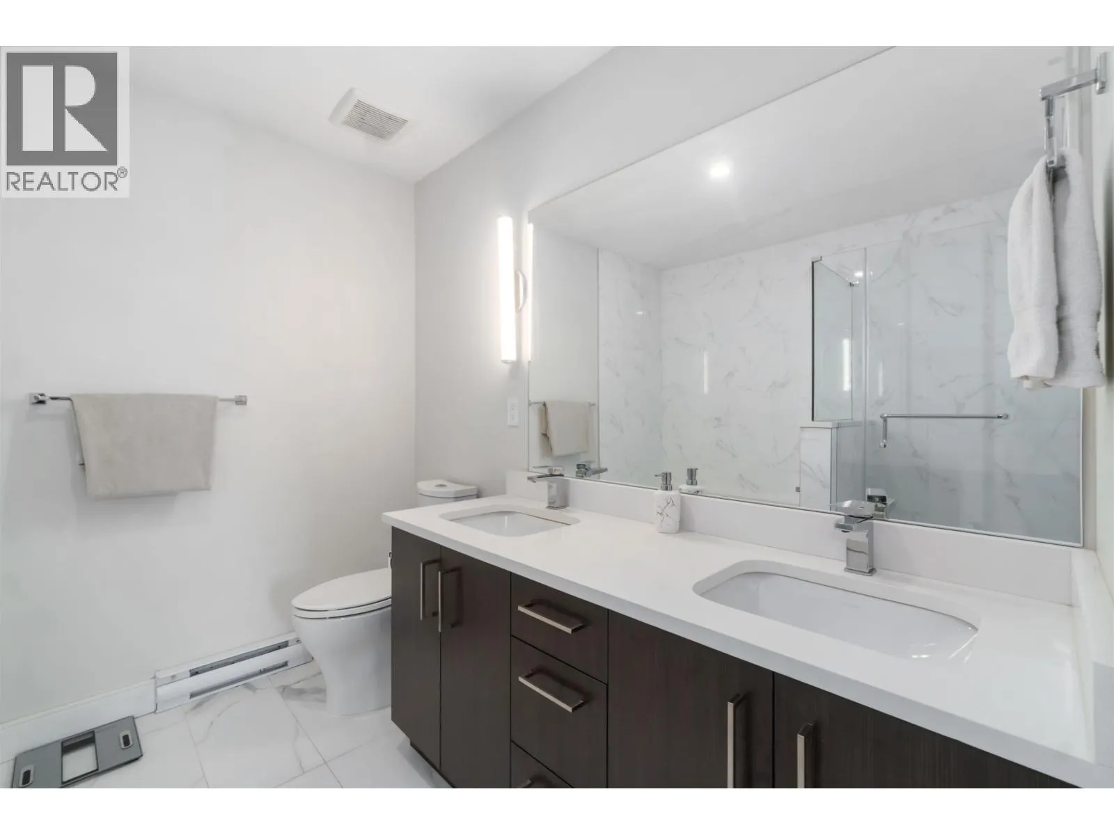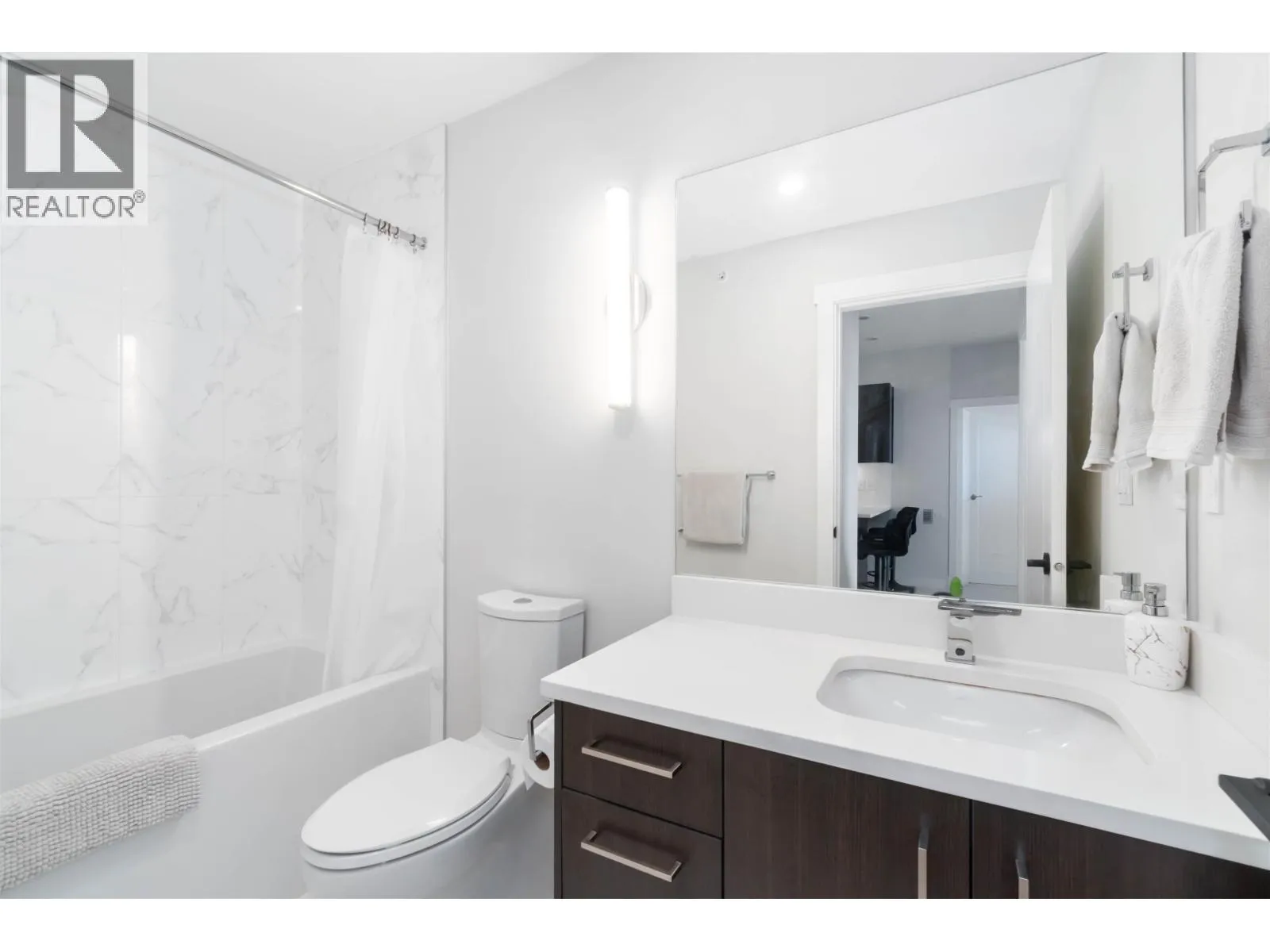 Tatlow Homes! Don't miss this PENTHOUSE beautifully designed 2 bed + large den, 2 bath in Lion's Gate Village area. This spacious home is appointed with laminate flooring, quartz counters, full-sized stainless appliances, and roller shades. Enjoy natural light streaming through large bay windows & step out onto one of TWO private balconies taking in views of Downtown Vancouver. The large primary bedroom features a walk-through closet & an en-suite with a tub, frameless glass shower, & dual-vanity countertop. This home even has a perfect office-sized den for a work from home setup. The building features guest parking, a gym, and a lobby lounge. Located near Park Royal, Ambleside Beach, & Lions Gate Village. 1 parking + 1 locker included! (id:27476)