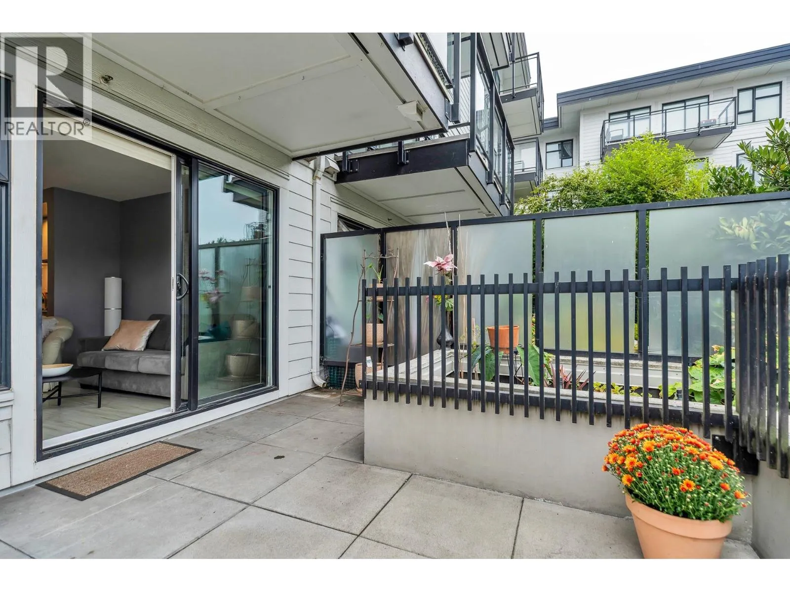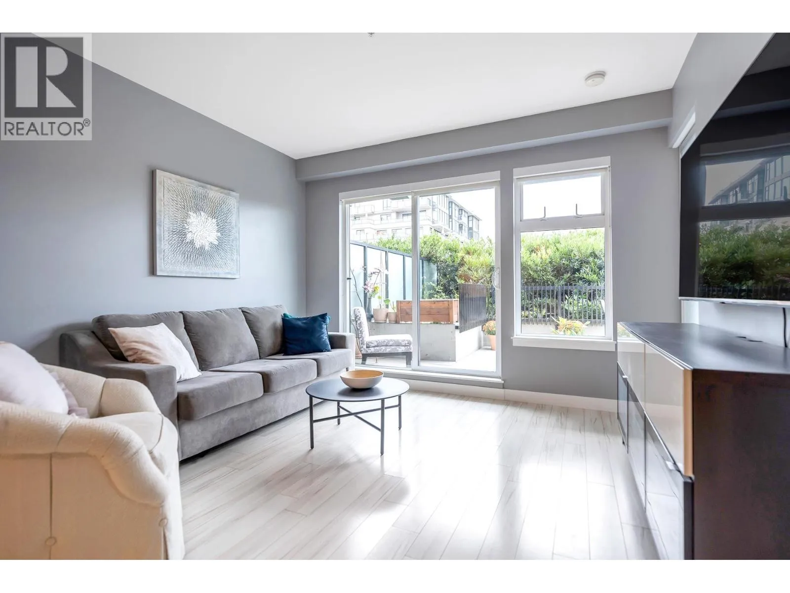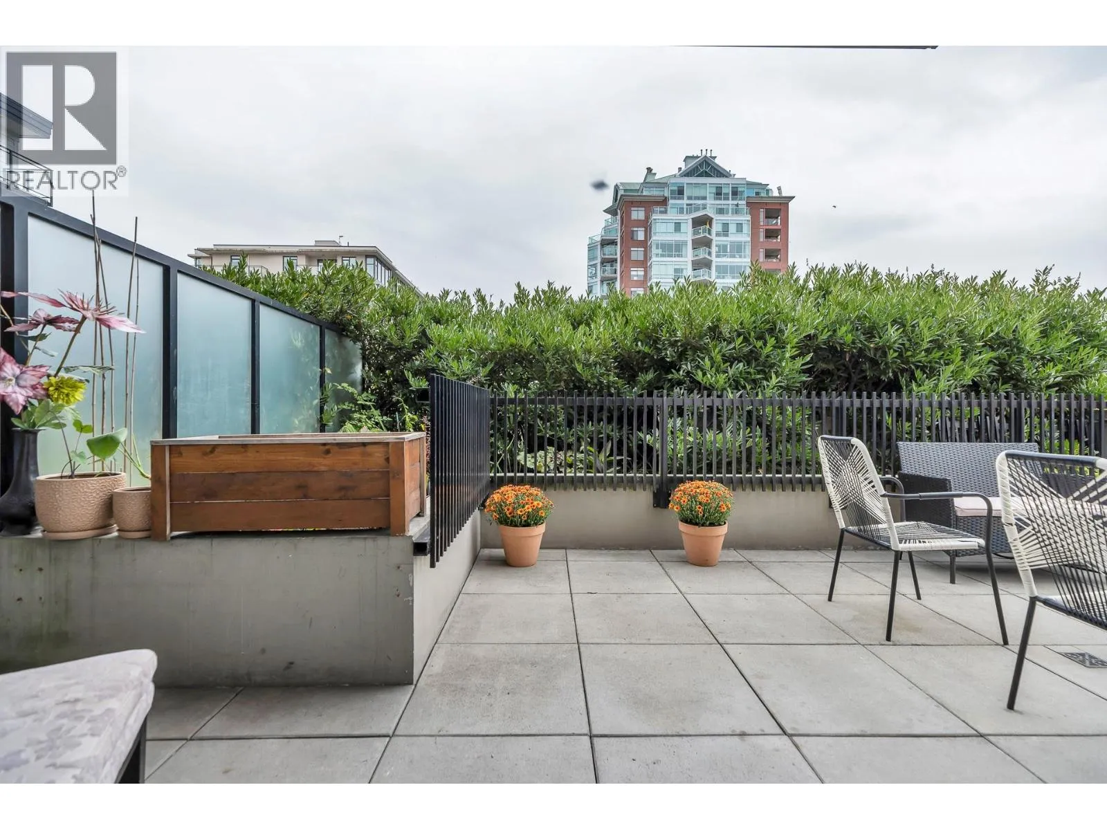 Live in the heart of Lower Lonsdale-just steps from The Shipyards, SeaBus, boutique shops, dining, and all the energy of the waterfront. This bright, open-concept 2-bedroom, 2-bath home features radiant in-floor heating and a modern kitchen with quartz countertops and stainless steel appliances. Enjoy an oversized 216 square ft private patio, perfect for entertaining, relaxing, or gardening. Pets and rentals are welcome, offering great flexibility for both homeowners and investors. Includes one parking stall and a storage locker. Enjoy effortless access to transit, parks, and the vibrant Lower Lonsdale lifestyle-just minutes to the water. (id:27476)