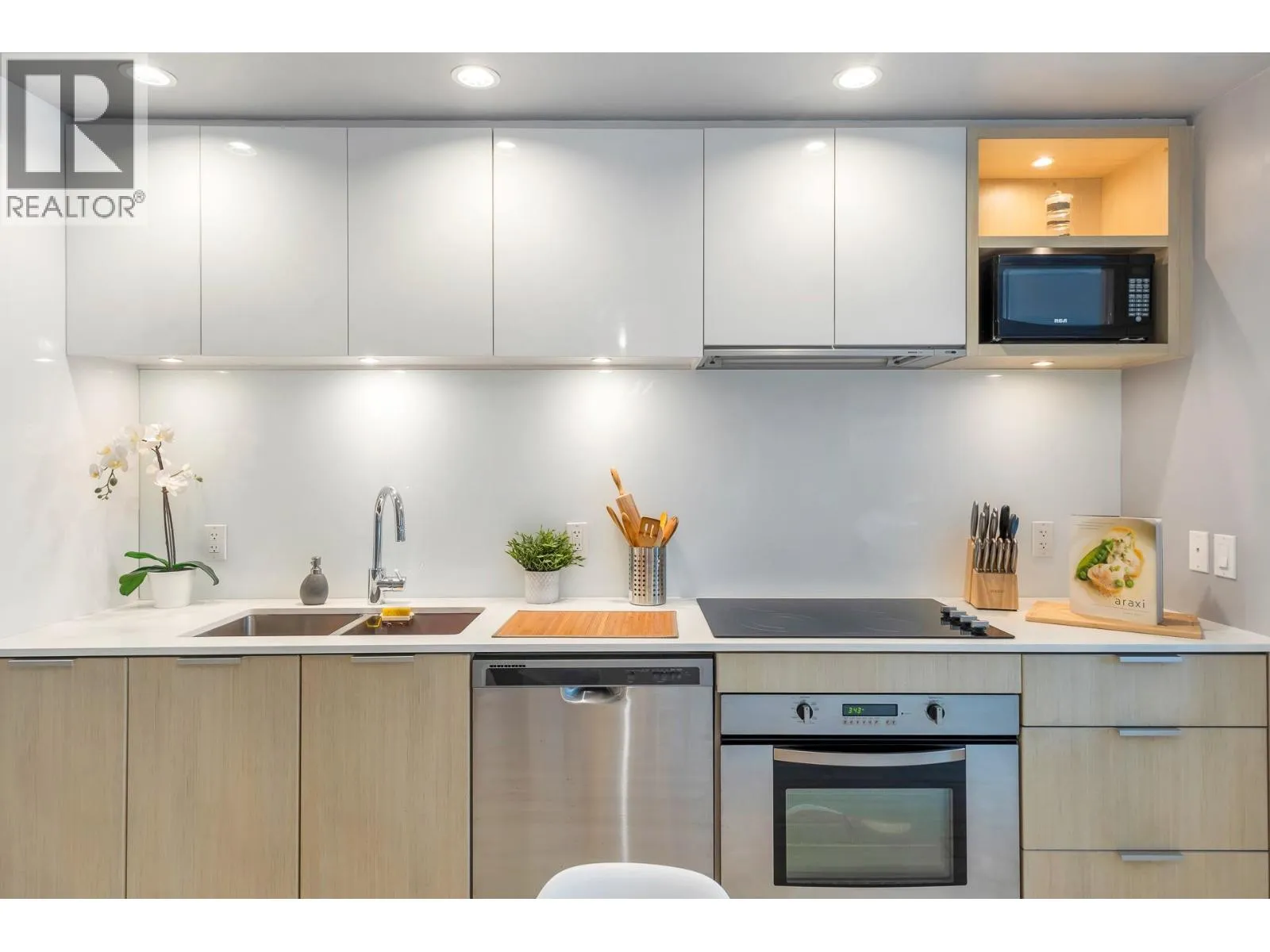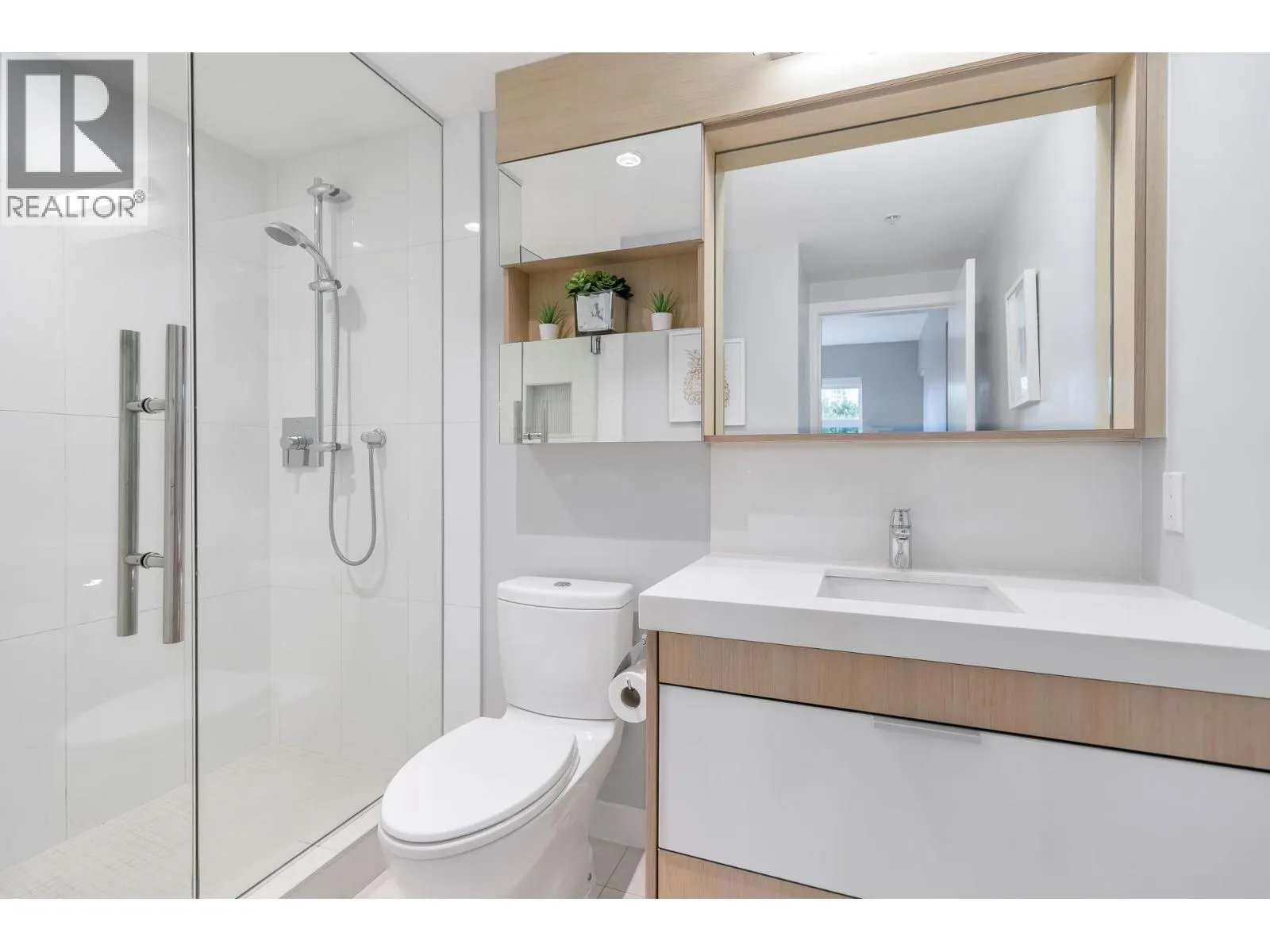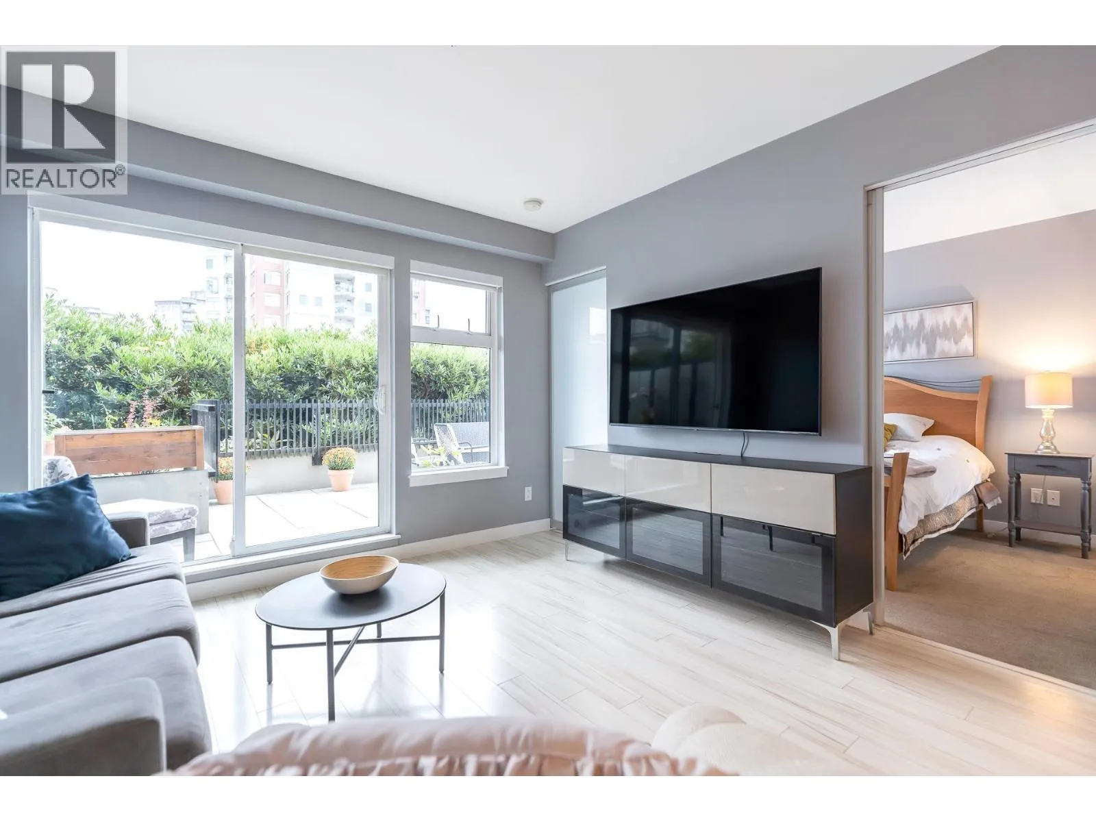 Live in the heart of Lower Lonsdale-just steps from The Shipyards, SeaBus, boutique shops, dining, and all the energy of the waterfront. This bright, open-concept 2-bedroom, 2-bath home features radiant in-floor heating and a modern kitchen with quartz countertops and stainless steel appliances. Enjoy an oversized 216 square ft private patio, perfect for entertaining, relaxing, or gardening. Pets and rentals are welcome, offering great flexibility for both homeowners and investors. Includes one parking stall and a storage locker. Enjoy effortless access to transit, parks, and the vibrant Lower Lonsdale lifestyle-just minutes to the water. (id:27476)