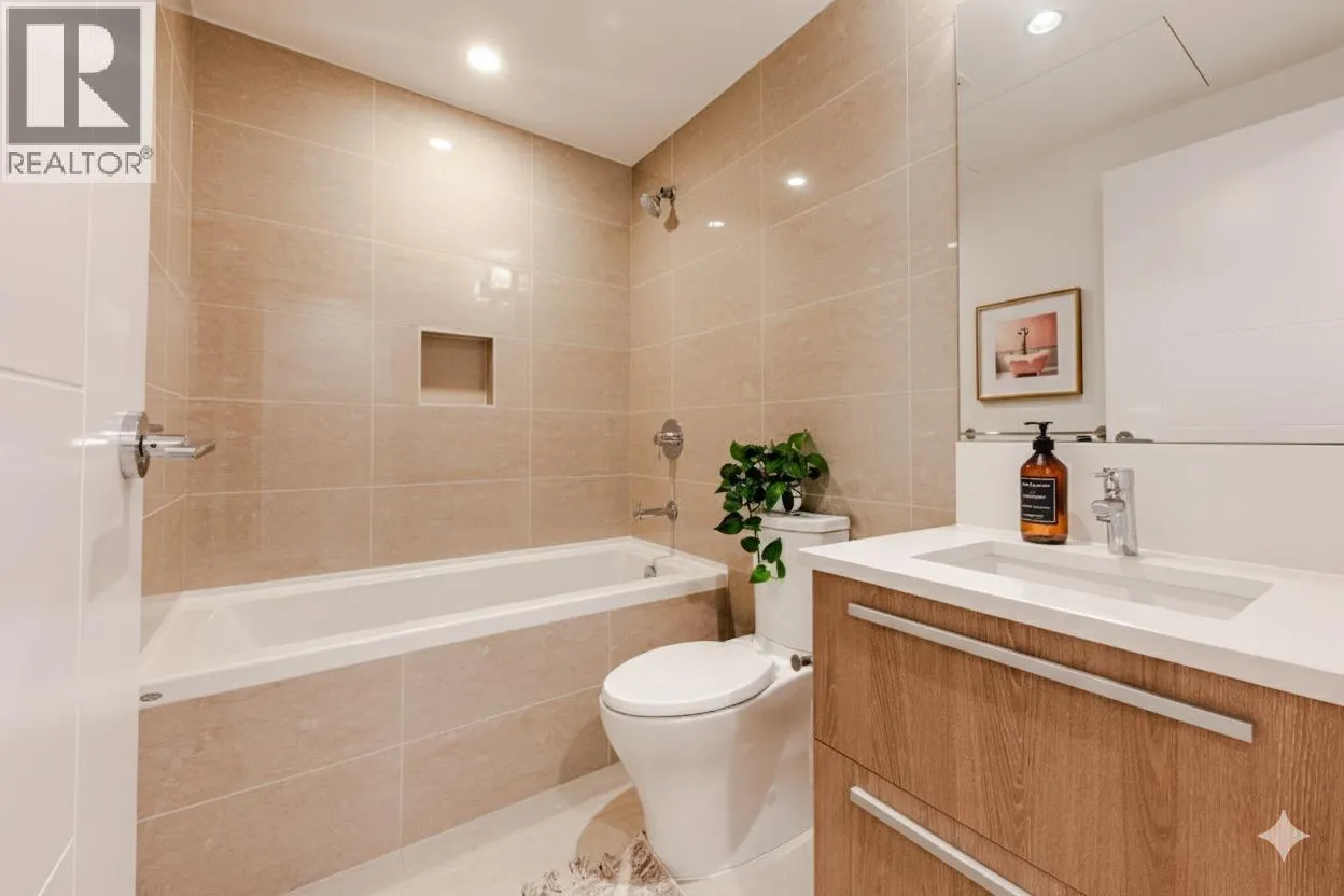 Welcome to The Residences at Lynn Valley by Bosa. This stunning 2 bedroom 2 bathroom corner home offers a bright, open layout with air conditioning, and a gourmet Bosch kitchen with gas cooktop. The master bedroom features a large ensuite spacious walk in shower. Surrounded by XL 392 sq.ft. wrap-around patio, perfect for entertaining or enjoying a private outdoor. conveniency just at your doorstep, steps to Lynn Valley Mall, dining, and world-class trails. Openhouse Sat Nov 15 2-4pm (id:27476)