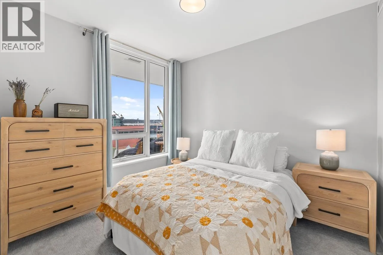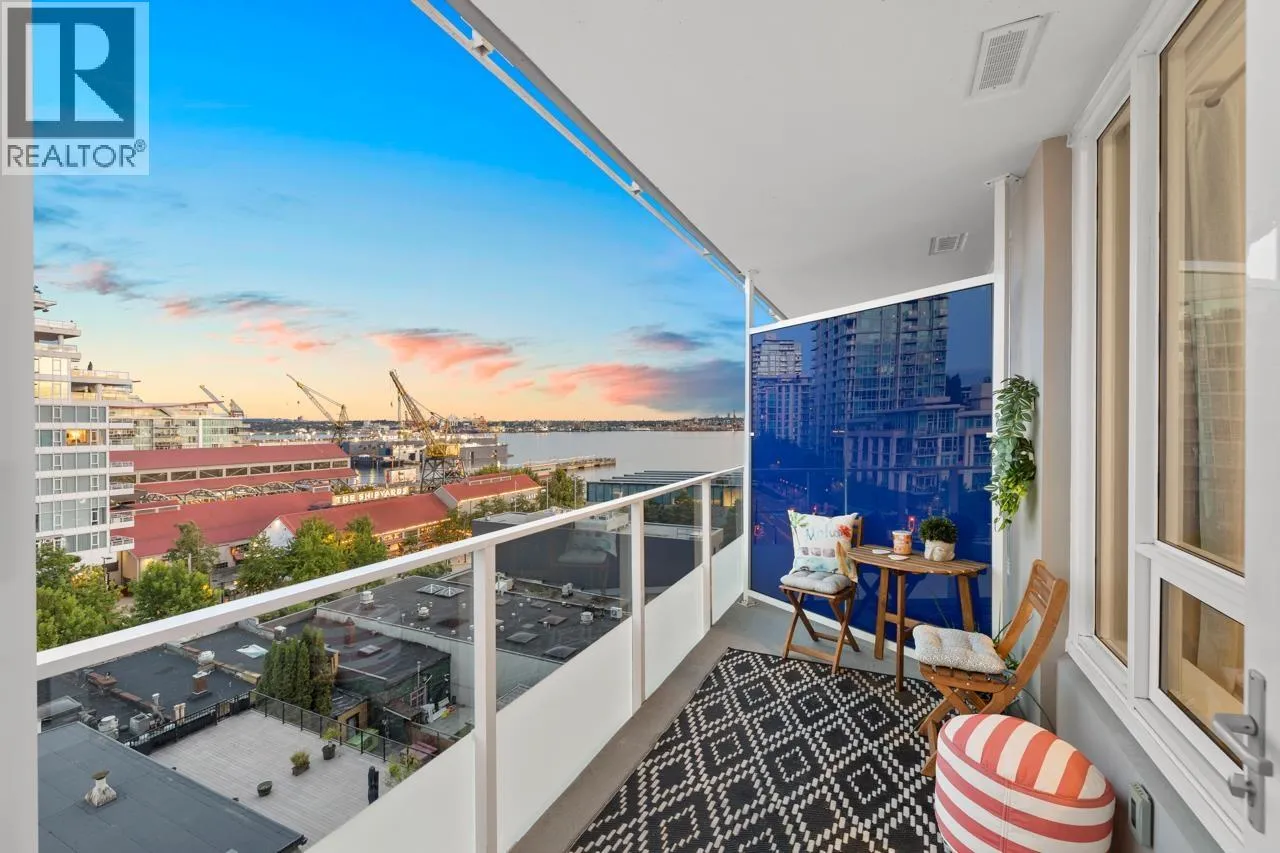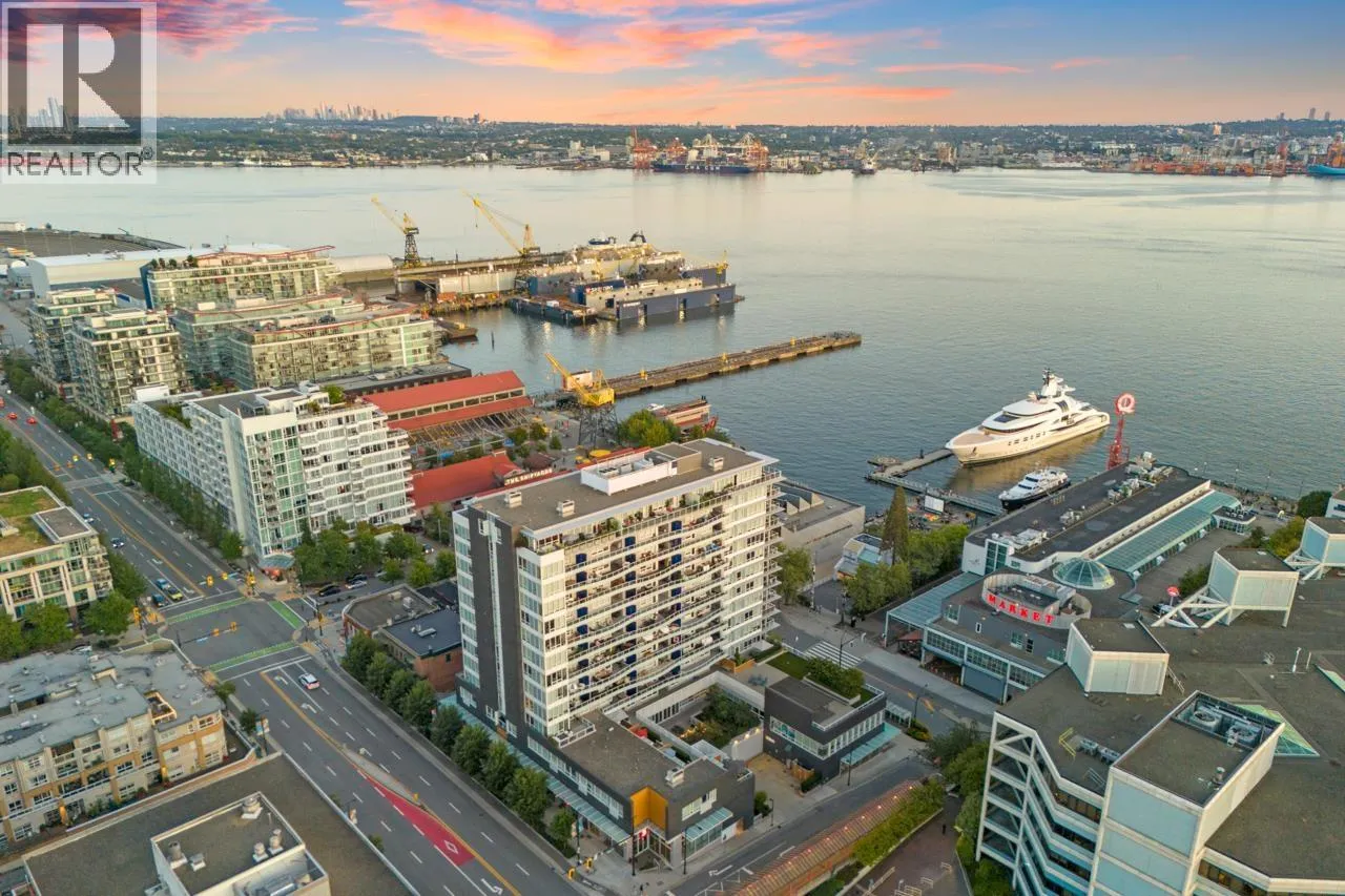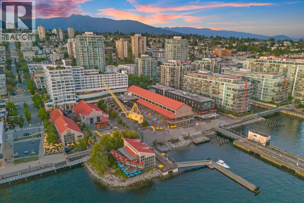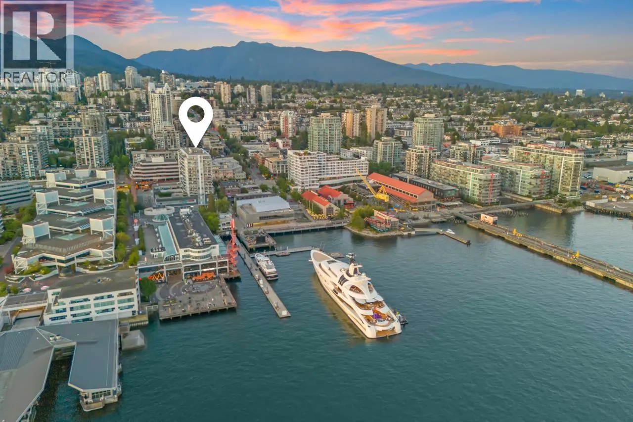 Welcome to this sophisticated 2 bed, 2 bath view home in Promenade at The Quay. This BRIGHT CORNER HOME features PANORAMIC OCEAN, CITY & MOUNTAIN VIEWS and a thoughtfully designed layout with an abundance of natural light. The GOURMET KITCHEN features integrated Bosch appliances, GAST STOVE and a large breakfast bar that opens up the living area, making it perfect for entertaining. The primary suite features a SPA-LIKE ENSUITE and WALK-IN CLOSET. The OVERSIZED COVERED PATIO is ideal for unwinding and enjoying the harbour views. Built by award-winning Polygon, this LUXURY CONCRETE BUILDING is just six years old and features AC, and hotel-like AMENITIES including concierge, gym, party room, outdoor lounge, and a dog wash station. Includes one parking. (id:27476)