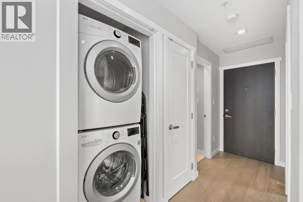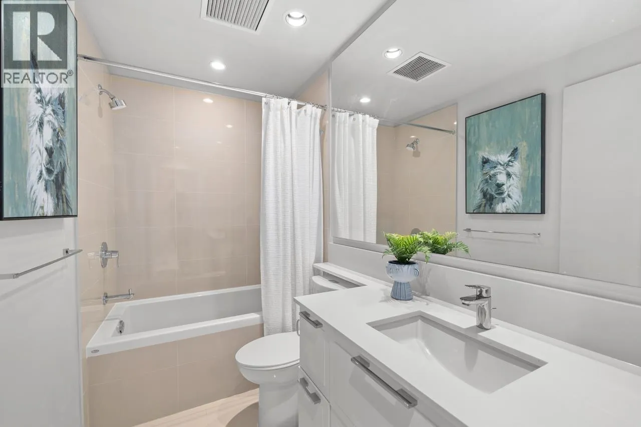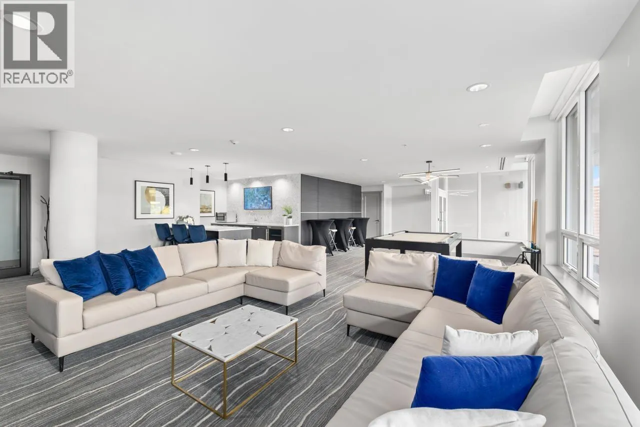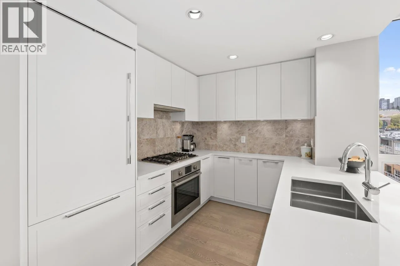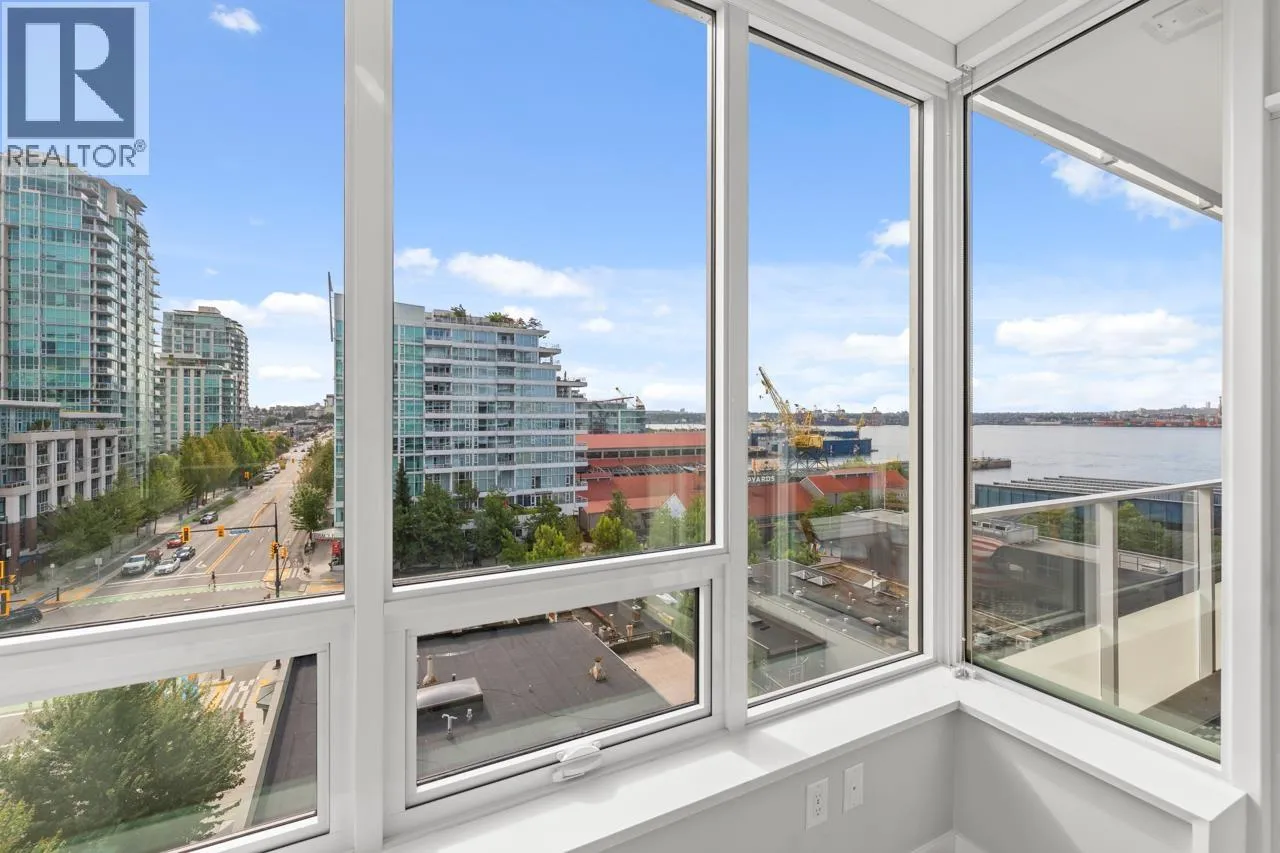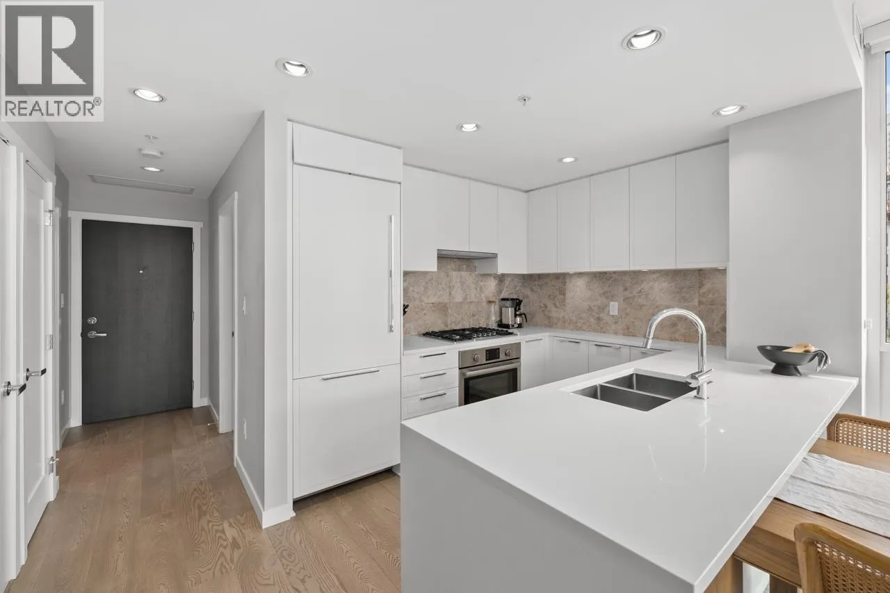 Welcome to this sophisticated 2 bed, 2 bath view home in Promenade at The Quay. This BRIGHT CORNER HOME features PANORAMIC OCEAN, CITY & MOUNTAIN VIEWS and a thoughtfully designed layout with an abundance of natural light. The GOURMET KITCHEN features integrated Bosch appliances, GAST STOVE and a large breakfast bar that opens up the living area, making it perfect for entertaining. The primary suite features a SPA-LIKE ENSUITE and WALK-IN CLOSET. The OVERSIZED COVERED PATIO is ideal for unwinding and enjoying the harbour views. Built by award-winning Polygon, this LUXURY CONCRETE BUILDING is just six years old and features AC, and hotel-like AMENITIES including concierge, gym, party room, outdoor lounge, and a dog wash station. Includes one parking. (id:27476)