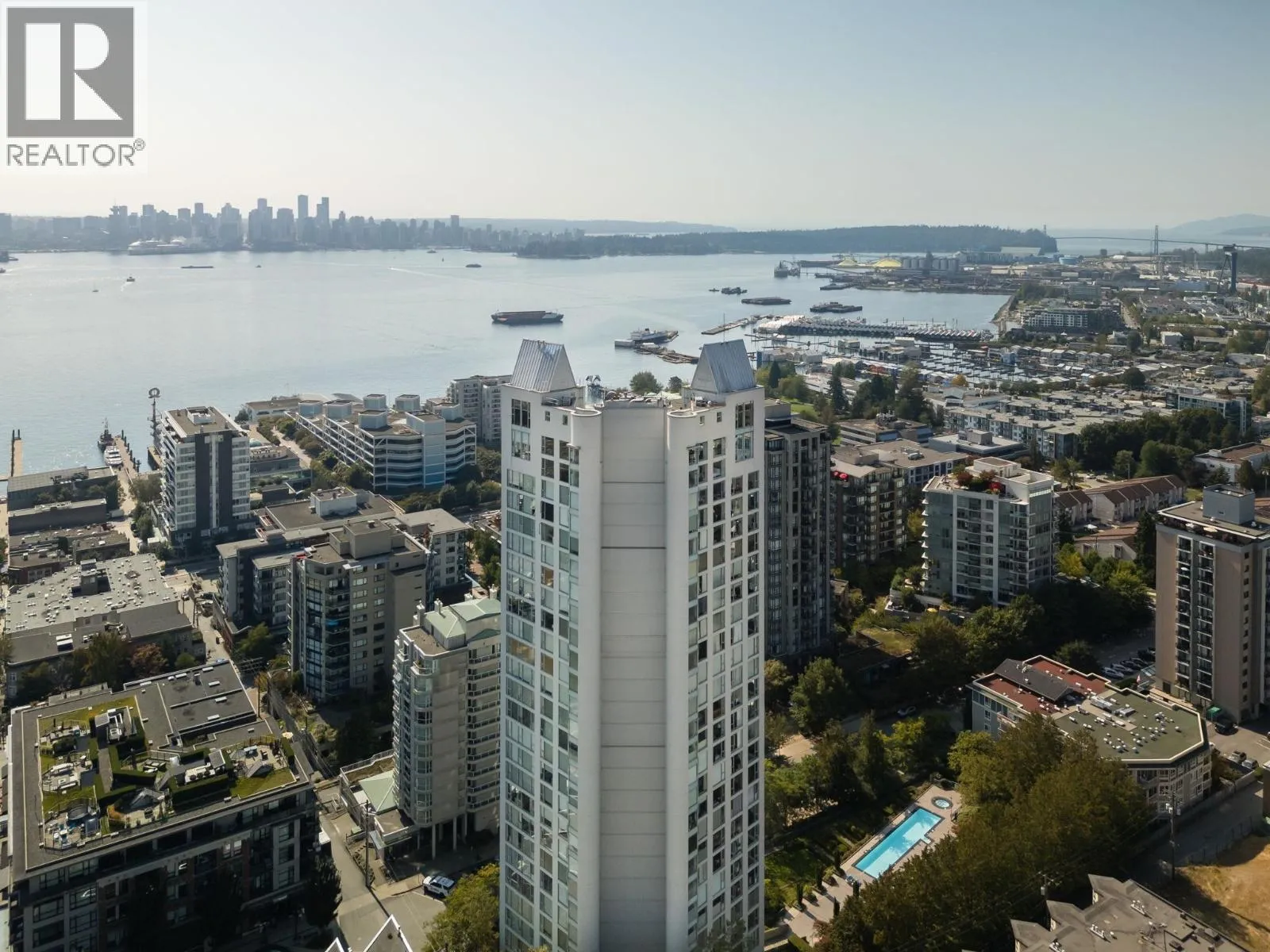 At nearly 1,200 sqft, this elegant 2 bdrm / 2 bathroom home stands out in a sea of new-age shoeboxes. Extensively and tastefully renovated with AIR CONDITIONING, it offers panoramic views from Brentwood across Vancouver to the Lions, with stunning winter sunsets over Stanley Park that brighten the season. Enjoy a complete lifestyle with resort-style amenities including a 20m outdoor pool, hot tub, and gardens. Two secure side-by-side parking stalls, storage, shared EV-charging, and reinforced bike storage add everyday convenience. A proactive strata with a strong contingency fund ensures peace of mind. Just a 7-minute walk to the Seabus and steps to shops, cafes, and trails, this home blends space, comfort, and lifestyle in the heart of Lower Lonsdale. (id:27476)
