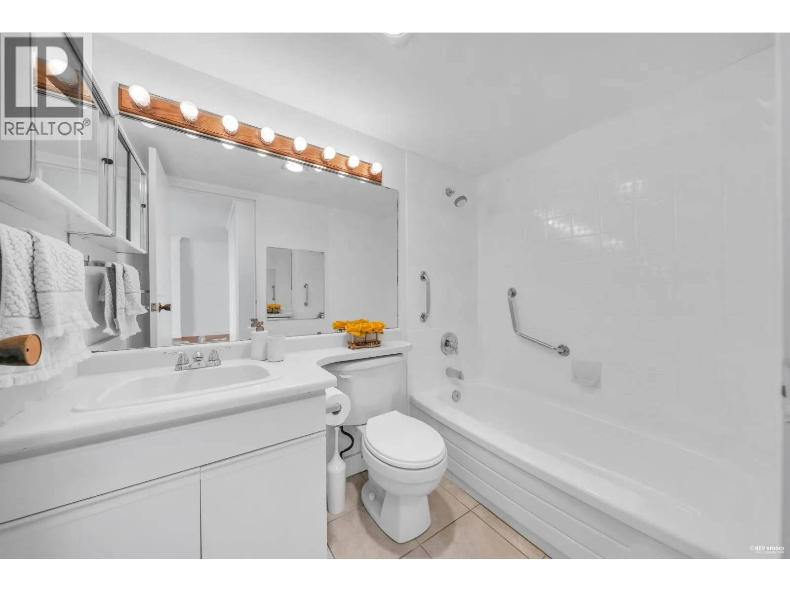 Enjoy unobstructed views of the ocean, Lions Gate Bridge, West Vancouver, English Bay, mountains, and Sentinel Hill from this spacious southwest-facing 18th-floor unit in Woodcroft´s sought-after Lillooet building. This rare one-bedroom offers a bright, functional layout and a 65 square ft enclosed balcony ($35K+ to enclose). Recent updates: fresh paint, new balcony flooring, light fixtures, and hardwood floors. Includes in-suite storage and a separate shelved locker. Amenities: indoor pool, sauna, steam room, gym, game rooms, 24/7 security. No rental restrictions; one cat allowed. One parking spot near elevators. Major building upgrades completed. (id:27476)