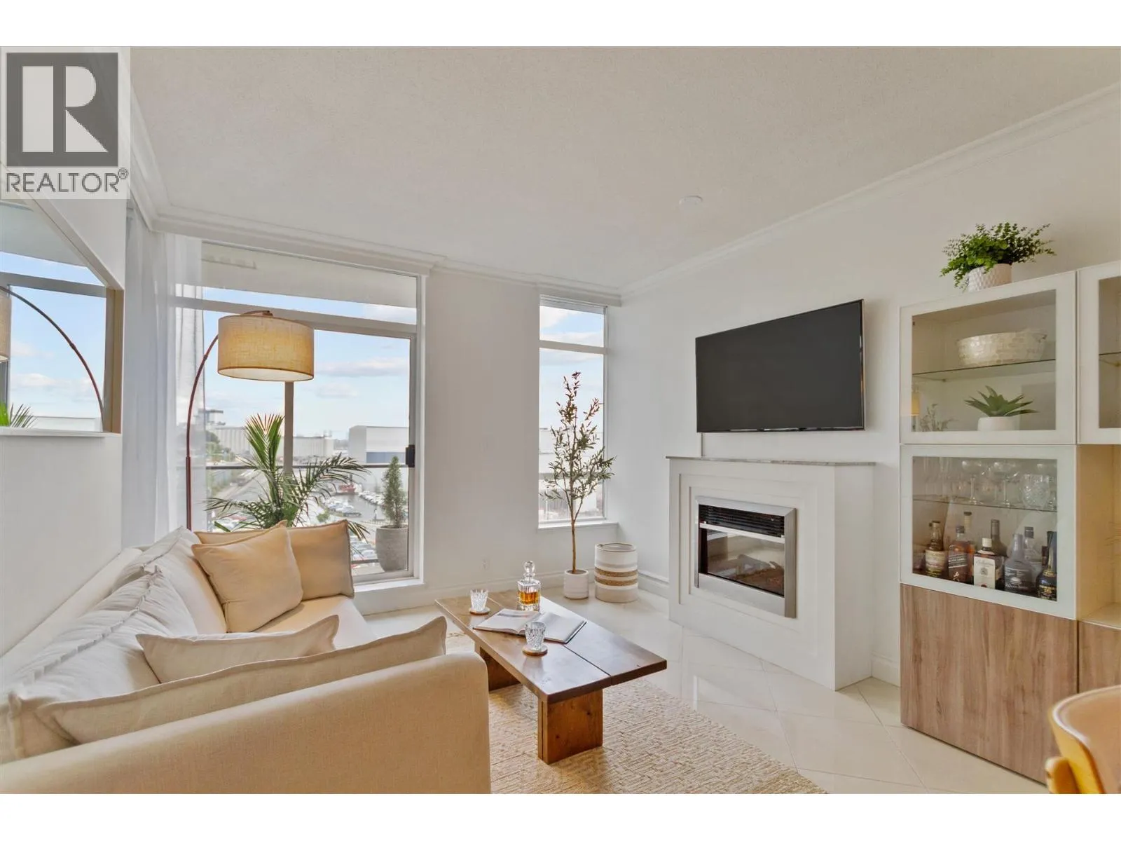Wow - this one is perfect for you! Gorgeous 1 bedroom unit in the heart of sought after Lower Lonsdale. Luxurious finishes such as over-height ceilings, high end appliances, air conditioning, and peek a boo water views! Meticulously maintained, you will love the open concept living/dining areas with cozy fireplace and access to the covered balcony. Kitchen features stainless appliances and nice bar area. Primary bedroom is spacious and bright. Enjoy privileges of the Pinnacle Hotel amenities- pool, hot tub, gym and more! Fantastic location- just steps to restaurants, cafes, shops, seabus, transit and so much more. Experience the LO/LO lifestyle at its finest! Prof. measured by Excelsior at 586 sq.ft. Strata plan reads 52.2 sq. m. All measurements and info to be confirmed by Buyer. (id:27476)