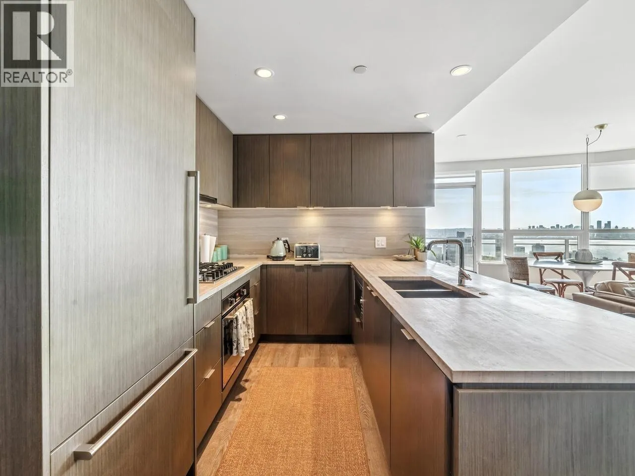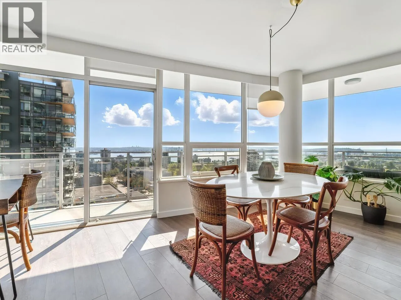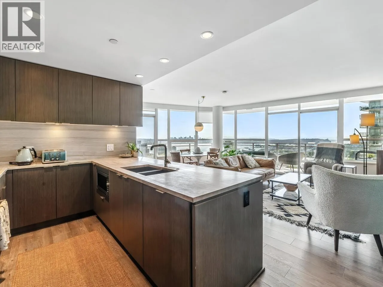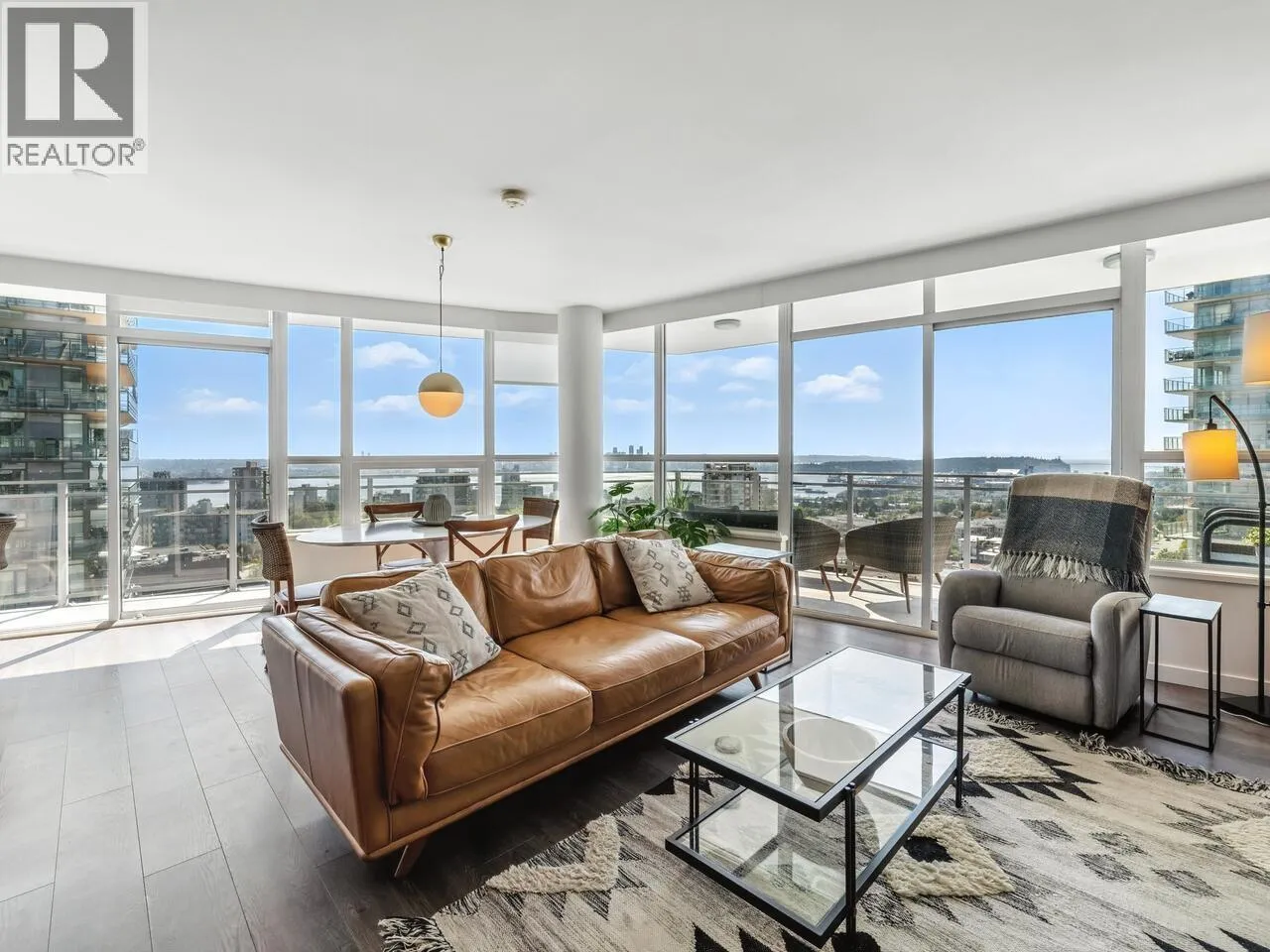 SOUTH-WEST Luxurious 2 Bed/2 Bath plus Den. Breathtaking VIEW to the Ocean, City, Mountains and beyond. The home is elegant, spacious with high ceilings, floor to ceiling windows, wrap around spacious balcony, gourmet kitchen, spa like ensuite with soaker tub, separate shower & dual sinks. Air Conditioned! 2 parking, storage, bike storage and amenities galore. Best location in the center of Lonsdale. (id:27476)