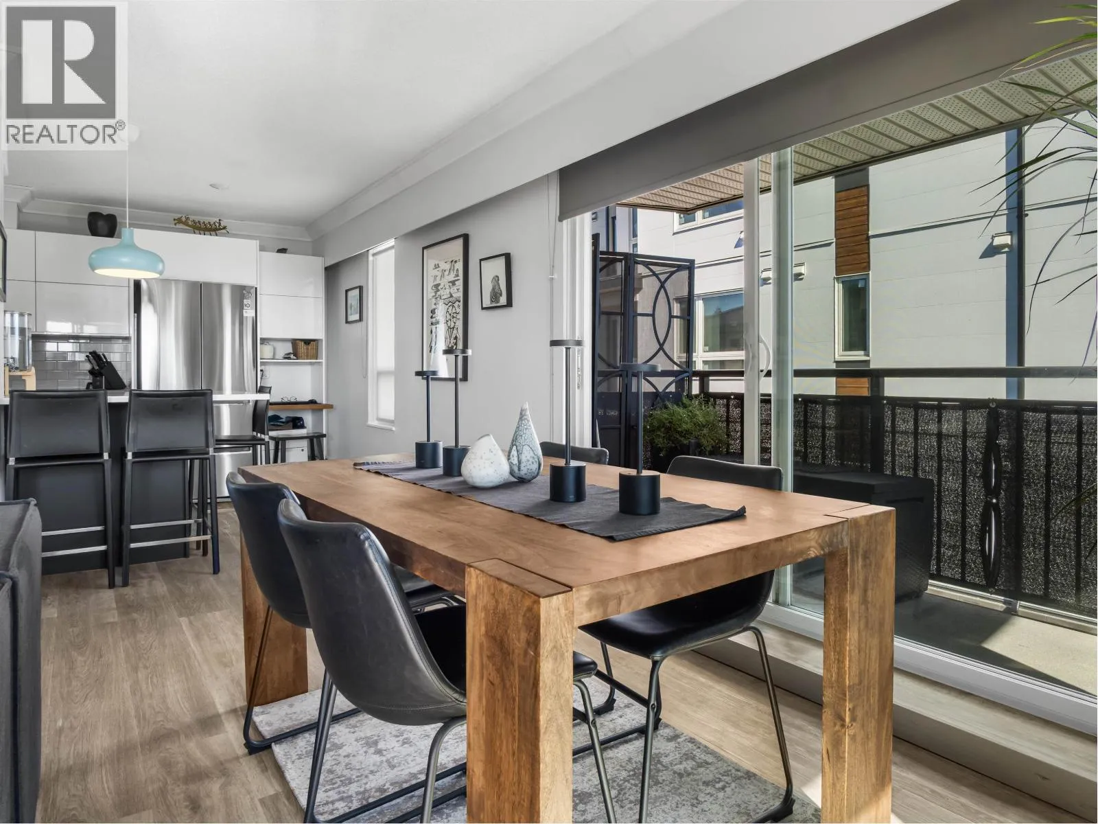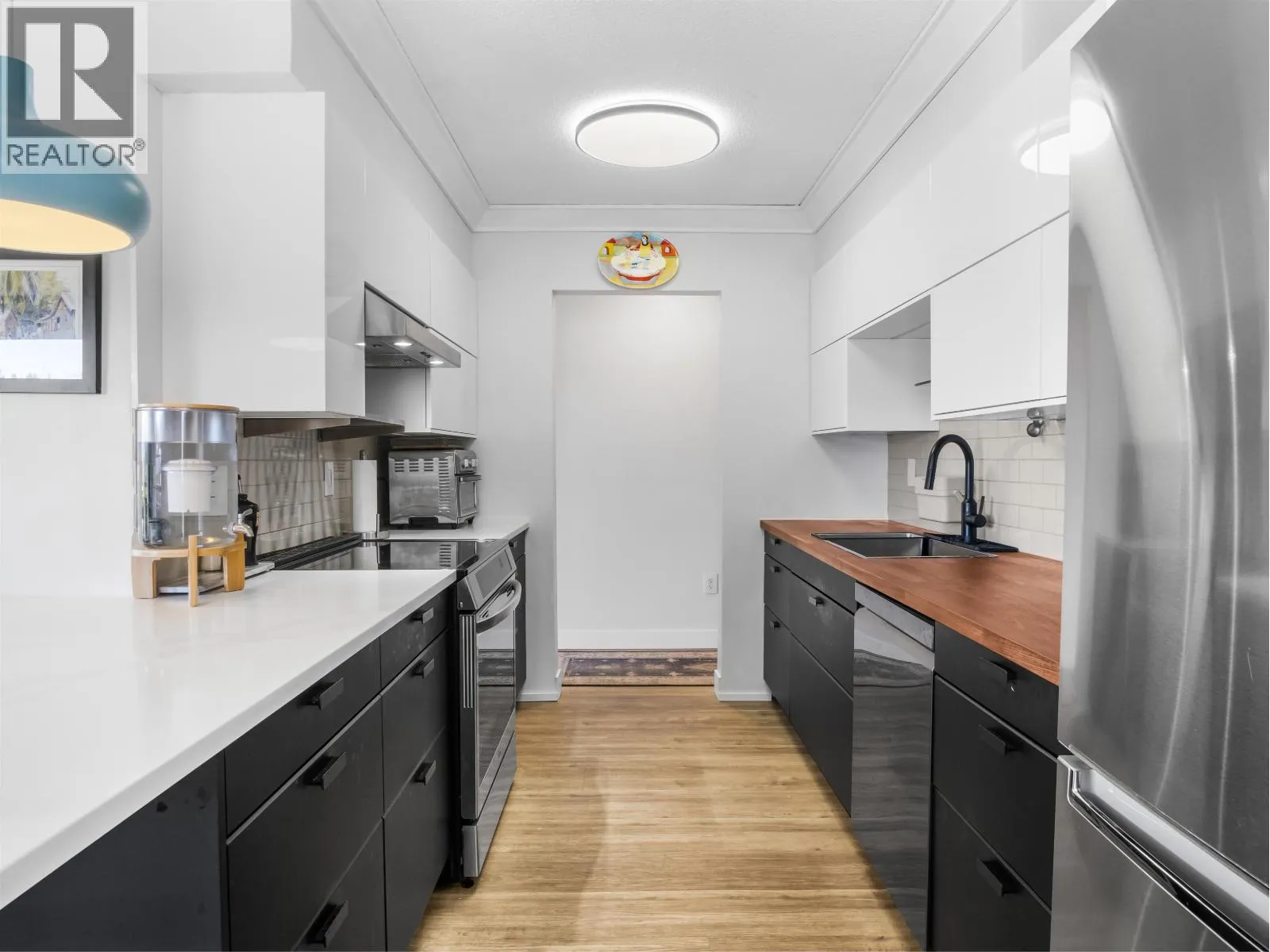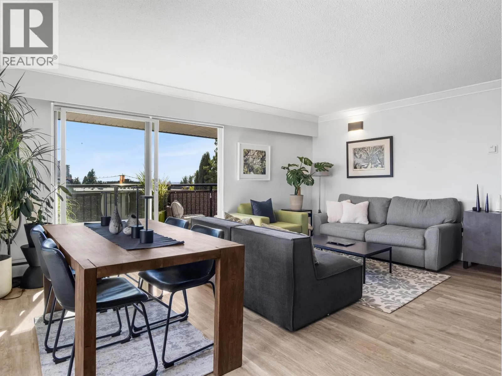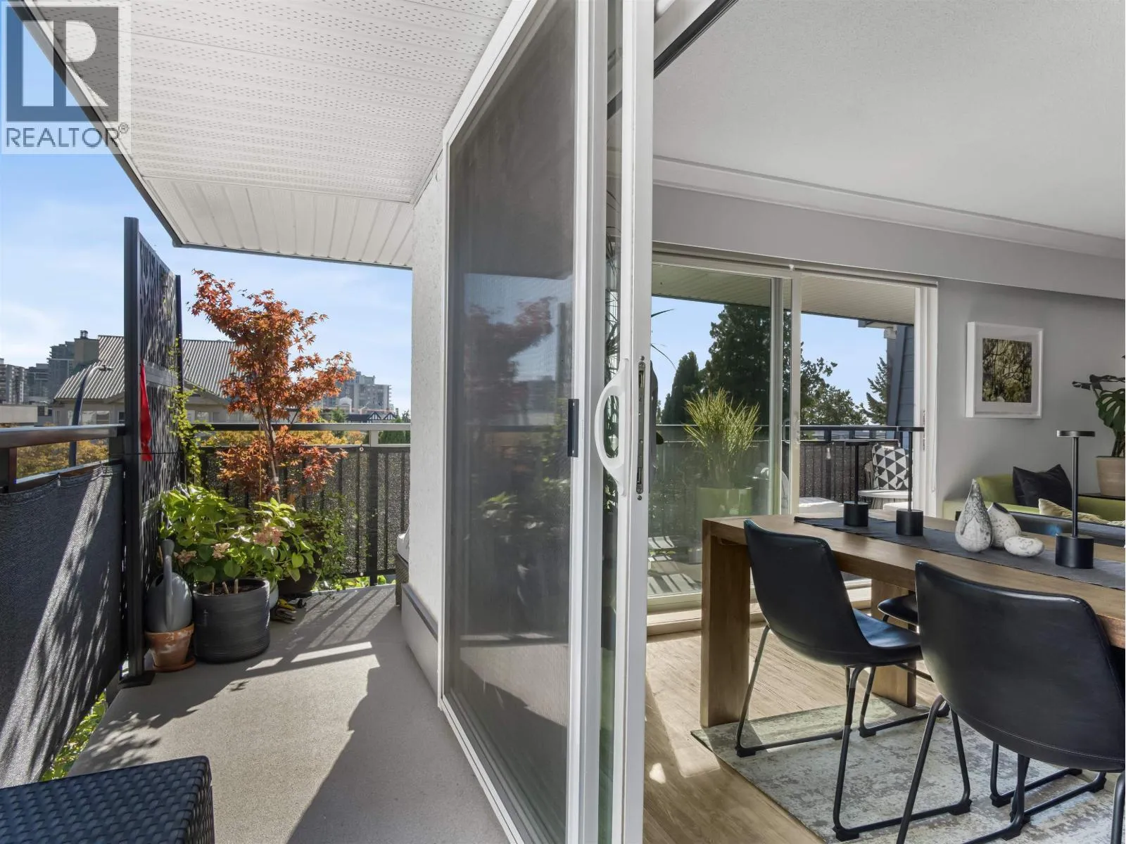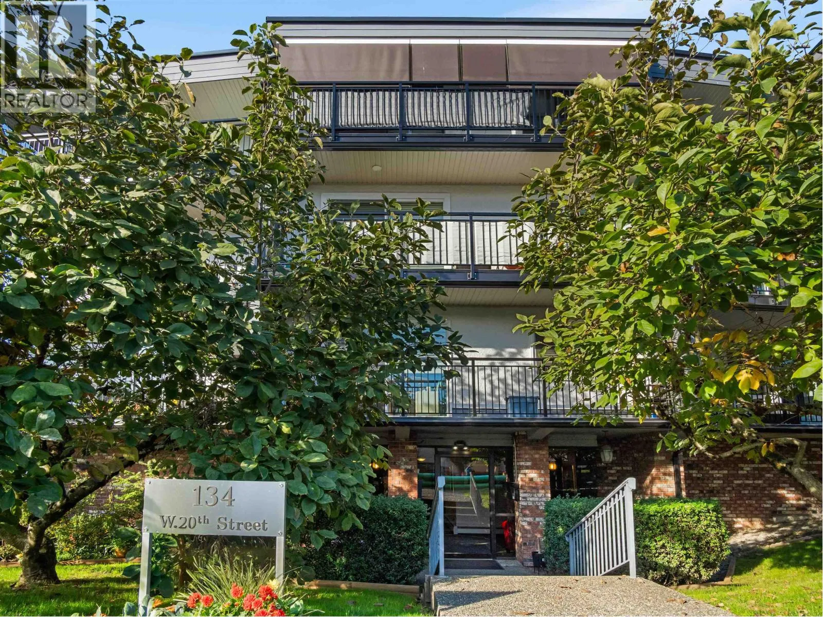 Gorgeously renovated, south facing 2BR/1BA condo in Central Lonsdale! This top floor, corner unit has extensive updates. In the kitchen, recent appliances with induction stove plus all new cabinets, wood and stone countertops extended to an eating area. The large, bright living/dining area features durable wide plank vinyl floors, plus an updated gas fireplace and looks out to a huge and sunny wrap around balcony that overlooks the treed street. Beautifully tiled bathroom has an updated shower with inset nooks for storage. Recent closet doors, light fixtures. The well-run building has many upgrades including balconies, windows, sliding doors, electrical, plumbing. Steps away from all Central Lonsdale shops, medical, new Harry Jerome and minutes to the highway. 1 pkg, 1 stg, dog or cat ok. (id:27476)