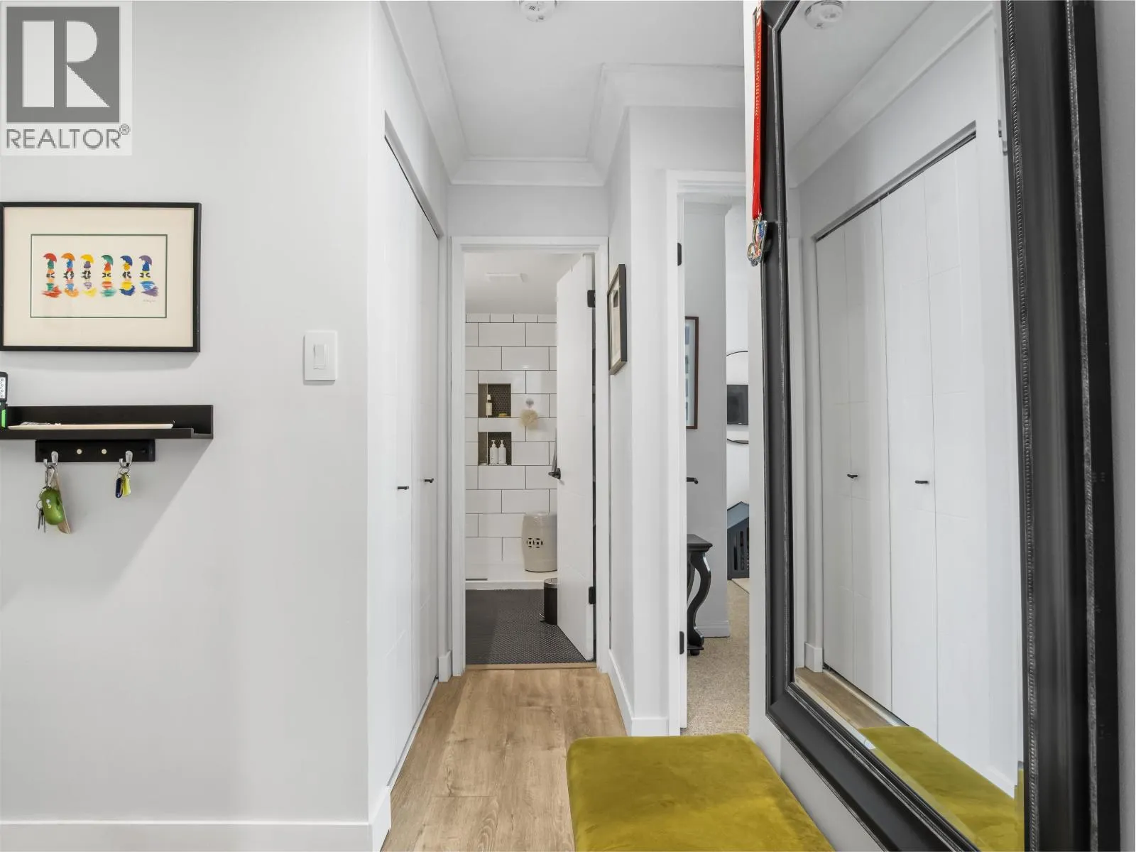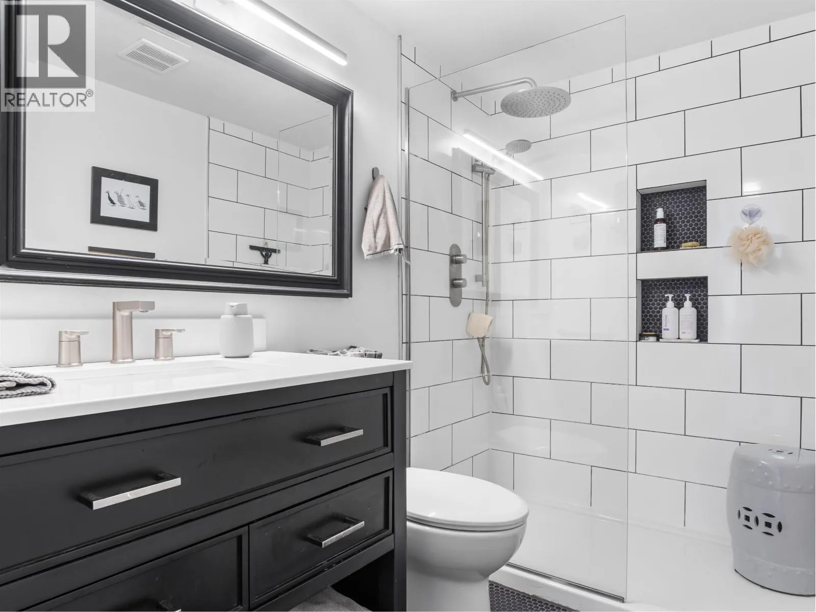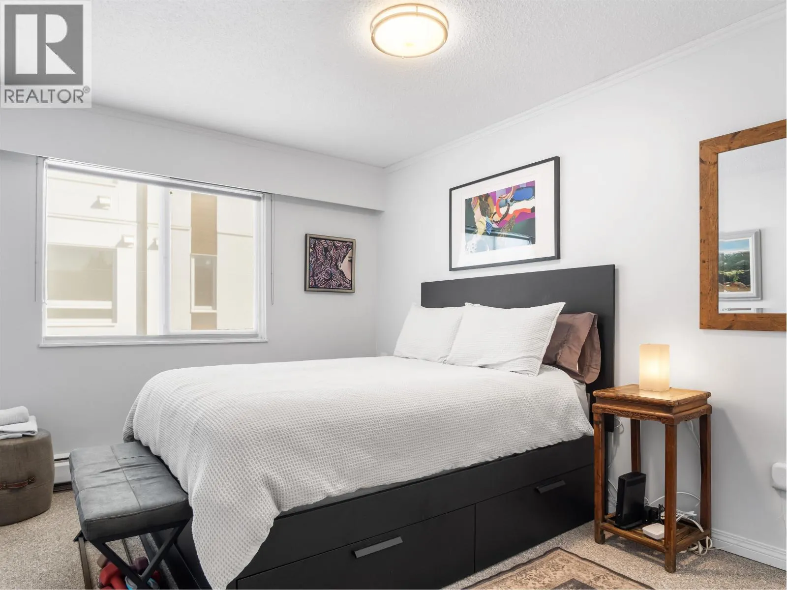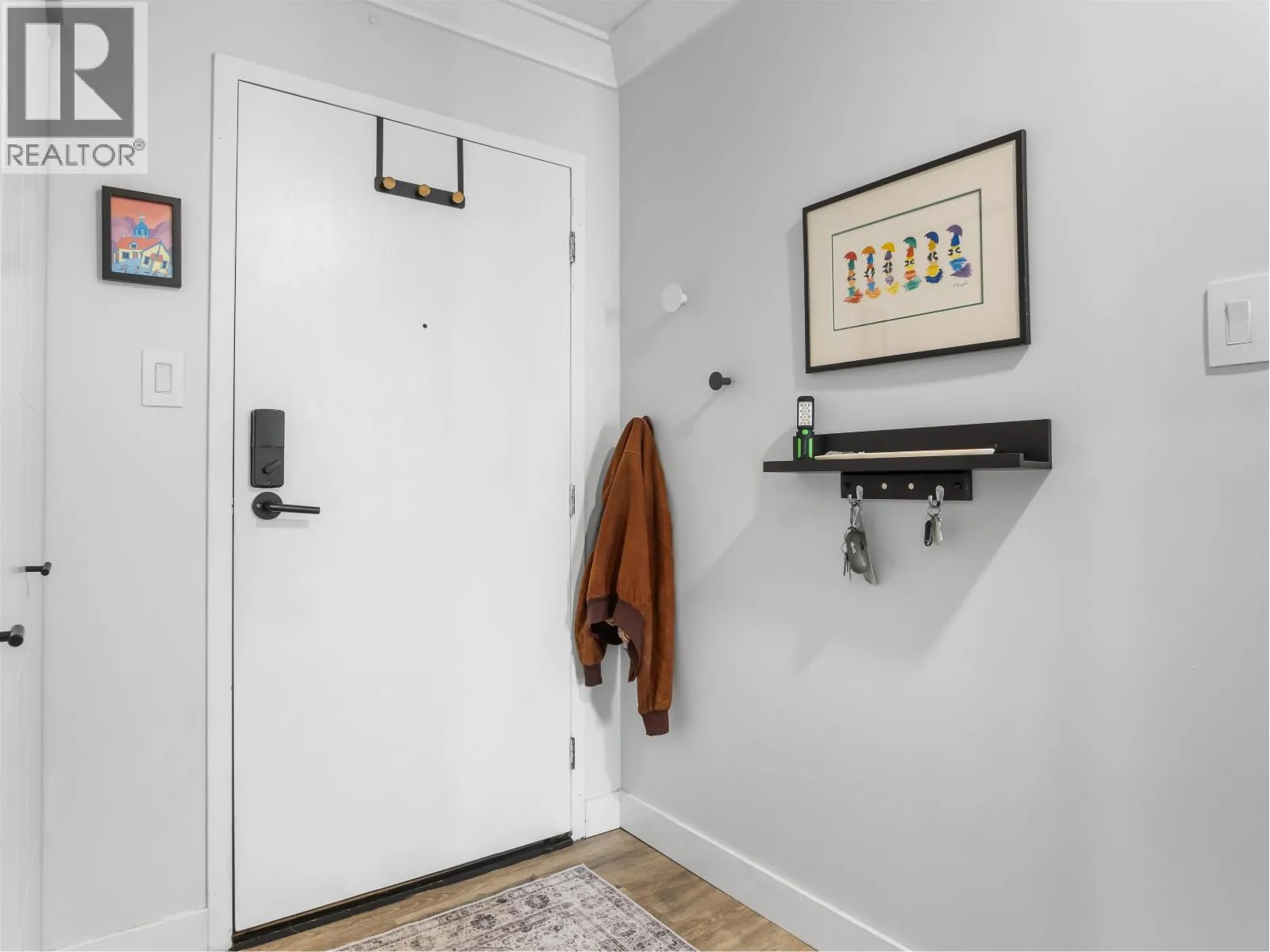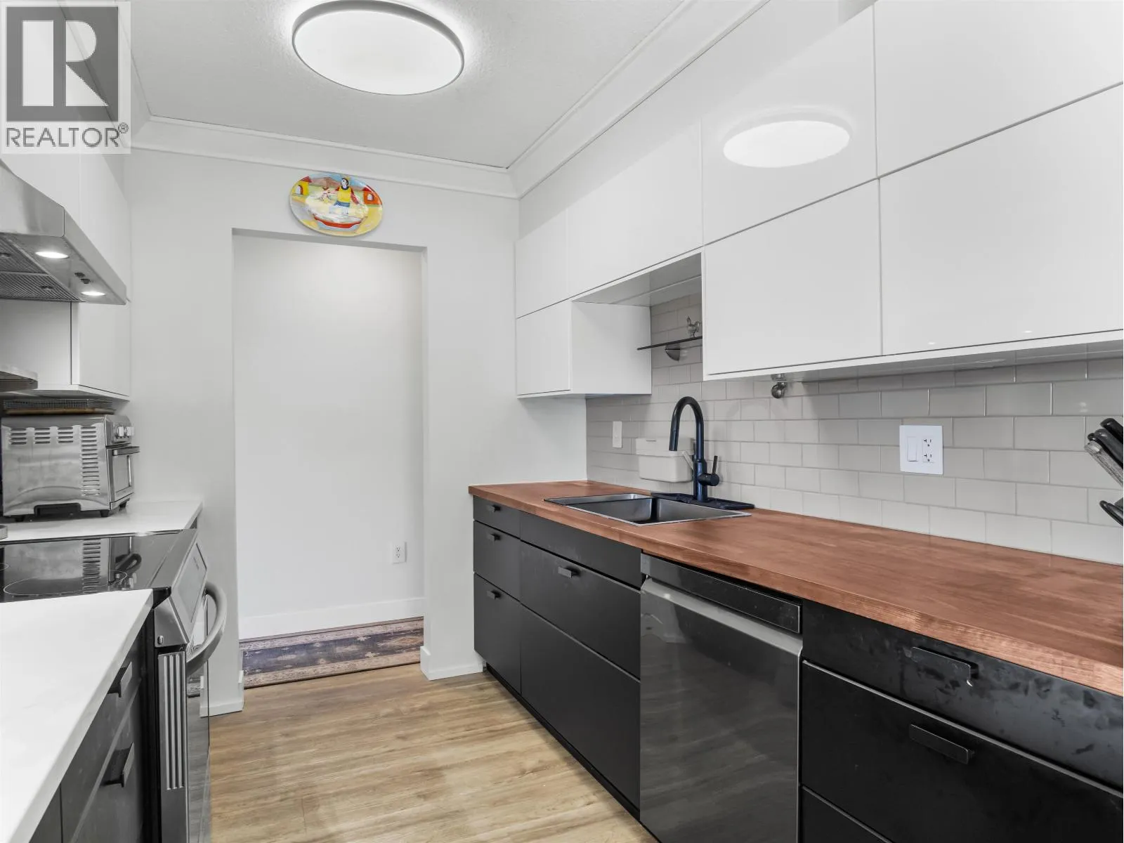 Gorgeously renovated, south facing 2BR/1BA condo in Central Lonsdale! This top floor, corner unit has extensive updates. In the kitchen, recent appliances with induction stove plus all new cabinets, wood and stone countertops extended to an eating area. The large, bright living/dining area features durable wide plank vinyl floors, plus an updated gas fireplace and looks out to a huge and sunny wrap around balcony that overlooks the treed street. Beautifully tiled bathroom has an updated shower with inset nooks for storage. Recent closet doors, light fixtures. The well-run building has many upgrades including balconies, windows, sliding doors, electrical, plumbing. Steps away from all Central Lonsdale shops, medical, new Harry Jerome and minutes to the highway. 1 pkg, 1 stg, dog or cat ok. (id:27476)