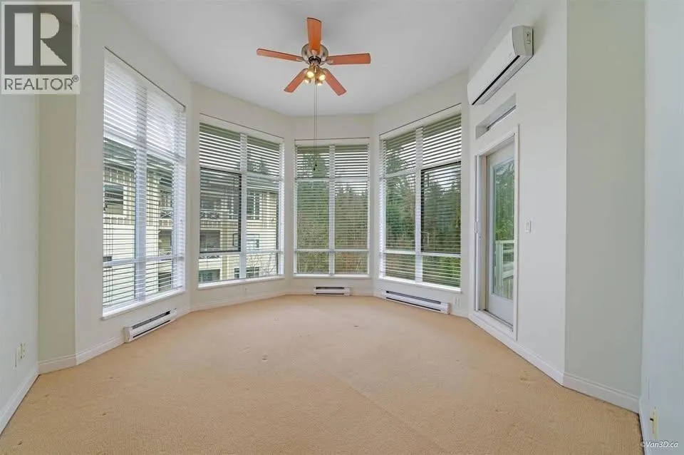 FABULOUS CORNER PENTHOUSE 3 BED, 2 BATH AND DEN AT BEAUTIFUL RAVEN WOODS. Soaring ceilings in LR & MBR. Open kitchen to dining, pot lights, granite counters, SS appliances, gas stove, crown molding, NEW CARPET, 2 balconies, large WI closets. Great floorplan with lots of separation between bedrooms. AC is installed. This top floor home looks on to the serene & majestic DNV Forest Lands providing a very peaceful feeling! (id:27476)