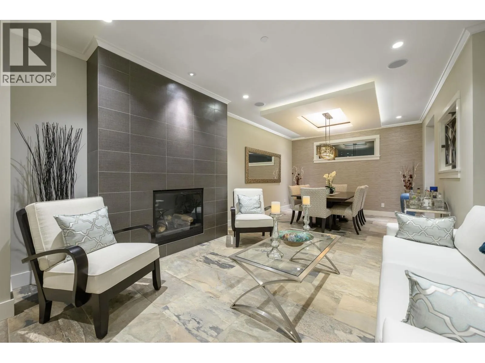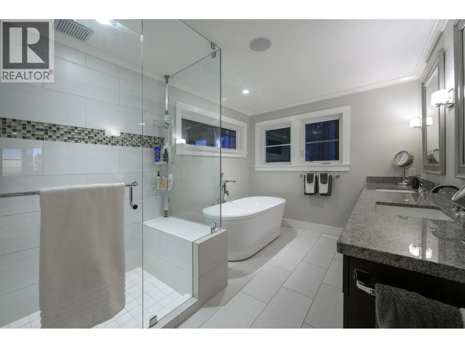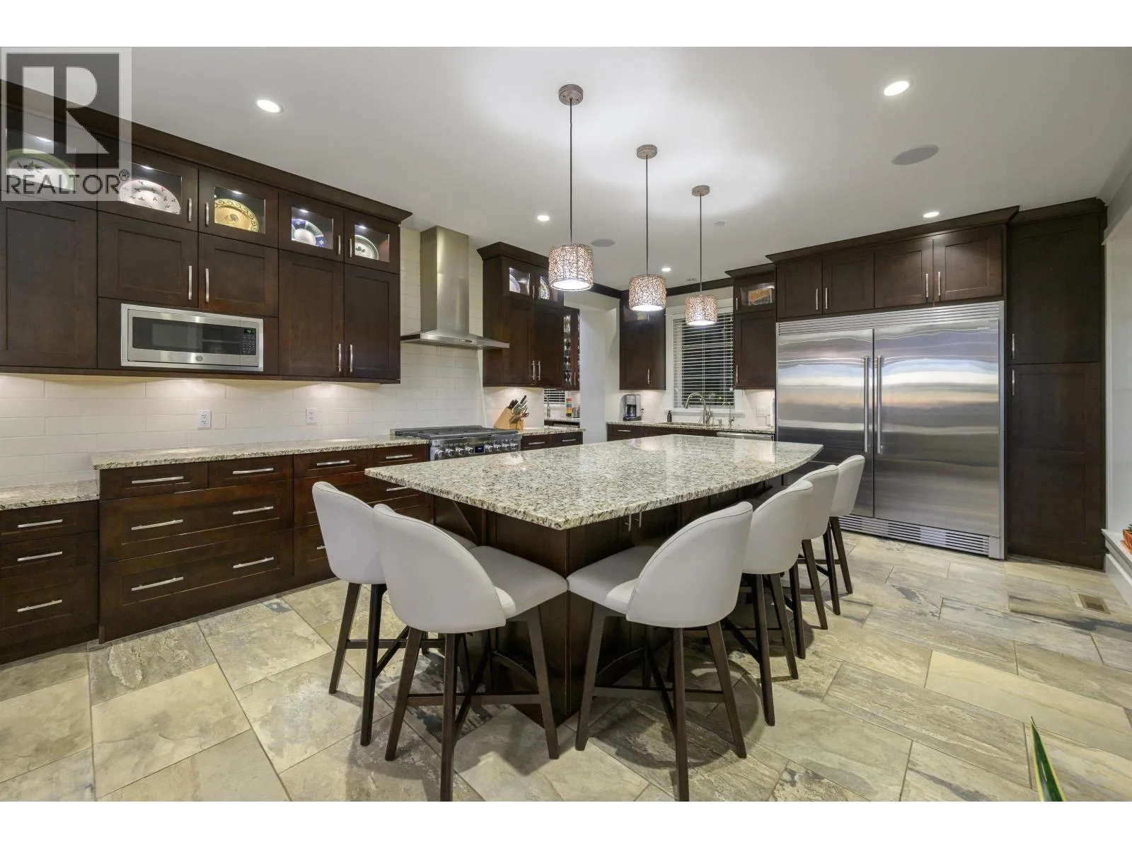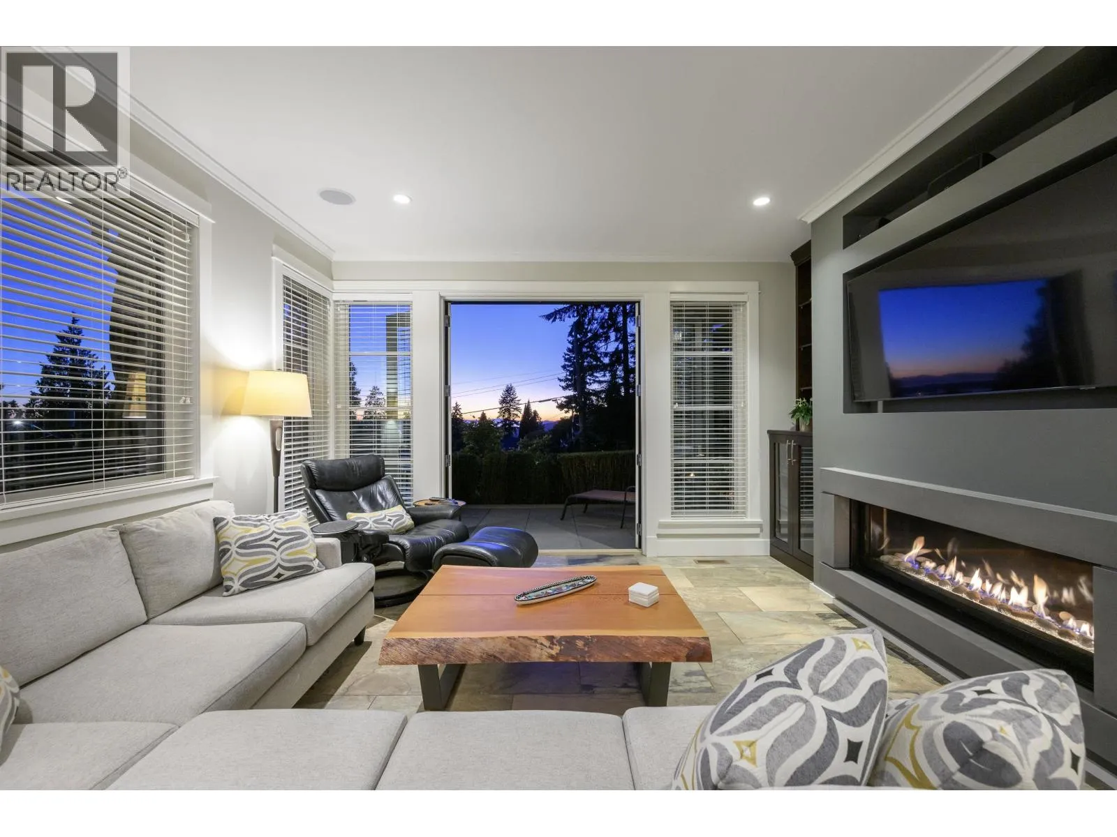 Custom-built West Coast contemporary home with expansive views from Downtown to Vancouver Island. Situated on a 7,480 sqft flat lot with no neighbours, this well-designed, 5 bed, 5 bath, 4,847 sqft home exudes quality & attention to detail. The main showcases an open concept kitchen & living space on the west side featuring a chef´s kitchen that connects thru 3 sets of French doors to over 1,100 square ft of stone, patio space, 450 sqft that´s covered & heated, with built-in bbq, hot tub, & firepit that looks out to the flat lawn. The main also includes a formal dining & living rm, mud rm with seperate entry for active families, & office/den at the front. Upstairs enjoys 3 beds & 2 full baths, with 5 pc ensuite, large walk-in-closet, & west facing balcony off the primary to take in sunsets. Can't forget the 1 bed legal suite, huge rec/games rm with gas fireplace, & 1 more bed/bath down. Include a 3-car garage, A/C, impressive street appeal, with the home backing onto greenbelt - wow! (id:27476)