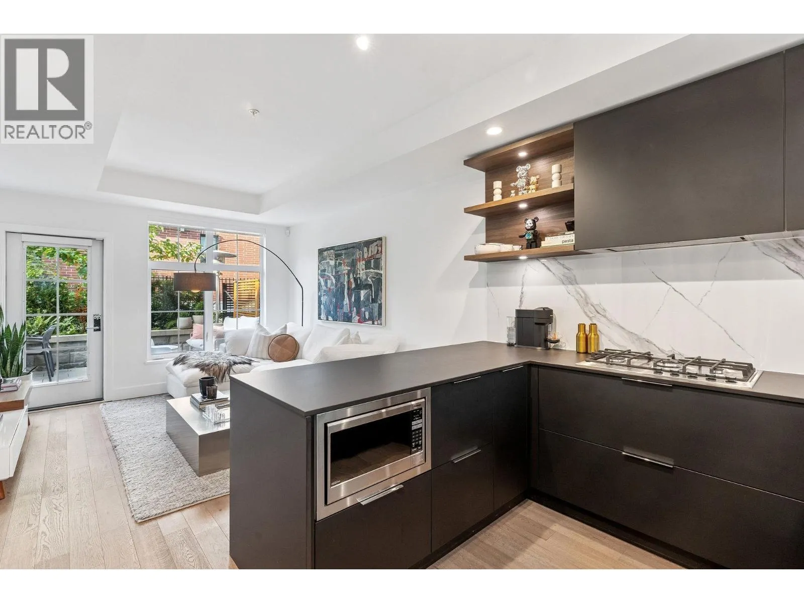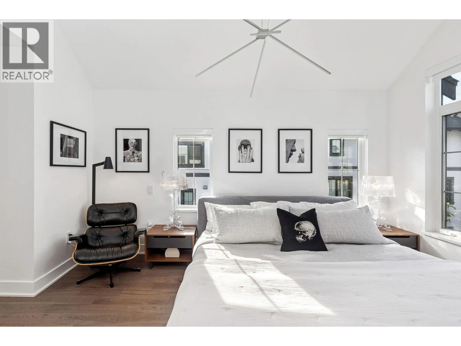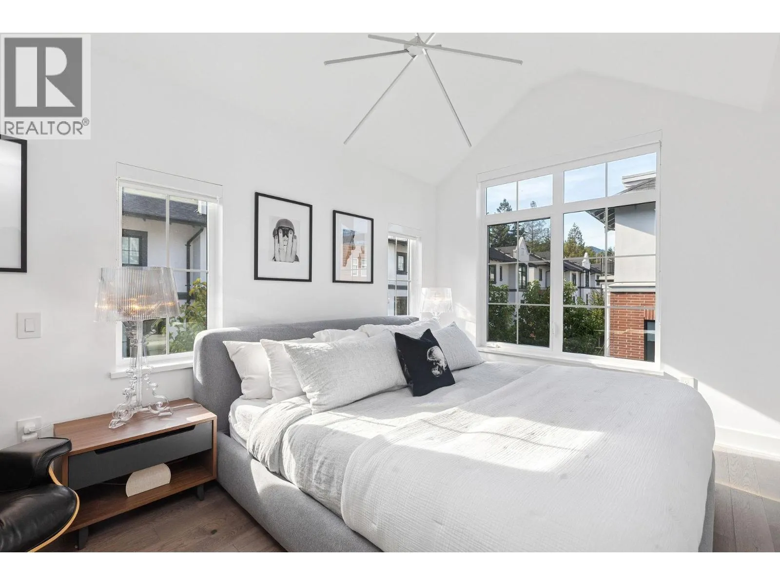 The corner townhome you´ve been waiting for! Flooded with southwest light, this perfectly positioned home is wrapped in oversized windows and anchored by a spacious west-facing terrace with gas hookup-ideal for BBQs and entertaining. The signature CresseyKitchenTM boasts ample storage, Dekton counters, an integrated appliance package, and a 5-burner gas cooktop. Hardwood floors run throughout, complemented by large-format spa-inspired baths. This rare 4-bedroom layout offers 3 walk-in closets, a massive private storage room, heat-pump A/C, and 2 EV-ready parking stalls. Mason by award-winning Cressey is an intimate, European-inspired collection in Lions Gate Village, celebrated for its family-friendly layouts and timeless quality. An elevated North Shore lifestyle-turn-key, bright, and beautifully quiet. With easy access to Downtown, steps to the best trails and parks, Park Royal shopping & dining, Ambleside Village & recreation centre; easily the best location in North Van. (id:27476)