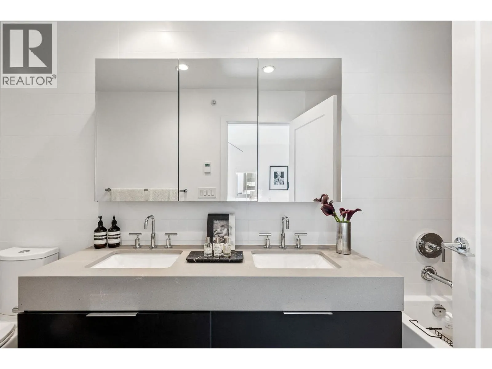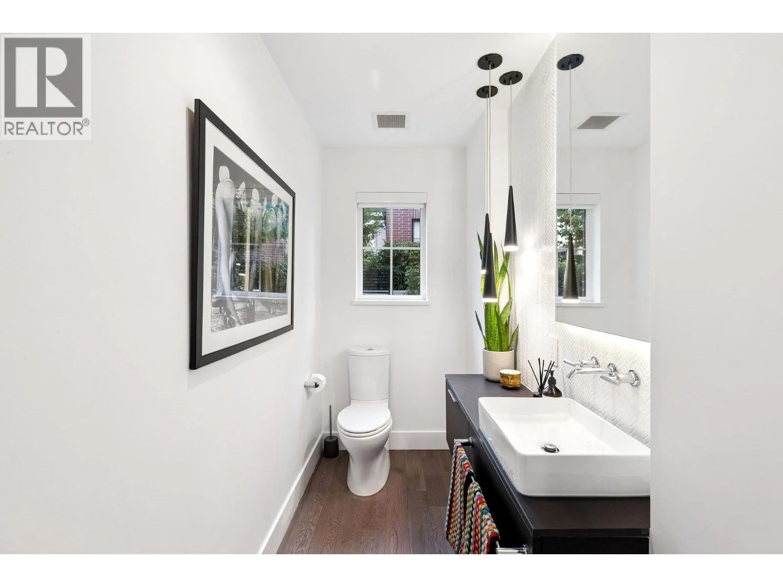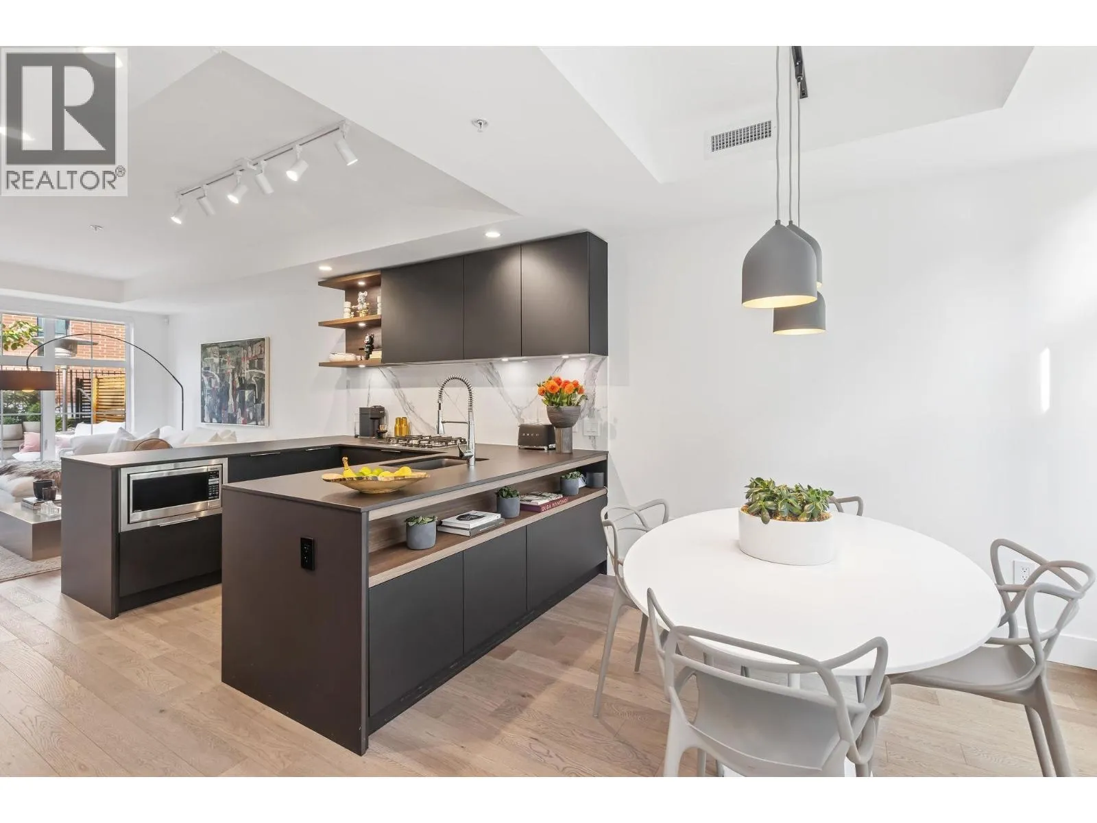 The corner townhome you´ve been waiting for! Flooded with southwest light, this perfectly positioned home is wrapped in oversized windows and anchored by a spacious west-facing terrace with gas hookup-ideal for BBQs and entertaining. The signature CresseyKitchenTM boasts ample storage, Dekton counters, an integrated appliance package, and a 5-burner gas cooktop. Hardwood floors run throughout, complemented by large-format spa-inspired baths. This rare 4-bedroom layout offers 3 walk-in closets, a massive private storage room, heat-pump A/C, and 2 EV-ready parking stalls. Mason by award-winning Cressey is an intimate, European-inspired collection in Lions Gate Village, celebrated for its family-friendly layouts and timeless quality. An elevated North Shore lifestyle-turn-key, bright, and beautifully quiet. With easy access to Downtown, steps to the best trails and parks, Park Royal shopping & dining, Ambleside Village & recreation centre; easily the best location in North Van. (id:27476)