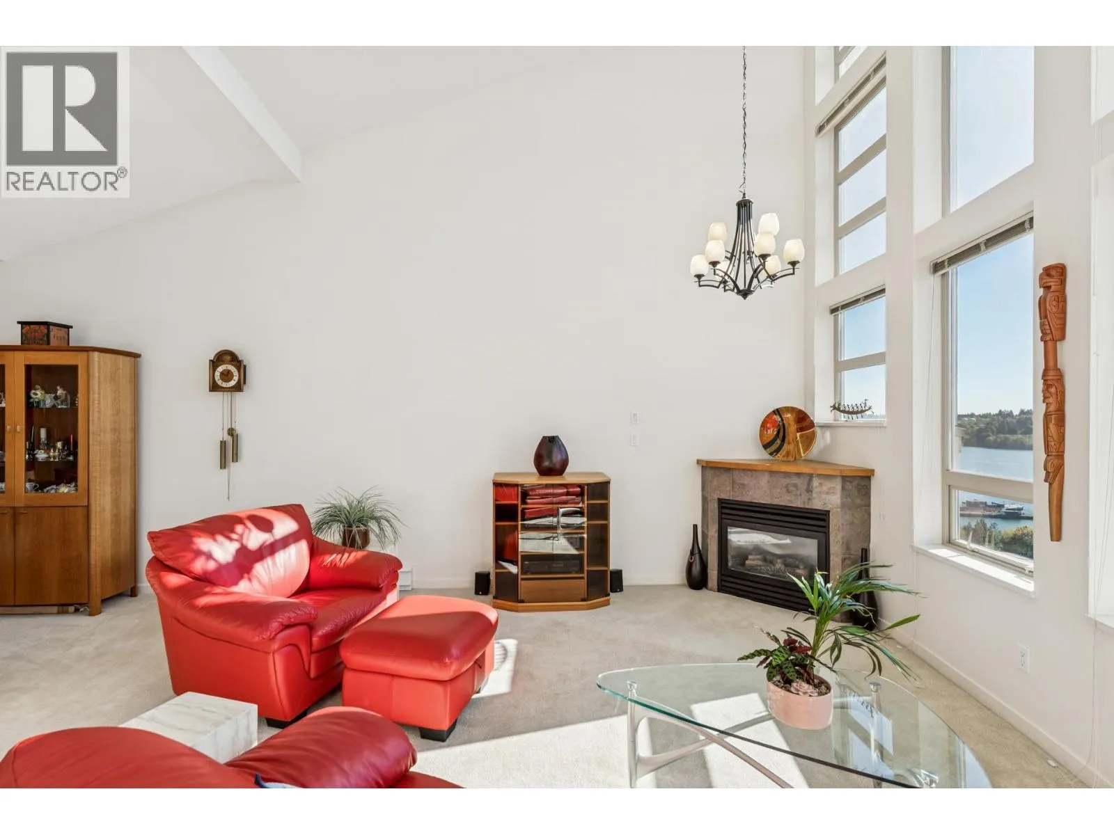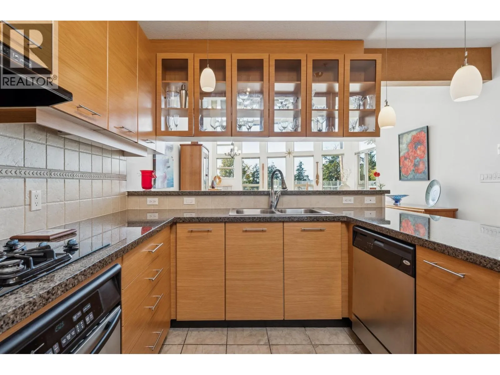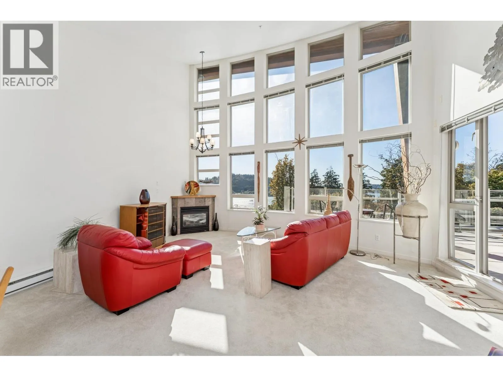 Stunning Ocean View Penthouse at Seasons West. This south-facing 3-bdrm, 2-bath home offers over 1,600 sq. ft. of refined single-level living plus a 300 sq. ft. view deck. Soaring vaulted ceilings and expansive windows frame sweeping ocean and forest vistas, while the open-concept design allows for house-sized furniture and effortless entertaining. The chef´s kitchen features granite counters, stainless steel appliances, and bar seating, and opens to a versatile family room-perfect as a lounge, playroom, or home office. The primary suite enjoys lie-in-bed views, deck access, a walk-through closet, & a 5-pce ensuite. With A/C, two parking stalls, and access to resort-style amenities, all just minutes from Deep Cove, Cates Park, & Mount Seymour, this home defines elevated coastal living. (id:27476)