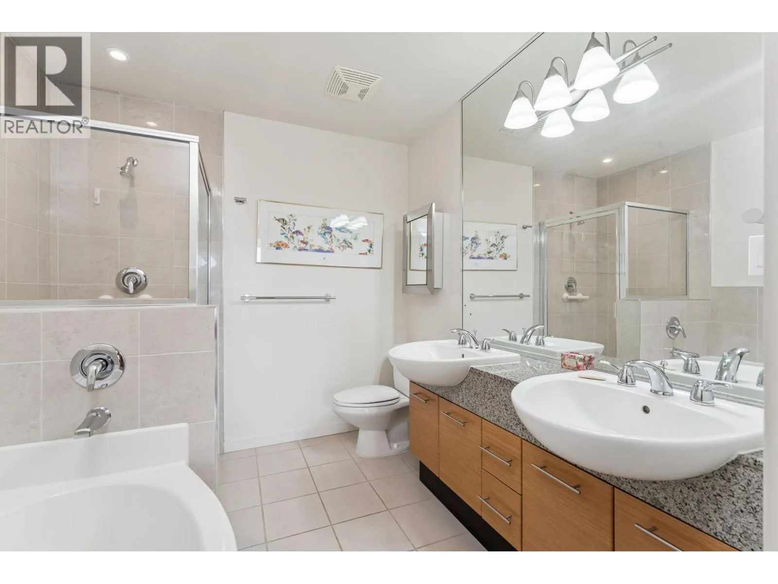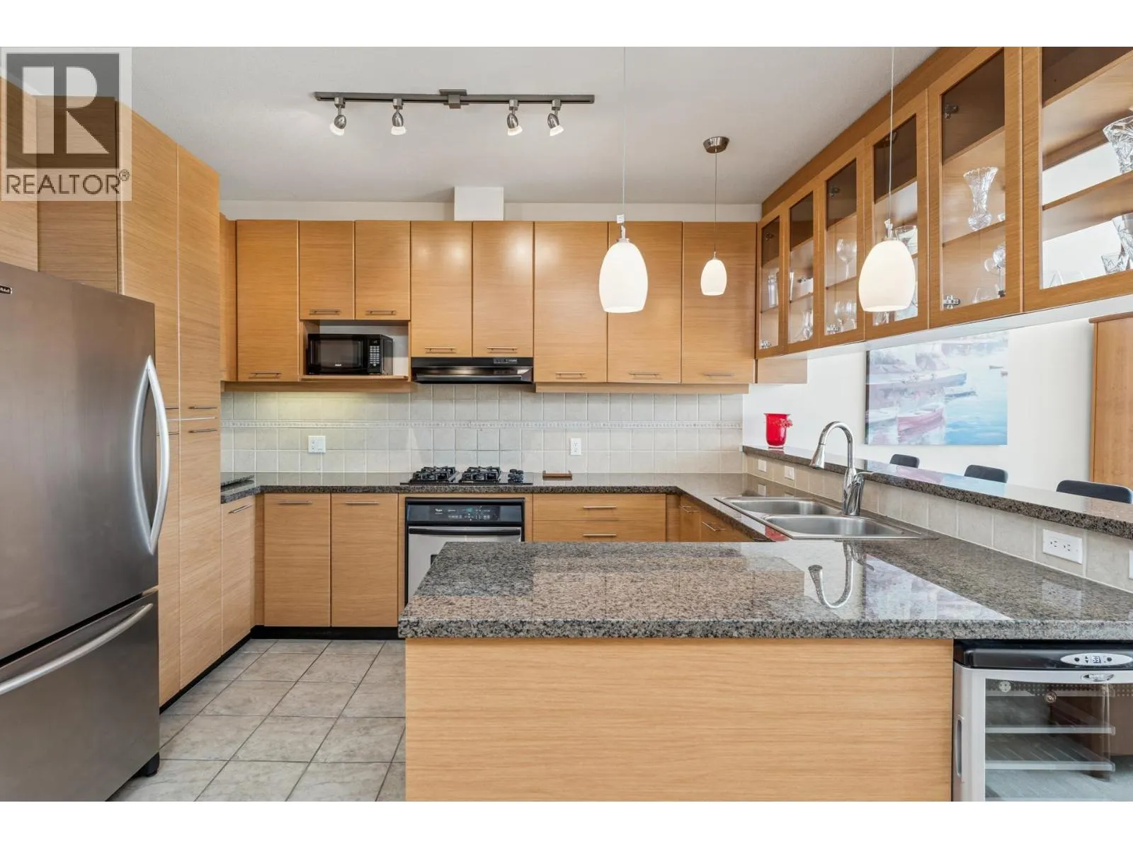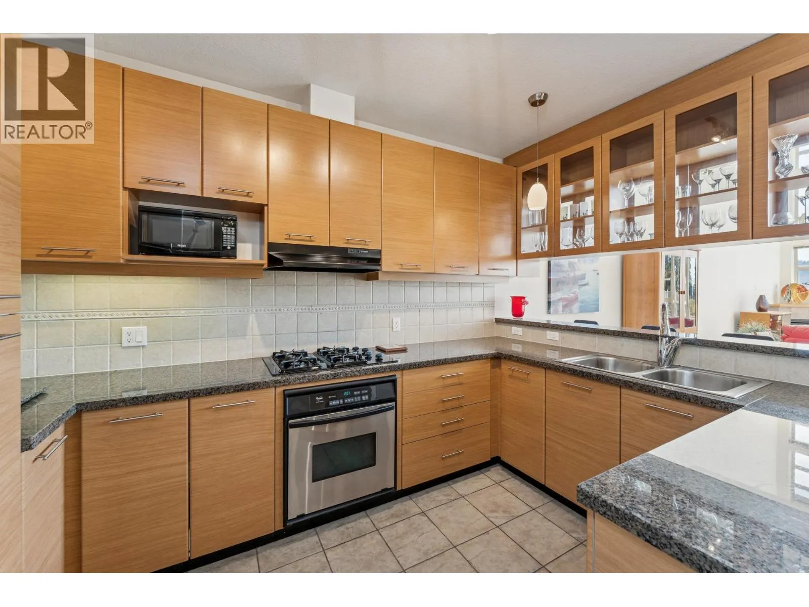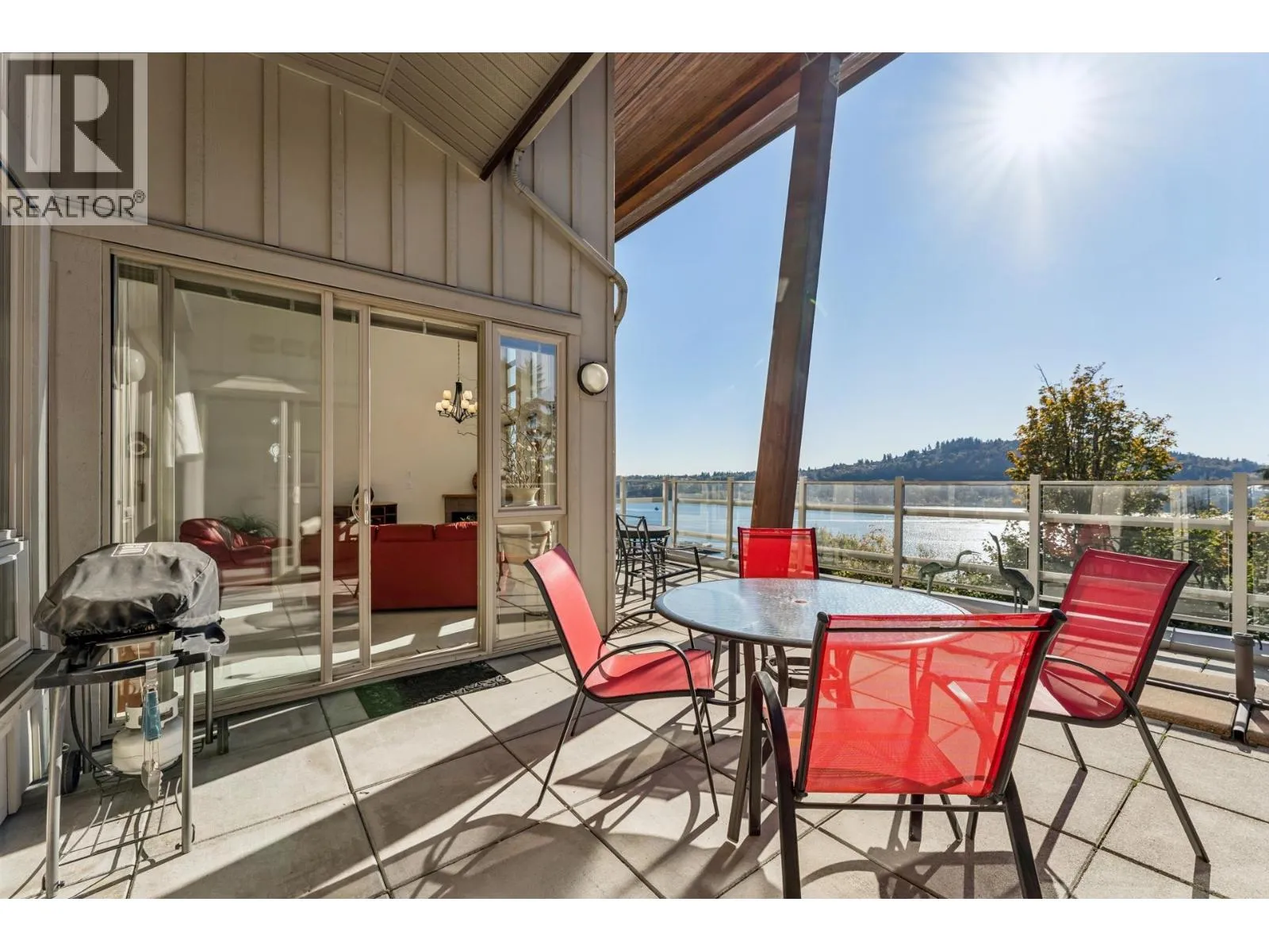 Stunning Ocean View Penthouse at Seasons West. This south-facing 3-bdrm, 2-bath home offers over 1,600 sq. ft. of refined single-level living plus a 300 sq. ft. view deck. Soaring vaulted ceilings and expansive windows frame sweeping ocean and forest vistas, while the open-concept design allows for house-sized furniture and effortless entertaining. The chef´s kitchen features granite counters, stainless steel appliances, and bar seating, and opens to a versatile family room-perfect as a lounge, playroom, or home office. The primary suite enjoys lie-in-bed views, deck access, a walk-through closet, & a 5-pce ensuite. With A/C, two parking stalls, and access to resort-style amenities, all just minutes from Deep Cove, Cates Park, & Mount Seymour, this home defines elevated coastal living. (id:27476)