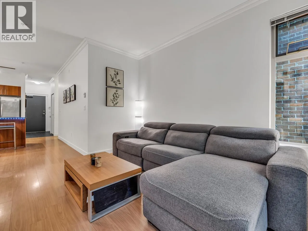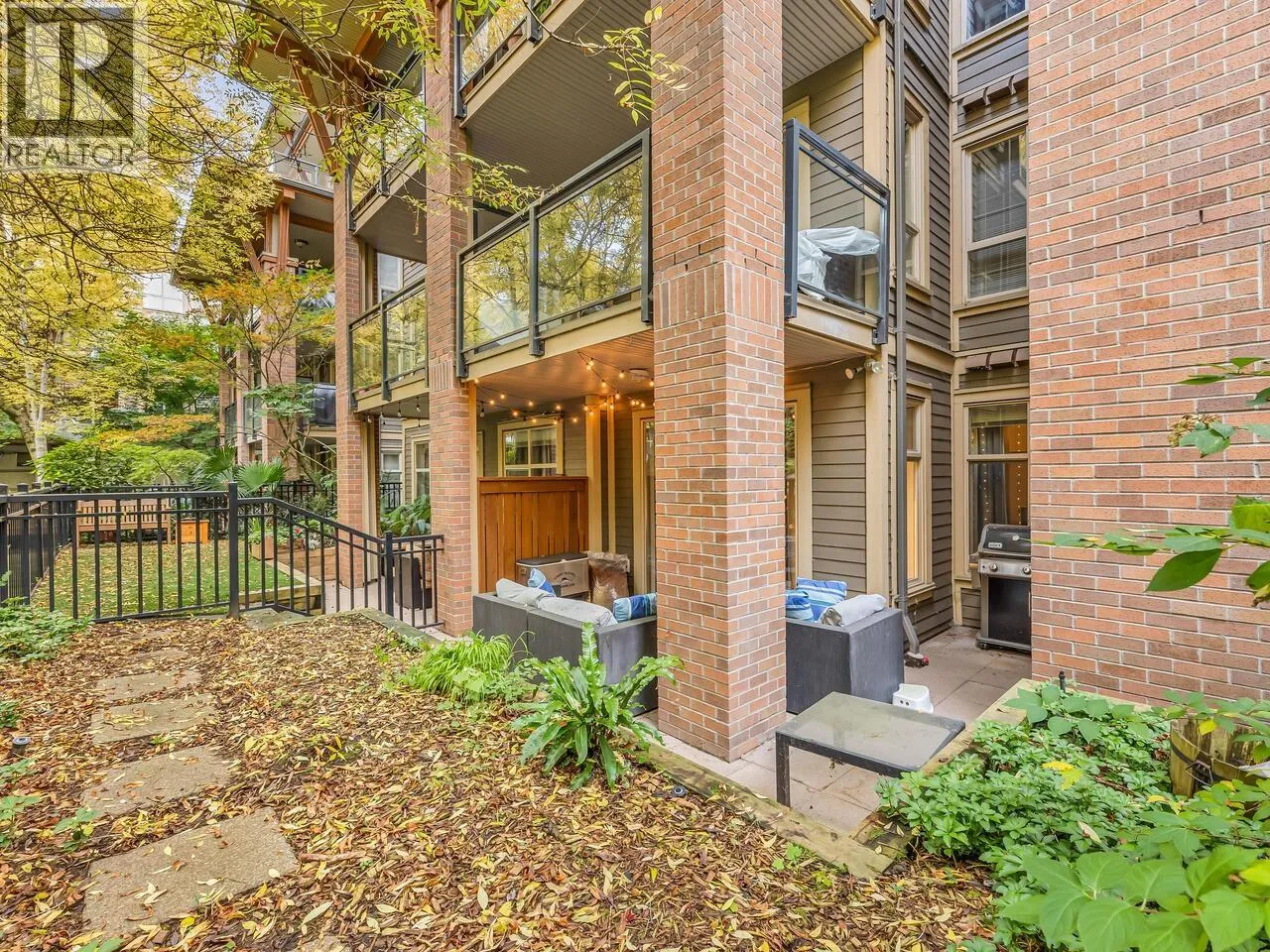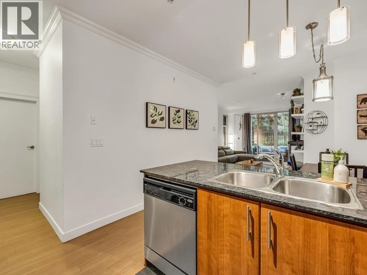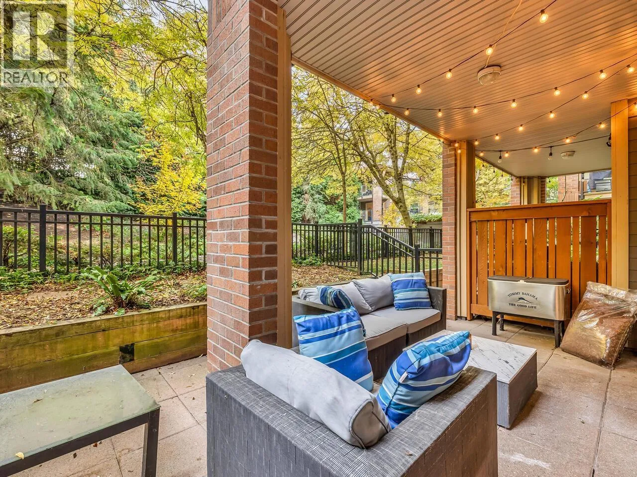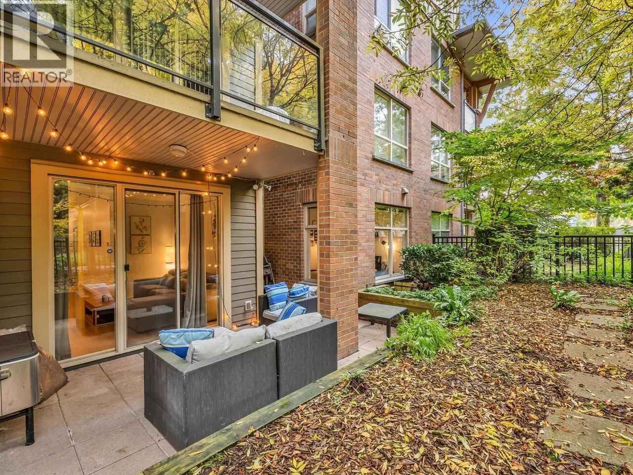 Discover garden-level living in the heart of North Van´s Central Marine district. This 2 bed, 2 bath home offers 970 square ft of thoughtfully designed interior space and a rare 200 square ft private garden terrace perfect for morning coffee, outdoor dining, or peaceful relaxation. The bright, open-concept layout features a modern kitchen with stone countertops and stainless steel appliances, along with two full bathrooms including a ensuite. Ideally located near Heywood Park and Capilano Mall, with shops, cafes, transit, and trails just steps away. Includes a storage locker and two secure parking stalls, one being oversized. Pet and rental friendly. (id:27476)