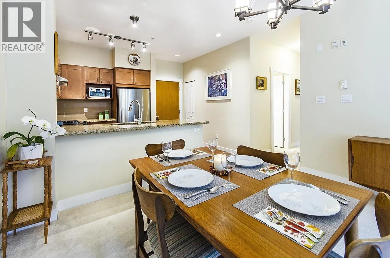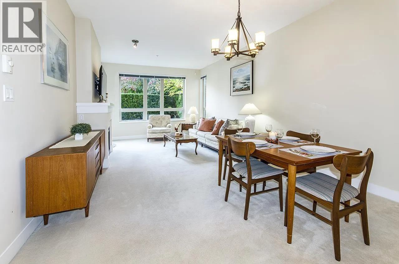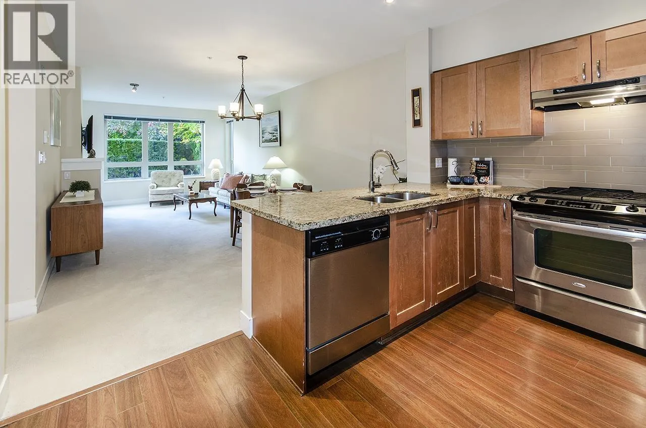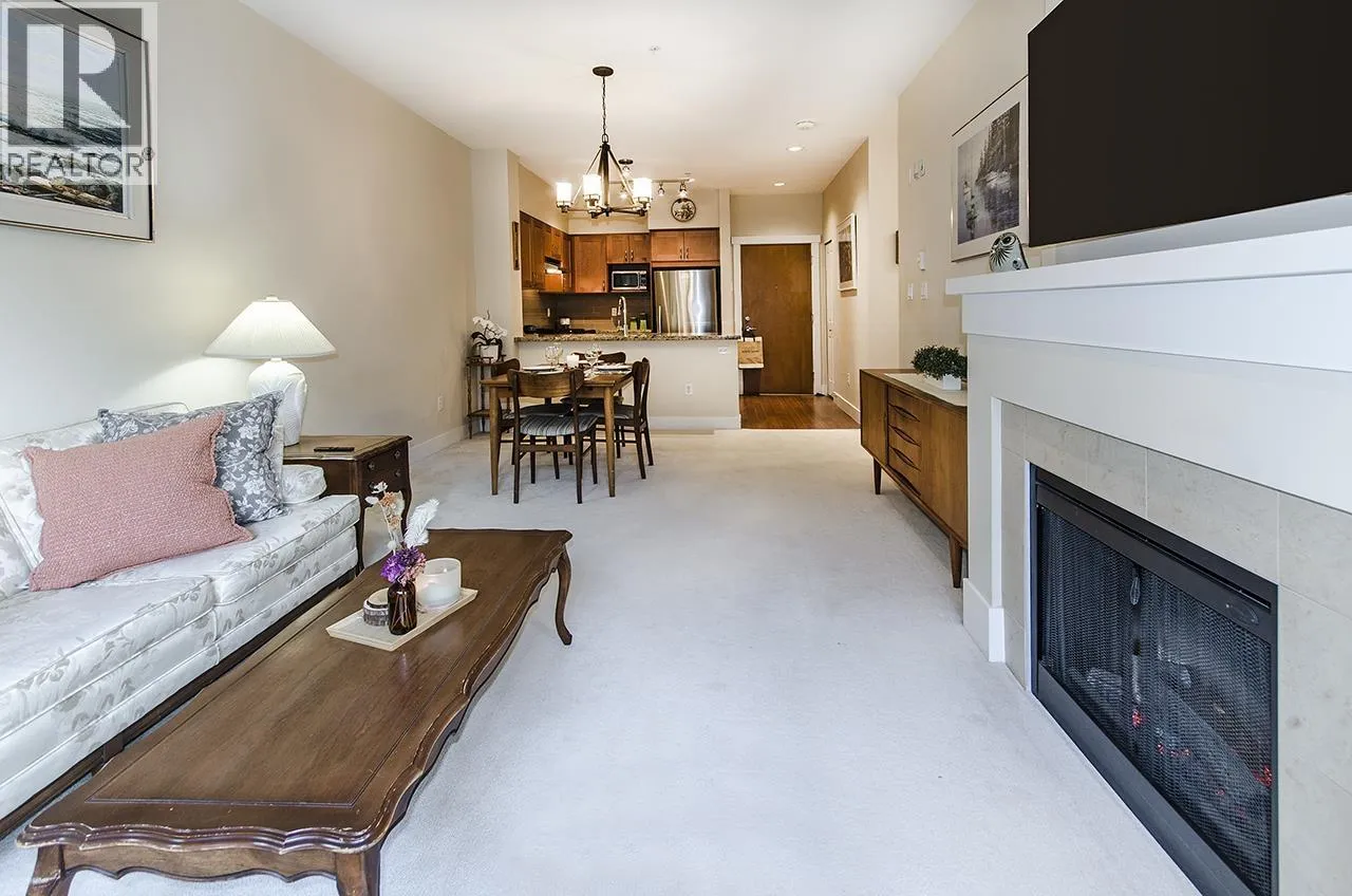 Discover this beautifully maintained ground-floor home offering one-level living with privacy. Features include a private gated entrance, lush gardens, and a spacious outdoor patio-perfect for relaxation and entertaining. Bright and open plan, offers 2 beds, 2 baths, granite countertops, stainless steel appliances, and a cozy fireplace. The primary suite has a walk-in closet and large ensuite with garden views. Additional benefits include in-suite laundry, prime location for underground parking spot, pet-friendly amenities, fitness studio, guest suite, bike room, and a private courtyard. Conveniently located near trails, Lynn Valley Centre, parks, and recreation. A rare, house-like feel in a vibrant community! (id:27476)