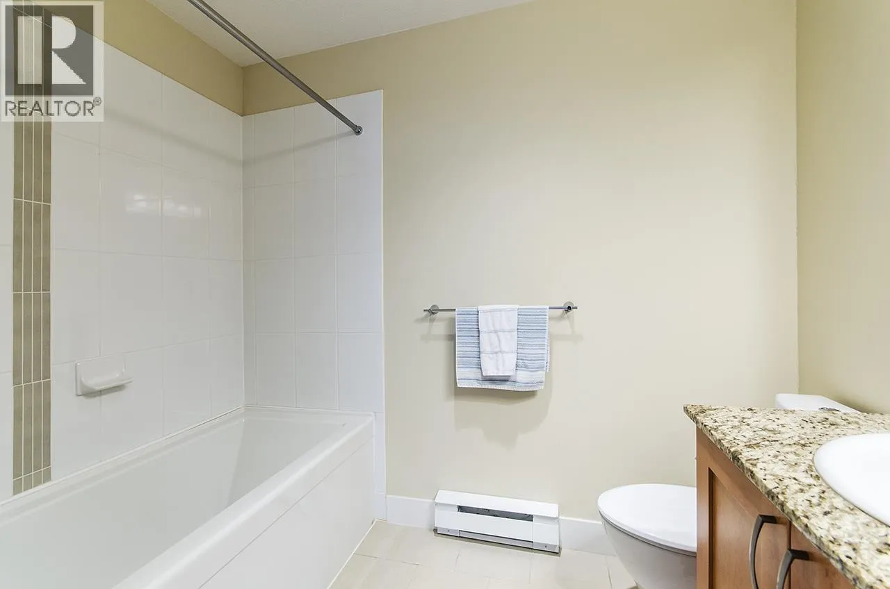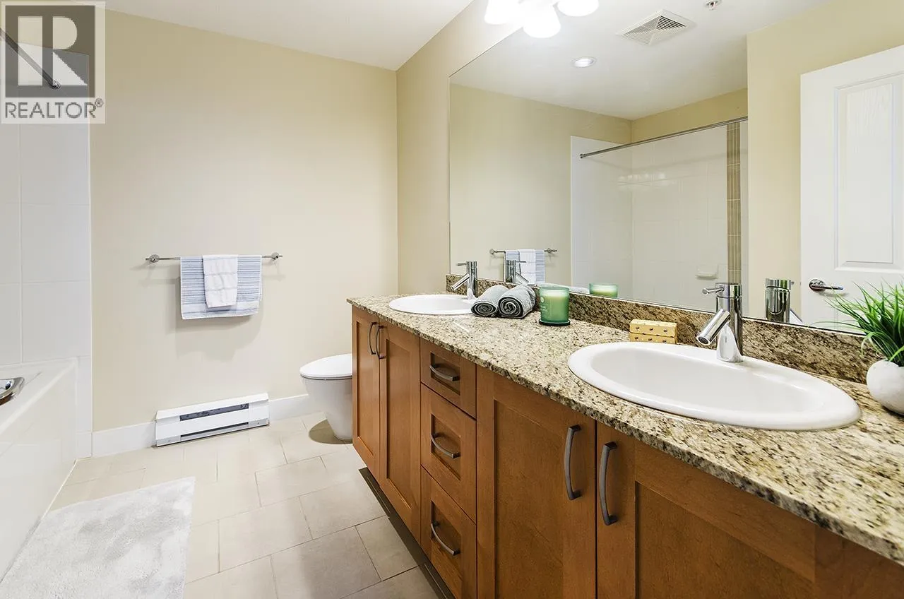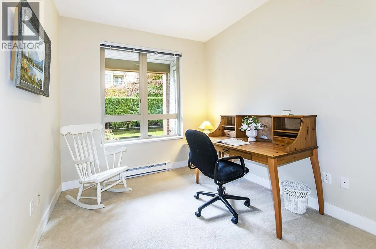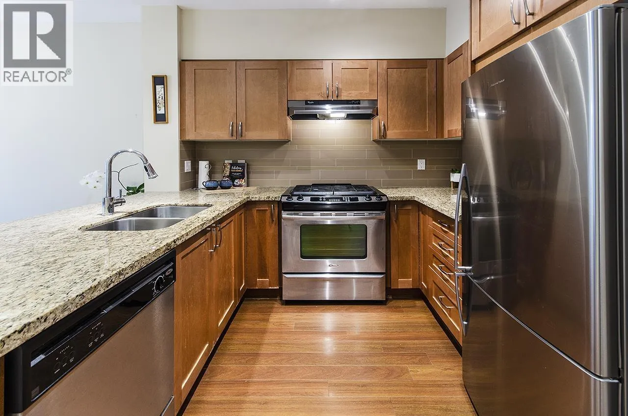 Discover this beautifully maintained ground-floor home offering one-level living with privacy. Features include a private gated entrance, lush gardens, and a spacious outdoor patio-perfect for relaxation and entertaining. Bright and open plan, offers 2 beds, 2 baths, granite countertops, stainless steel appliances, and a cozy fireplace. The primary suite has a walk-in closet and large ensuite with garden views. Additional benefits include in-suite laundry, prime location for underground parking spot, pet-friendly amenities, fitness studio, guest suite, bike room, and a private courtyard. Conveniently located near trails, Lynn Valley Centre, parks, and recreation. A rare, house-like feel in a vibrant community! (id:27476)