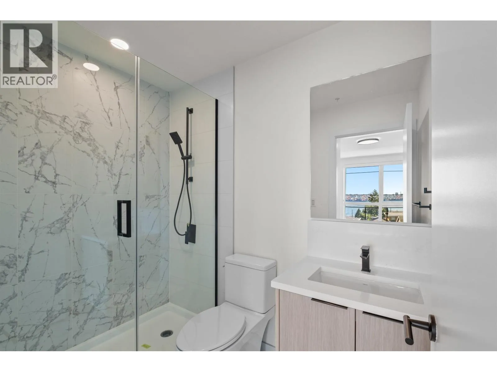 Be the first to live in this brand new corner suite, showcasing southern views! This 2 bed, 2 bath concrete built 2025 residence features floor-to-ceiling windows, an open kitchen with island, and a private balcony with downtown & water vistas. The primary bedroom includes a sleek ensuite, plus A/C ensures year-round comfort. Residents enjoy a massive communal rooftop deck with 360° views, party room, billiards & more. Walking distance to shops, cafés, restaurants & amenities of vibrant Lower Lonsdale. Parking & storage included. Pet & rental friendly. (id:27476)