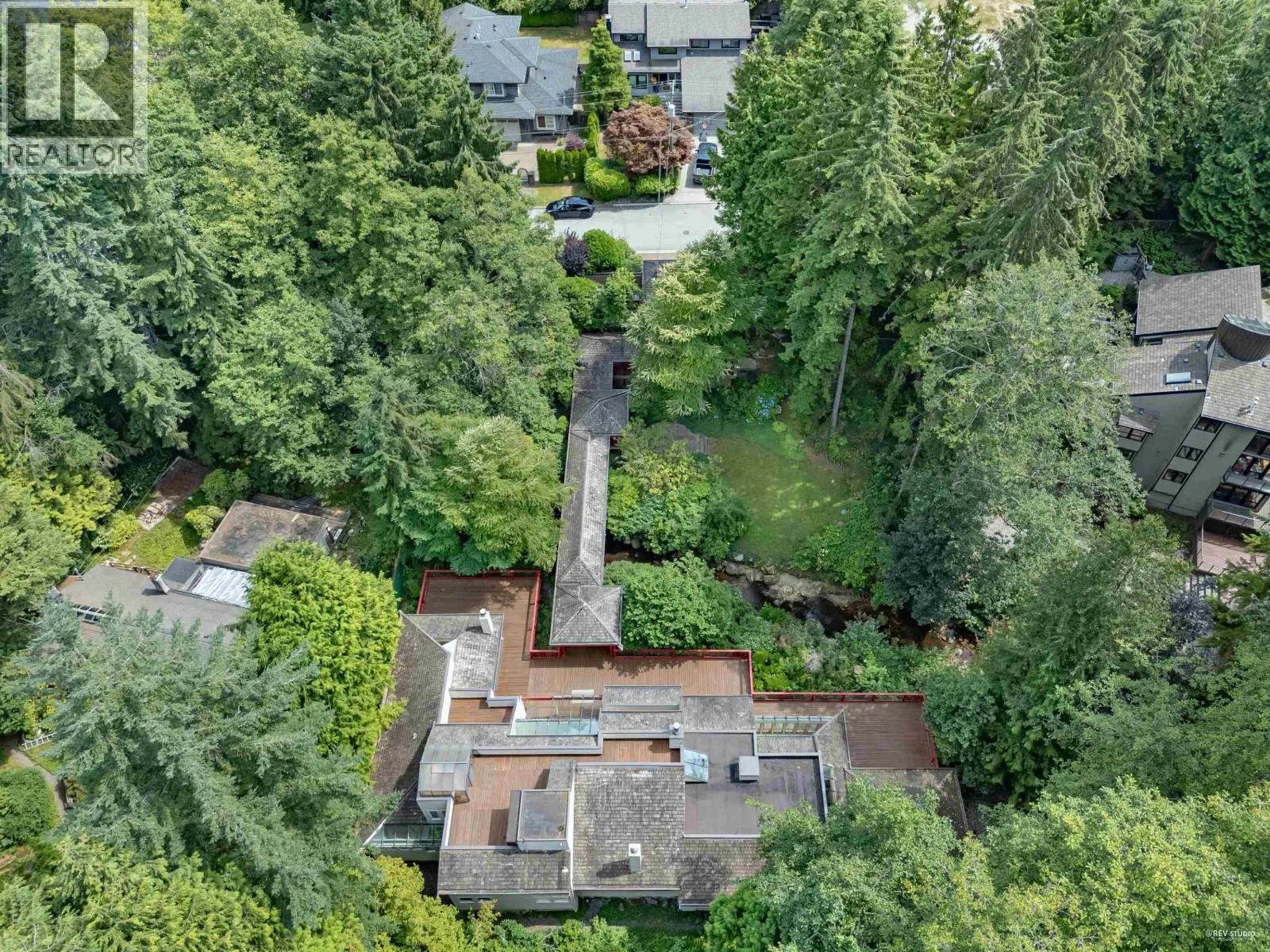 A rare architectural jewel, this one-of-a-kind McEwen-designed contemporary home rests on a private 2/3-acre estate surrounded by towering evergreens in the heart of North Vancouver. A covered bridge over Hastings Creek leads to lush gardens, expansive sunlit decks and the soothing sound of water. Spanning 4,339 sq ft, this West Coast masterpiece features 5 bedrooms, 2.5 baths, a gourmet Italian-inspired kitchen with pantry and floor-to-ceiling windows framing the natural beauty beyond. The open-concept design offers seamless indoor-outdoor living, perfect for both sophisticated entertaining and quiet reflection-just minutes to trails, top schools, shopping, and amenities. Property Video: https://drive.google.com/file/d/1eXgWB7jNrStoPHbZU3mEv5pSYpslydyk/view?usp=sharing (id:27476)