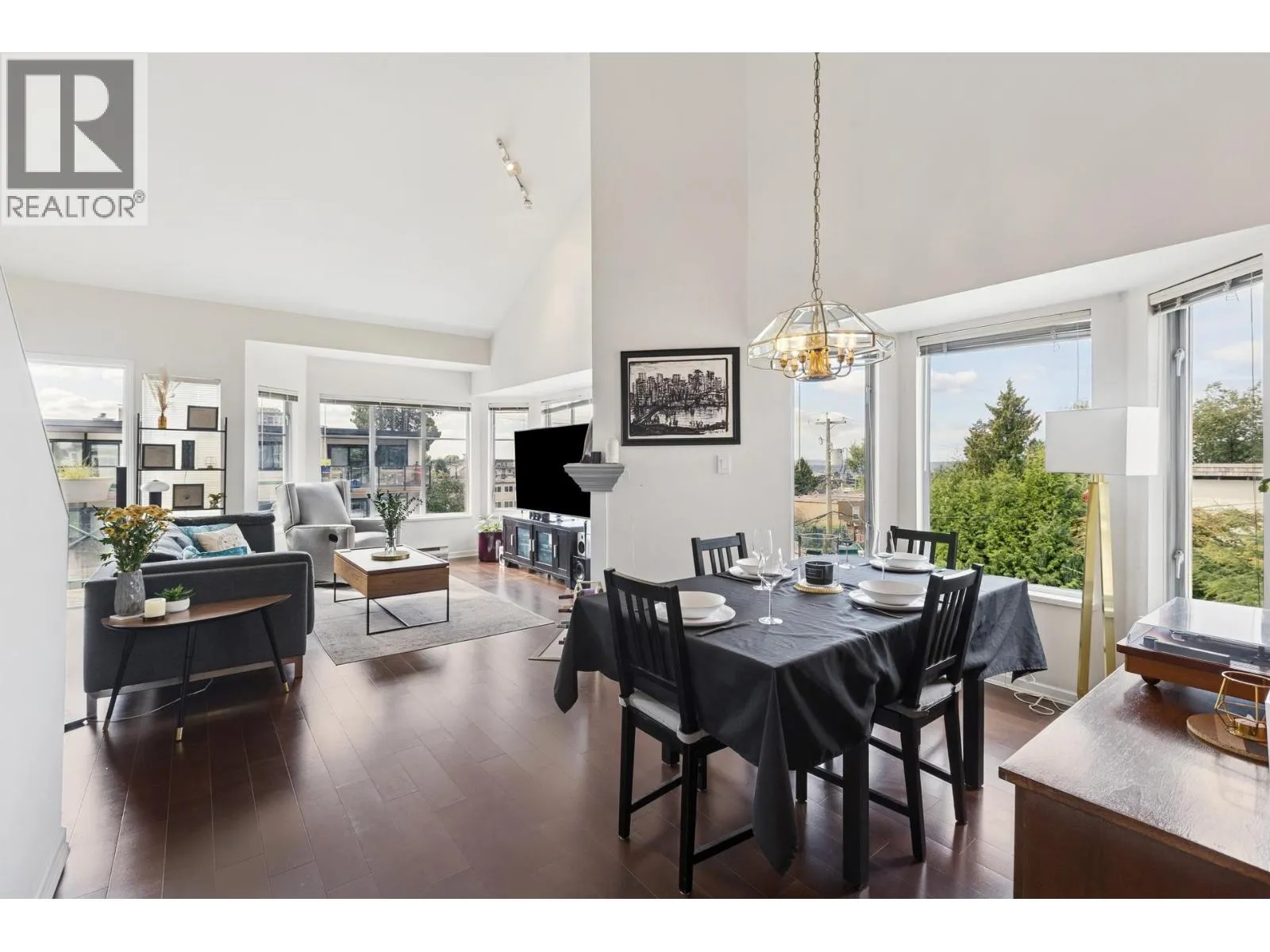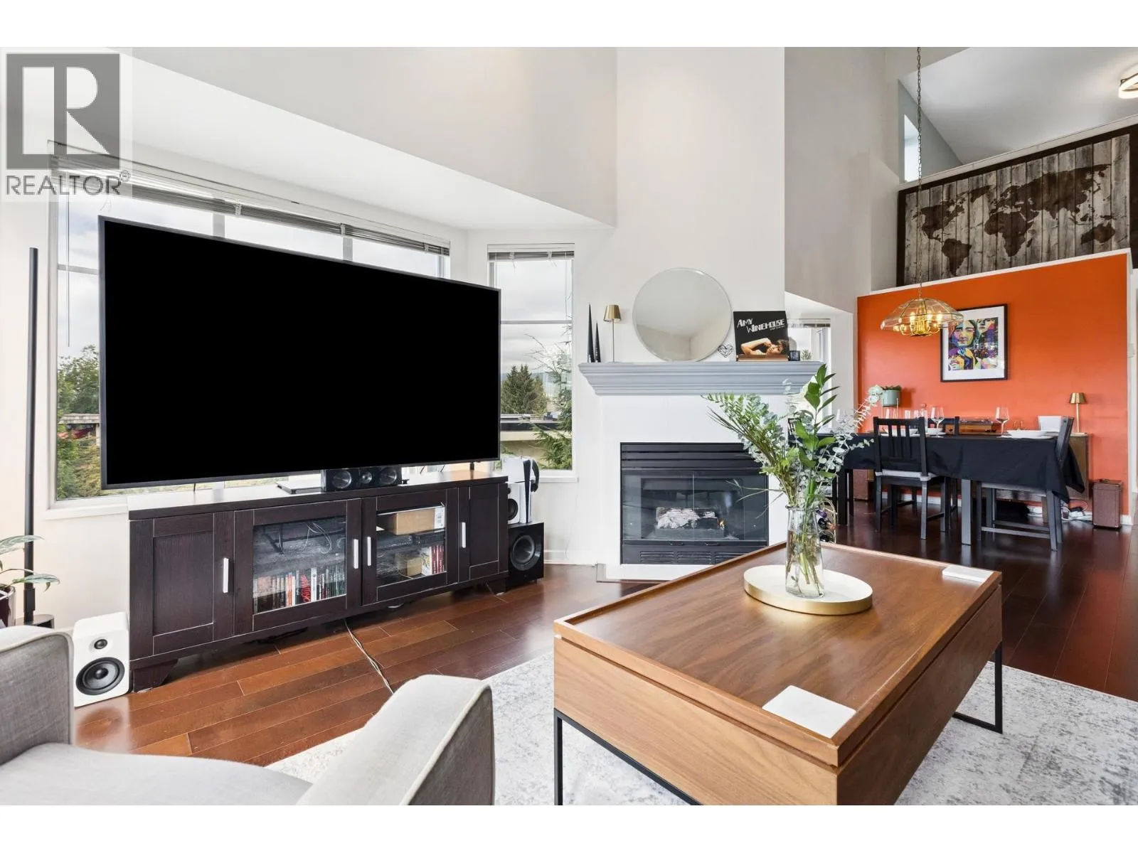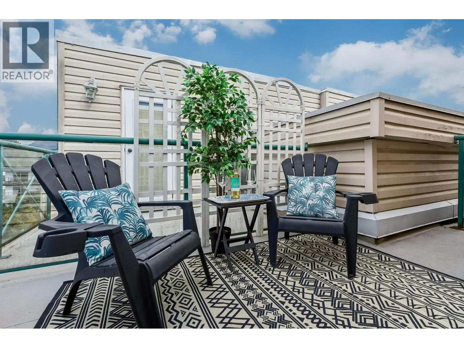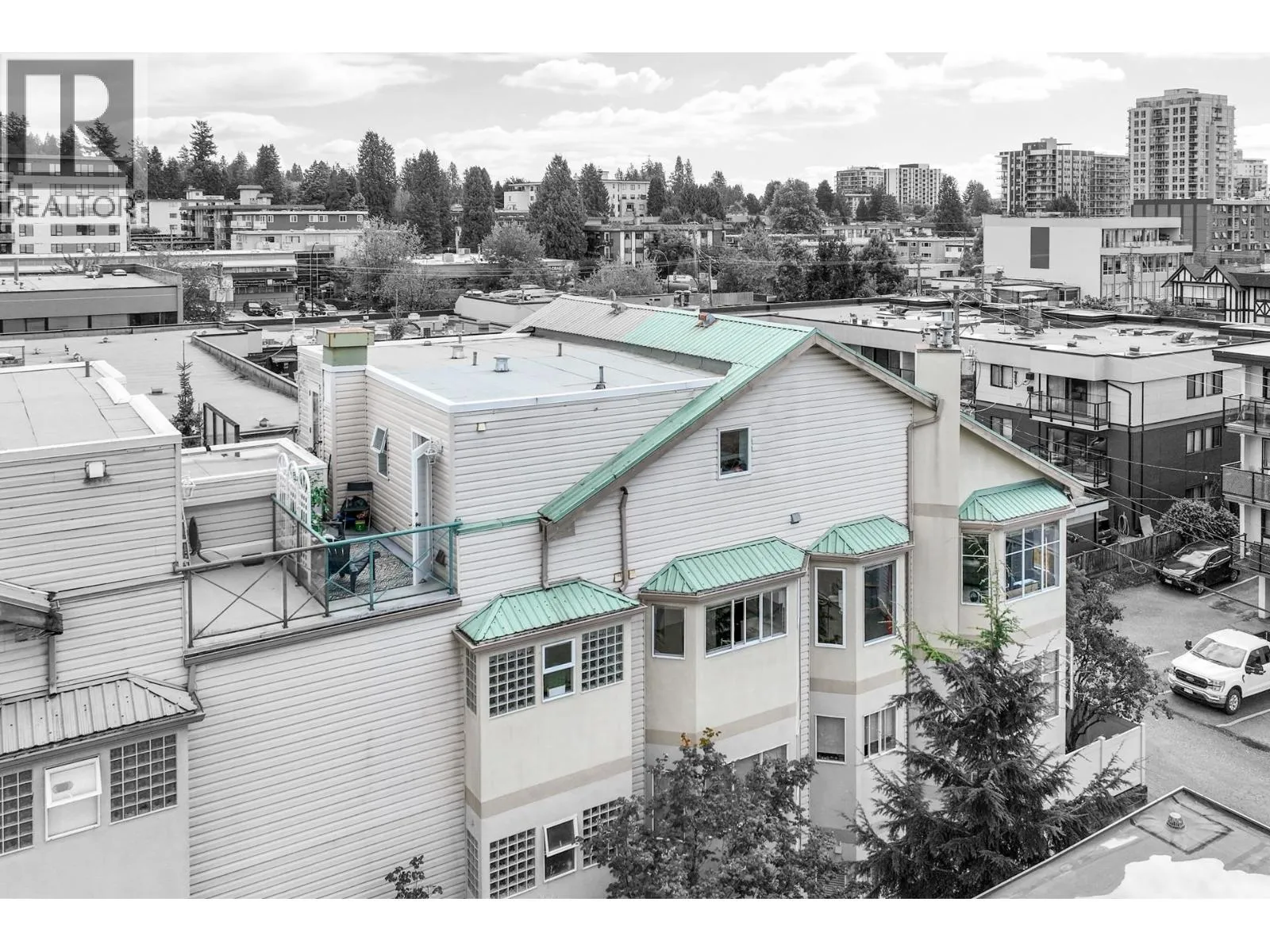 Rarely available loft living in the heart of Central Lonsdale. This penthouse at boutique 'Vista West´ offers 1,054 sqft of bright, well-designed living with 2 beds & 1.5 baths. Soaring ceilings, southwest exposure & bay windows fill the home with light, while rich hardwood floors, nat-gas fireplace & a south-facing balcony add warmth & comfort. The updated kitchen feats quartz counters, stainless appliances & mountain views. The loft-level primary has a full ensuite & access to a private rooftop deck to enjoy morning coffee & sunsets. Great insuite storage incl laundry/pantry closet with custom built-ins. XL parking & storage locker. Enjoy walkable access to parks, dining & shops, with easy access to Hwy 1. Thoughtfully designed living in one of North Van´s most connected & livable communities. (id:27476)