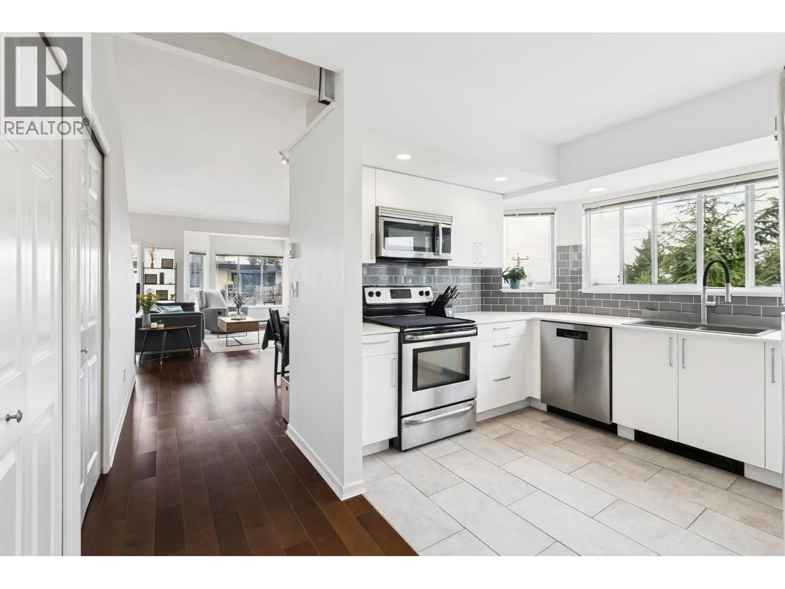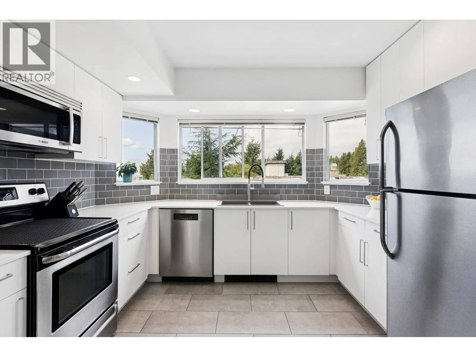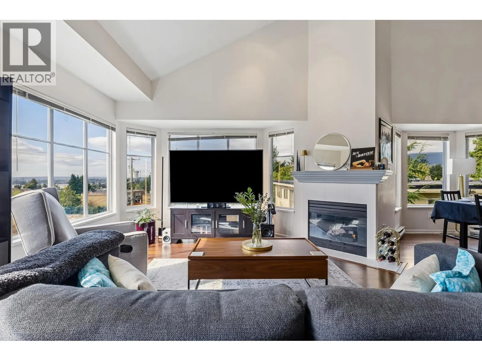 Rarely available loft living in the heart of Central Lonsdale. This penthouse at boutique 'Vista West´ offers 1,054 sqft of bright, well-designed living with 2 beds & 1.5 baths. Soaring ceilings, southwest exposure & bay windows fill the home with light, while rich hardwood floors, nat-gas fireplace & a south-facing balcony add warmth & comfort. The updated kitchen feats quartz counters, stainless appliances & mountain views. The loft-level primary has a full ensuite & access to a private rooftop deck to enjoy morning coffee & sunsets. Great insuite storage incl laundry/pantry closet with custom built-ins. XL parking & storage locker. Enjoy walkable access to parks, dining & shops, with easy access to Hwy 1. Thoughtfully designed living in one of North Van´s most connected & livable communities. (id:27476)