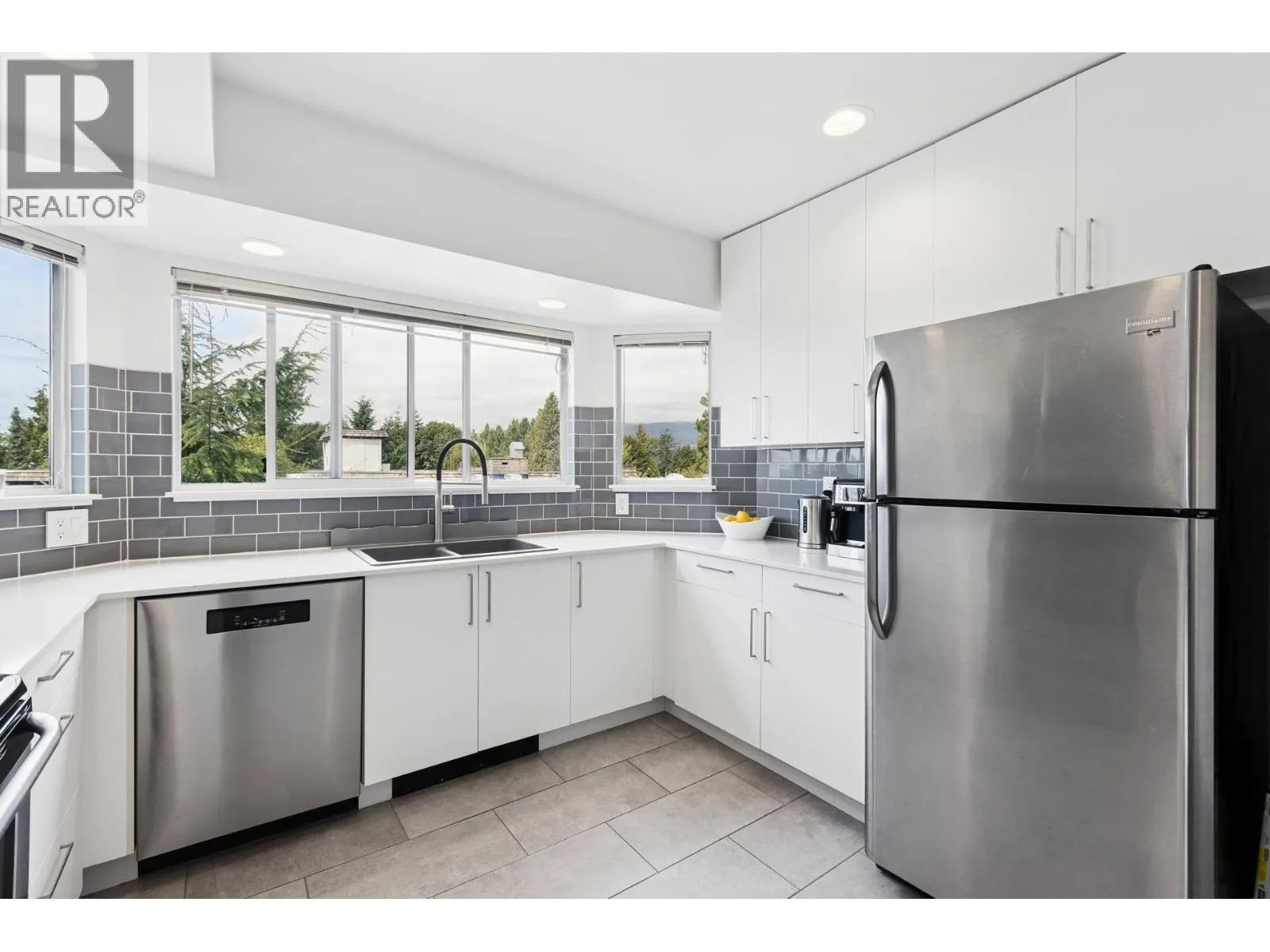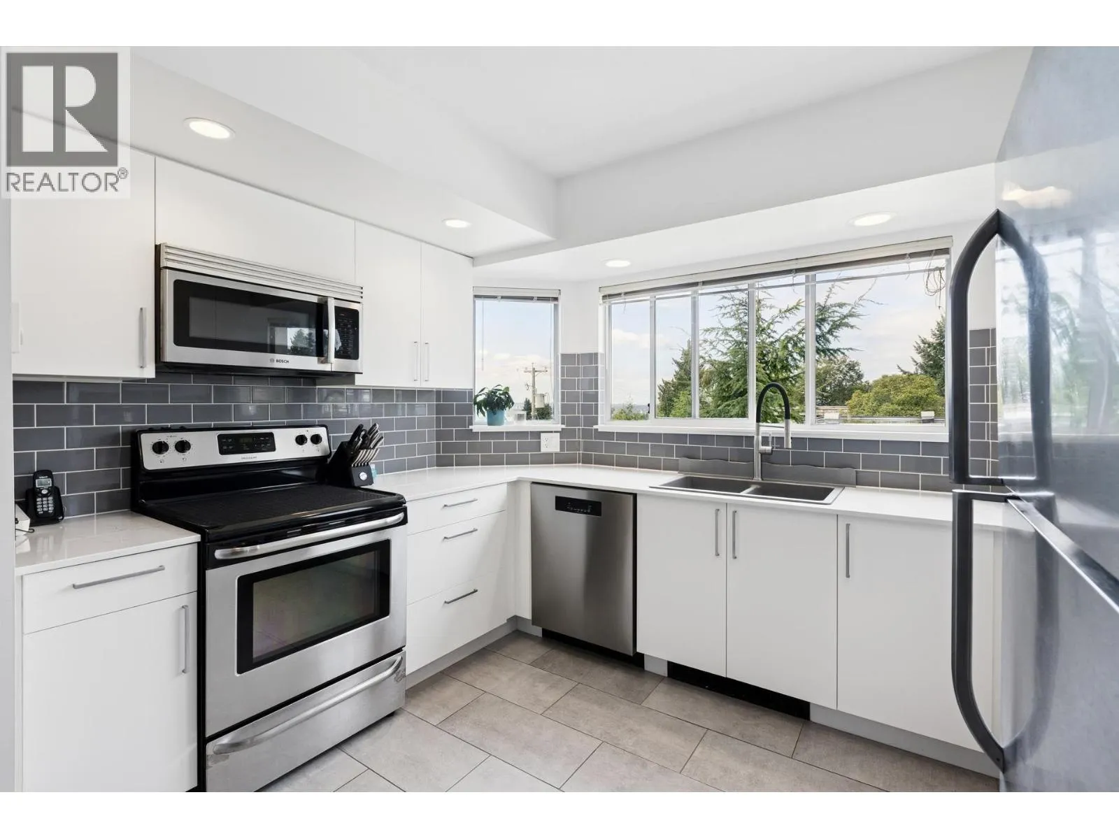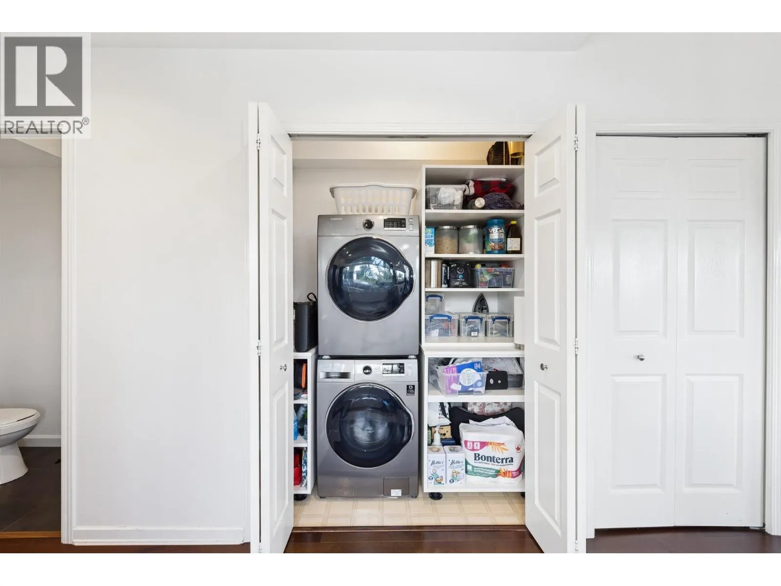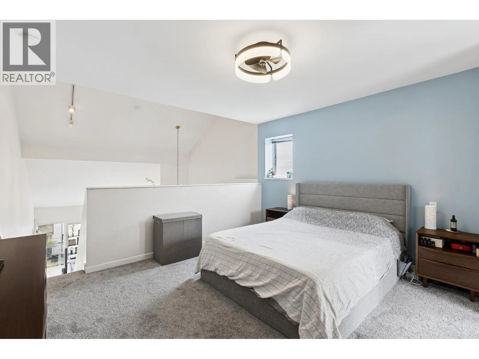 Rarely available loft living in the heart of Central Lonsdale. This penthouse at boutique 'Vista West´ offers 1,054 sqft of bright, well-designed living with 2 beds & 1.5 baths. Soaring ceilings, southwest exposure & bay windows fill the home with light, while rich hardwood floors, nat-gas fireplace & a south-facing balcony add warmth & comfort. The updated kitchen feats quartz counters, stainless appliances & mountain views. The loft-level primary has a full ensuite & access to a private rooftop deck to enjoy morning coffee & sunsets. Great insuite storage incl laundry/pantry closet with custom built-ins. XL parking & storage locker. Enjoy walkable access to parks, dining & shops, with easy access to Hwy 1. Thoughtfully designed living in one of North Van´s most connected & livable communities. (id:27476)